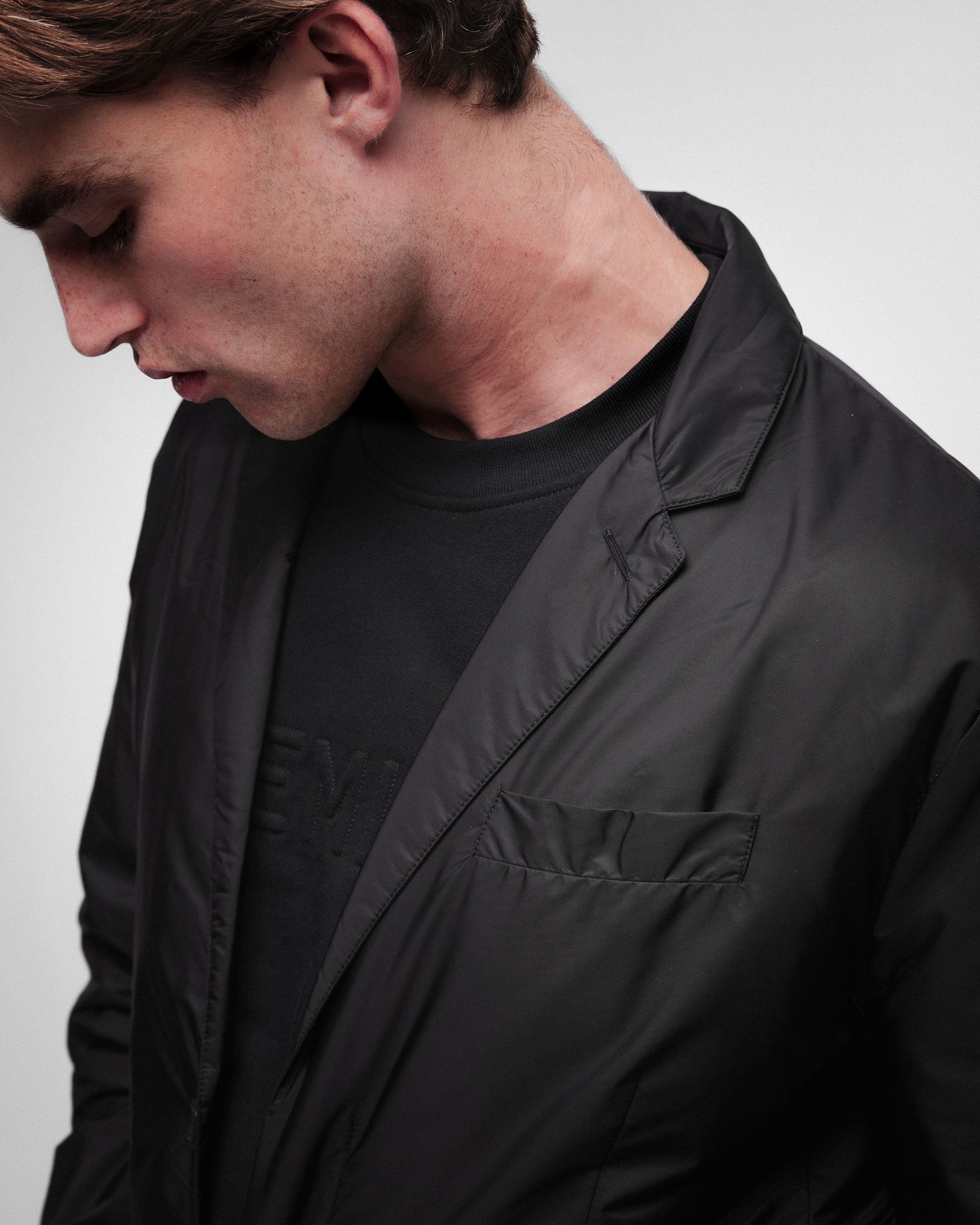 - Giacca uomo di ispirazione sartoriale dalla vestibilità accostata, imbottita in ovatta e foderata dello stesso nylon.