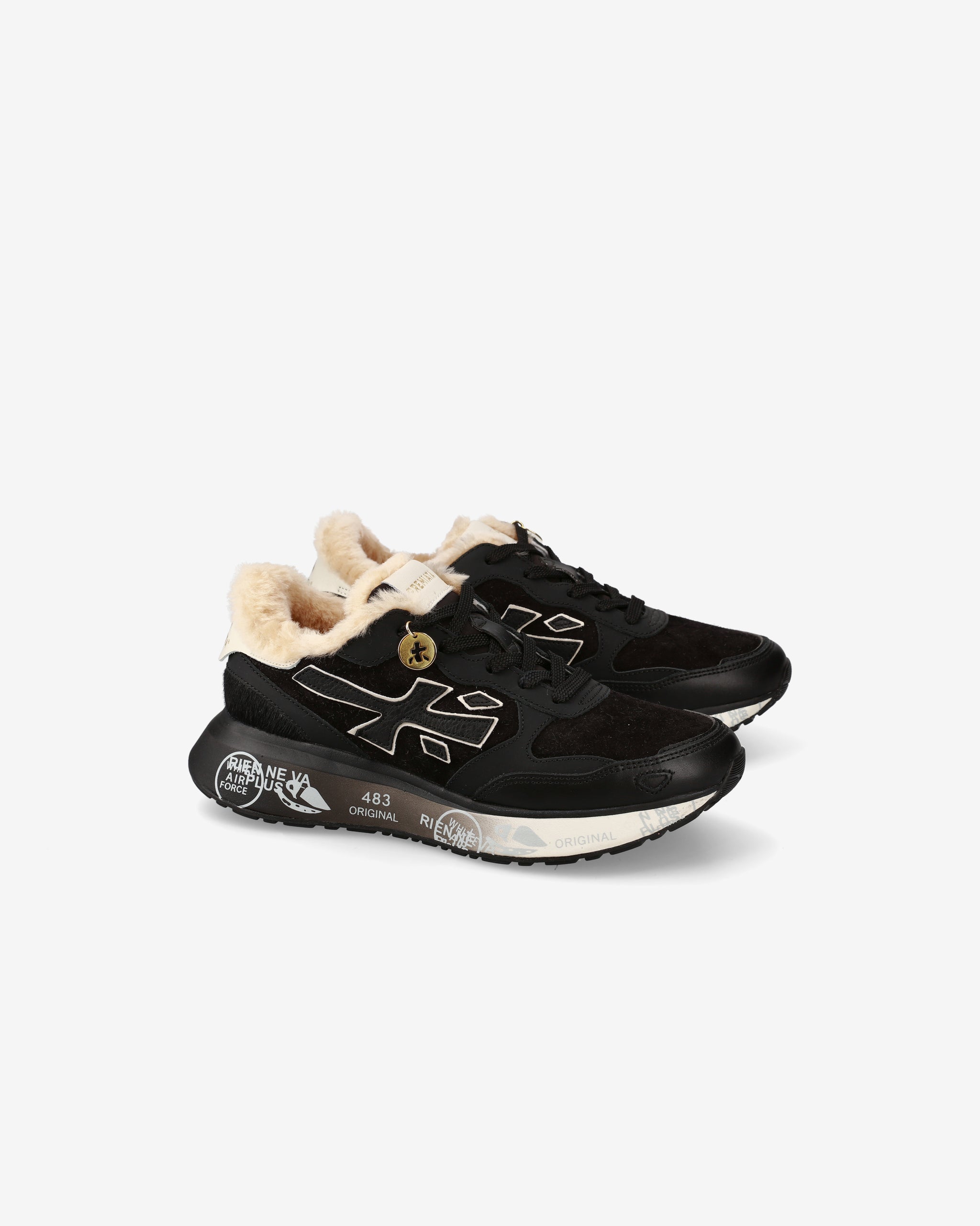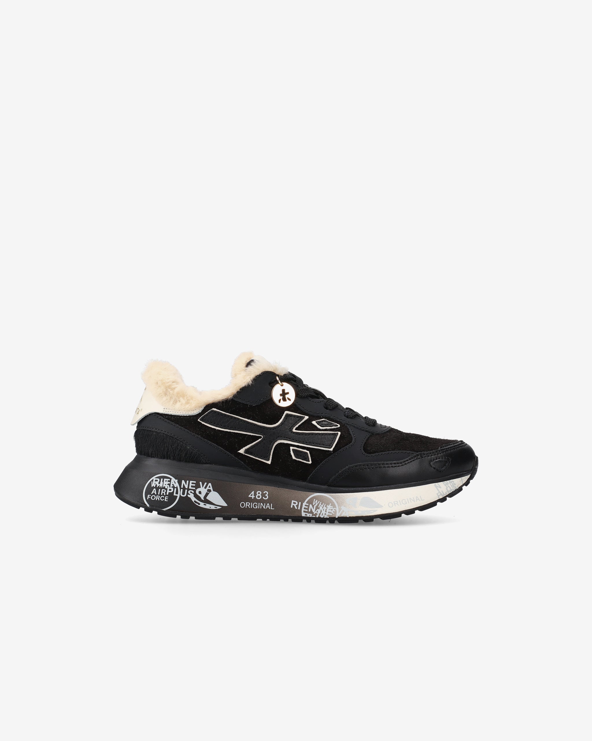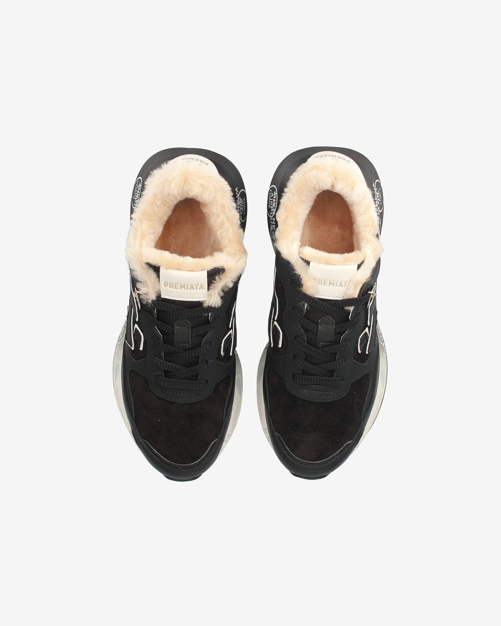 La suola, arricchita dagli iconici dettagli stile Premiata, esalta l'identità urban e casual-chic.