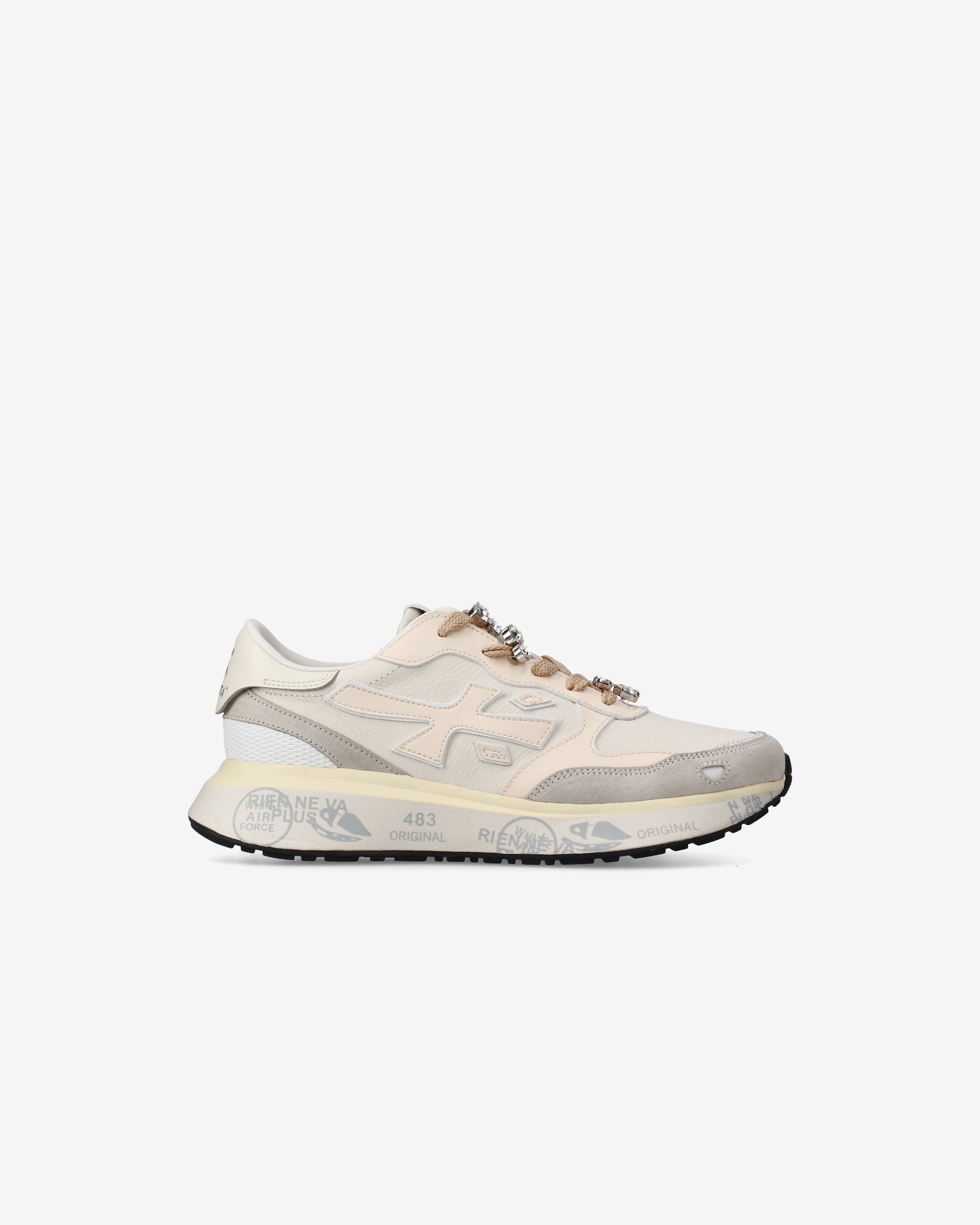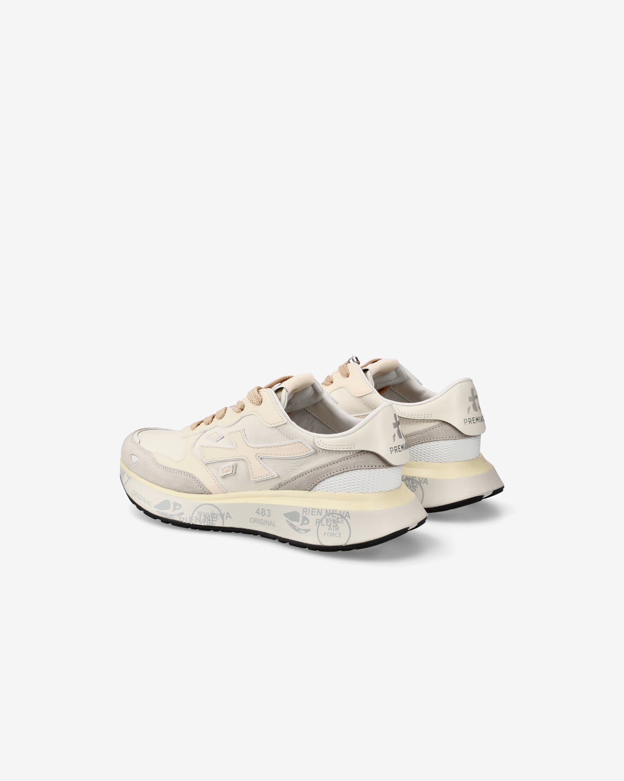 La suola, arricchita dagli iconici dettagli stile Premiata, esalta l'identità urban e casual-chic.