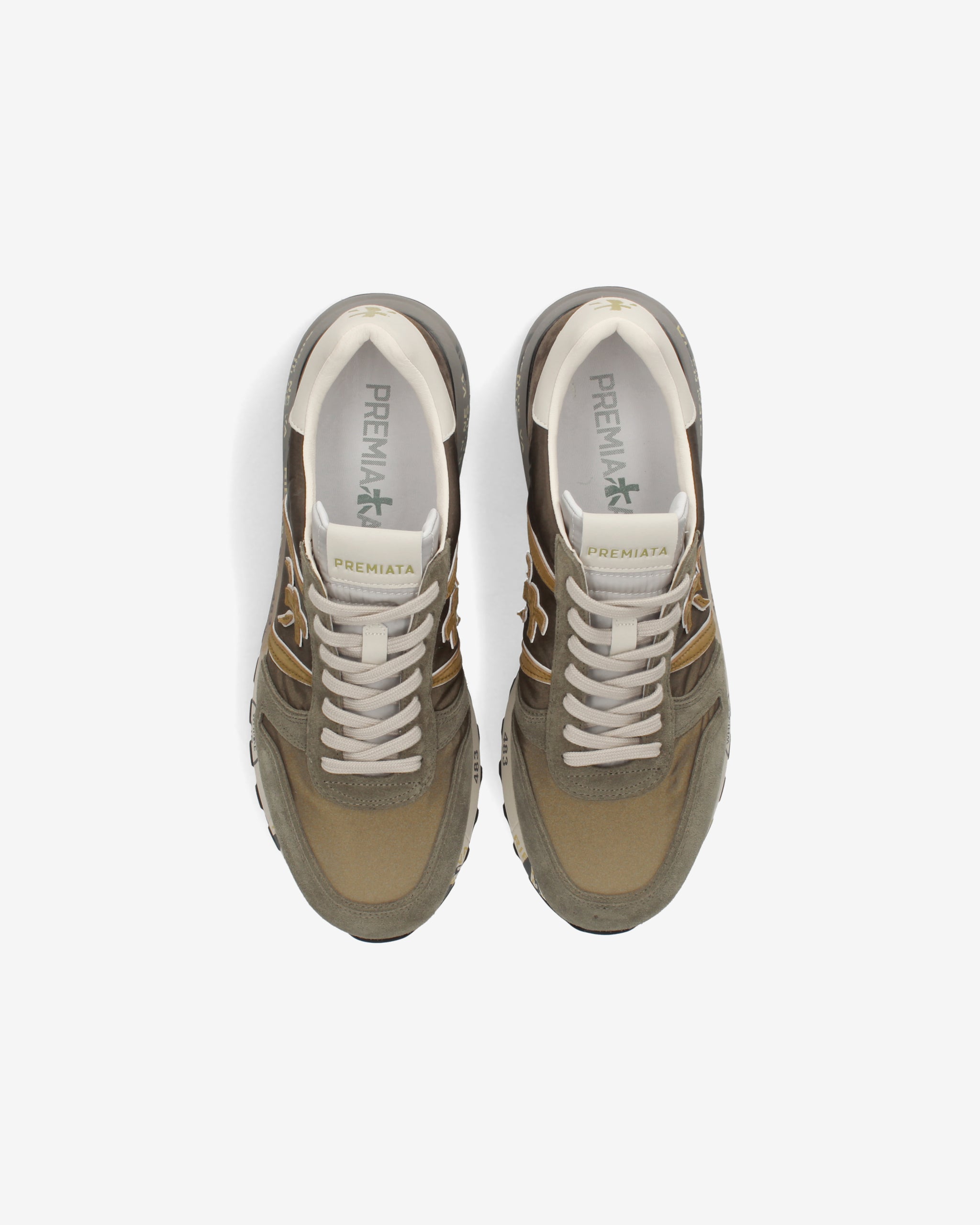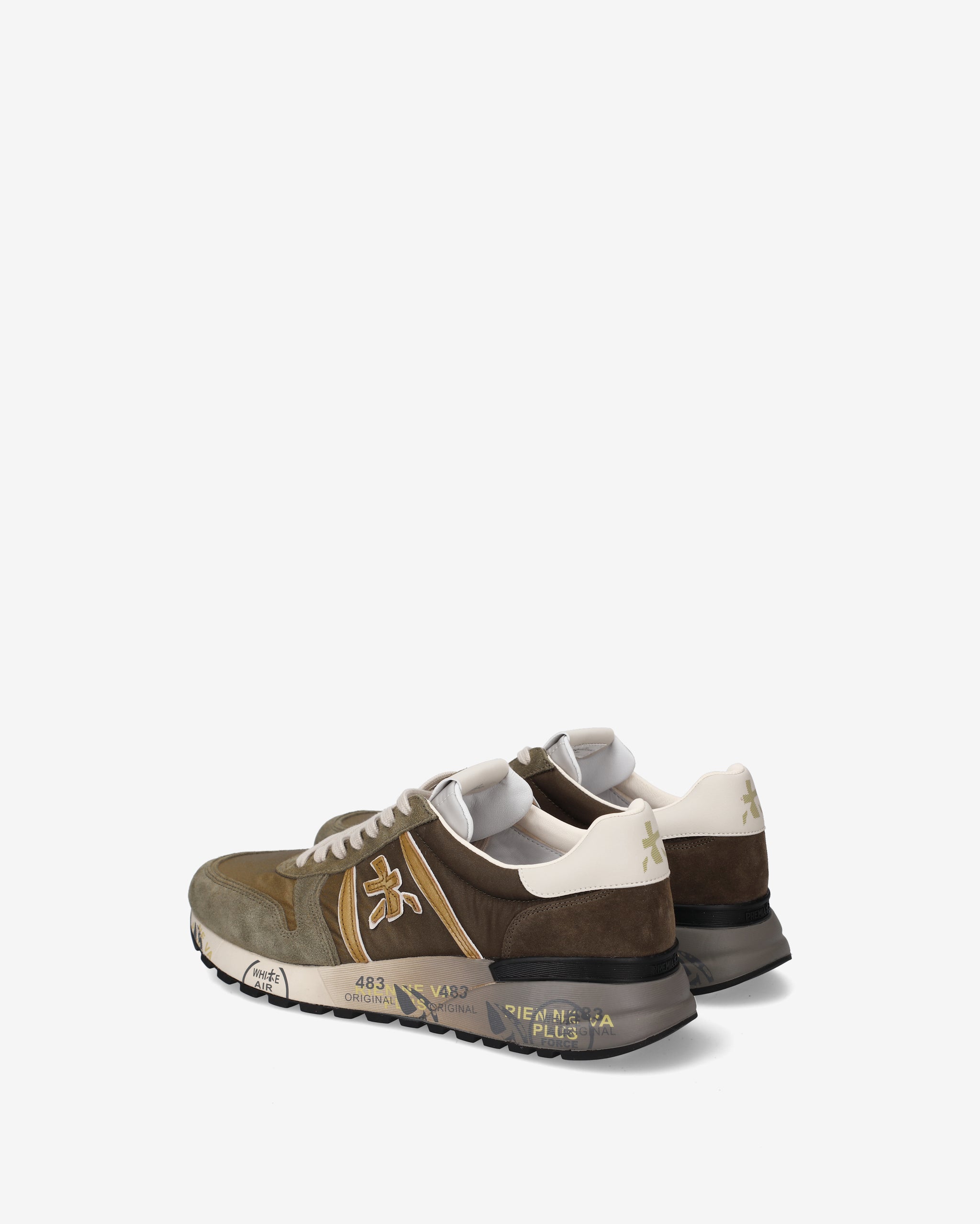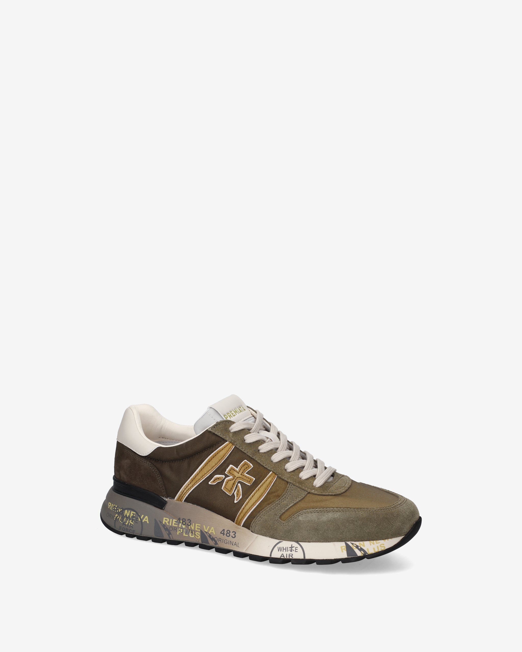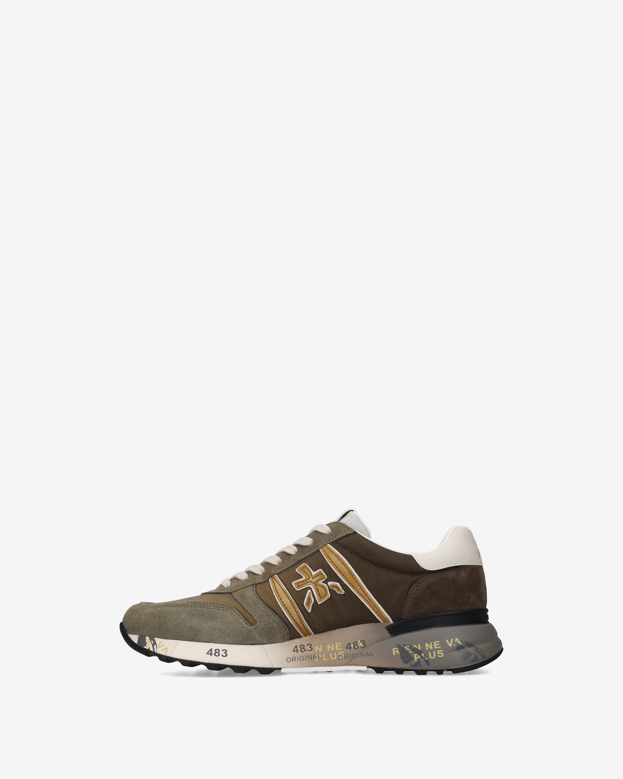 Sneakers Lander in pellame morbido scamosciato e nylon. Il look è arricchito dall’inconfondibile logo Premiata. Suola ergonomica e super leggera.