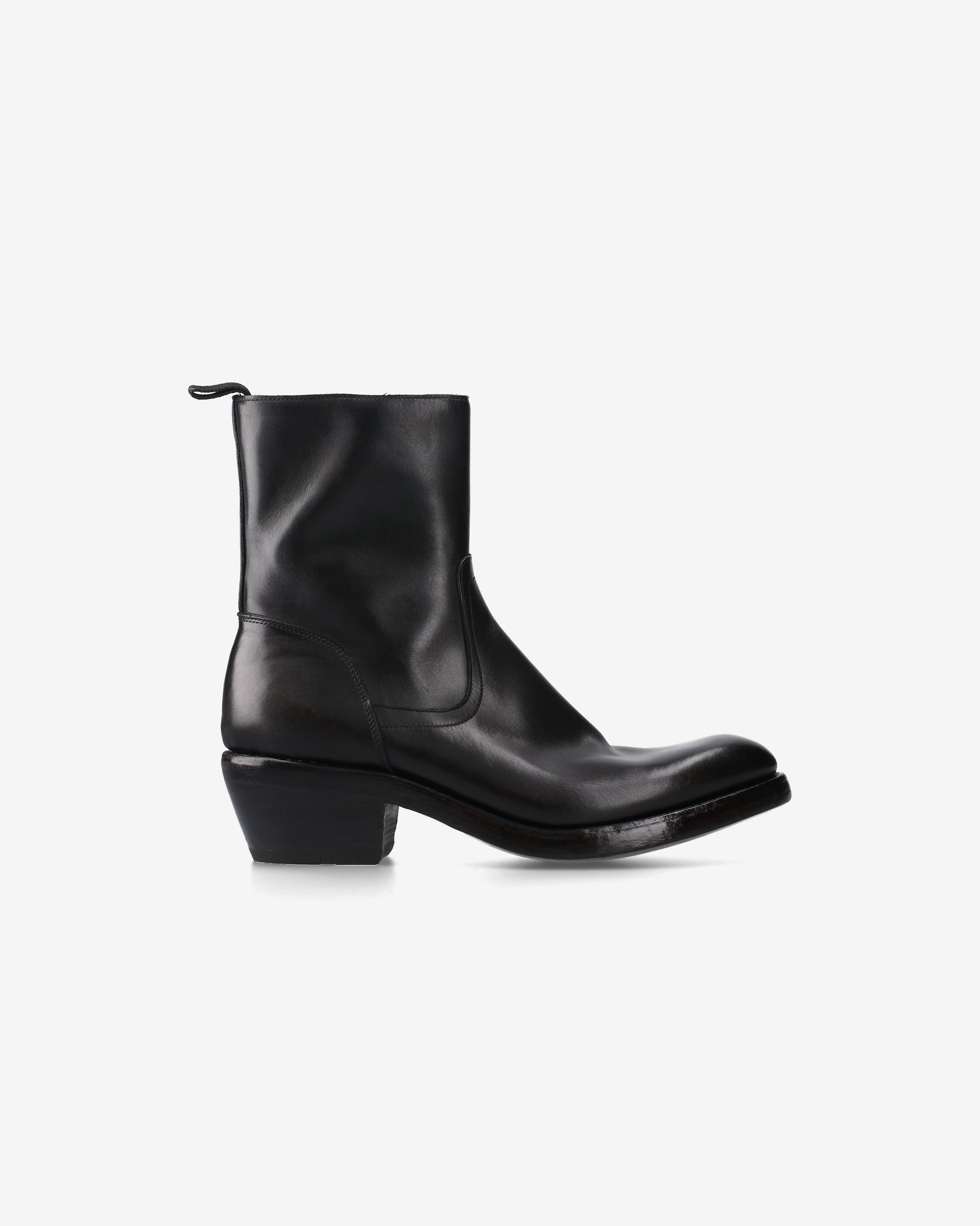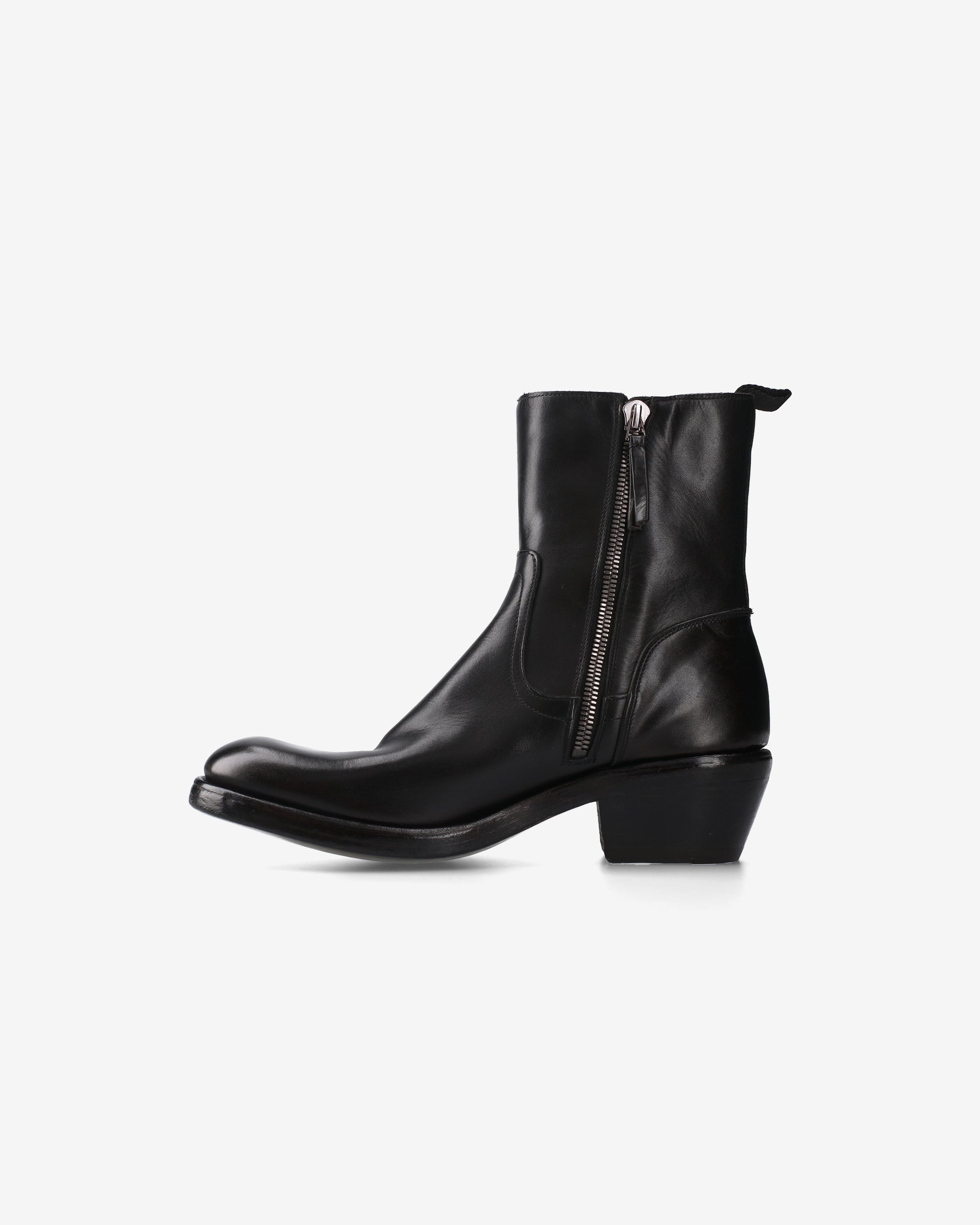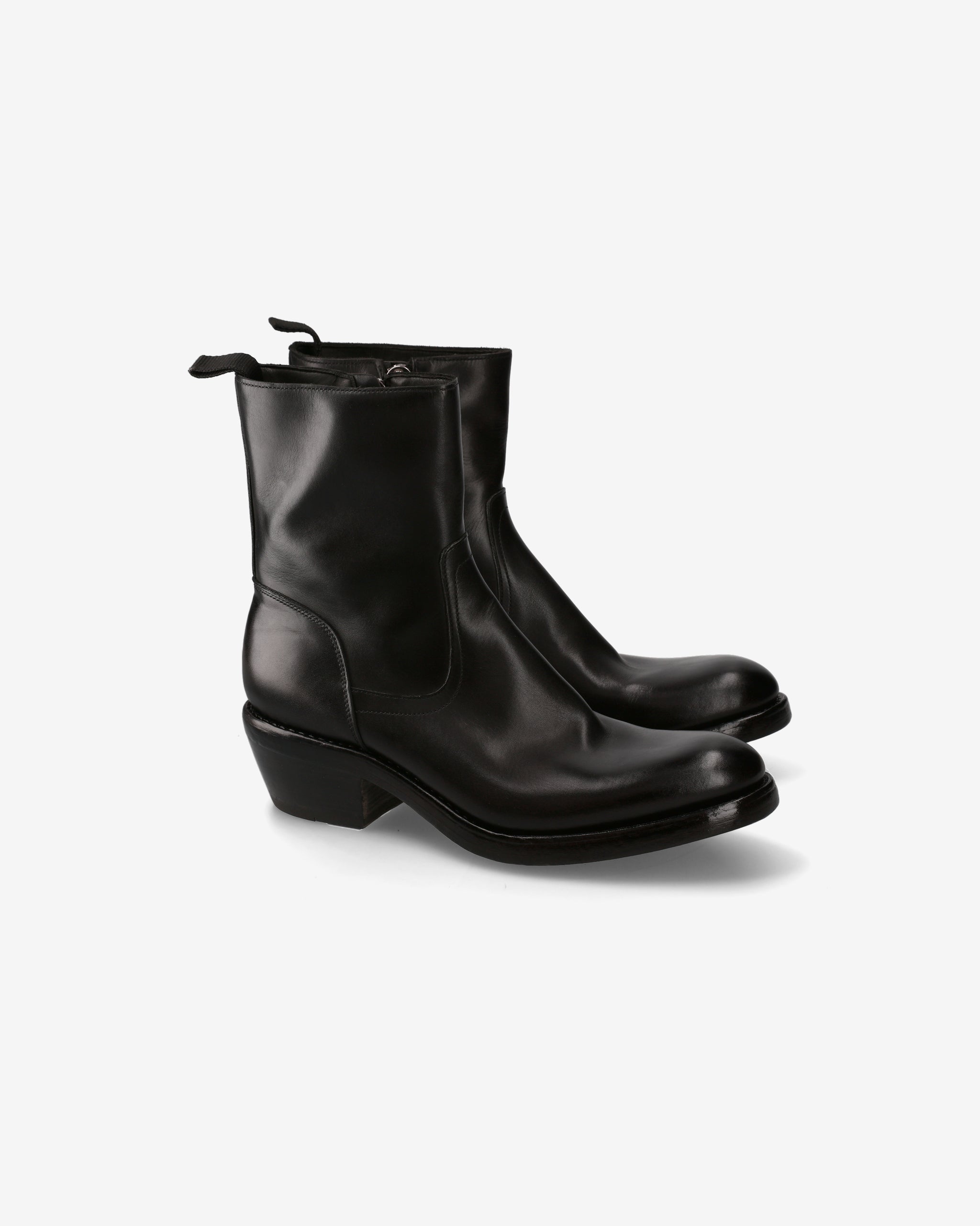 Comfort e stile sono in perfetta simbiosi nei nostri stivali artigianali texani, realizzati in pregiata culatta di cavallo tinti in capo nero. Le linee essenziali e intramontabili li rendono un classico contemporaneo, con dettagli distintivi come la punta smussata arrotondata, la zip laterale e il tirante Gros Grain sul tallone. La costruzione Goodyear Welted e il fondo in cuoio doppio con tacco texano da 50mm completano un prodotto dal carattere deciso e sofisticato.
