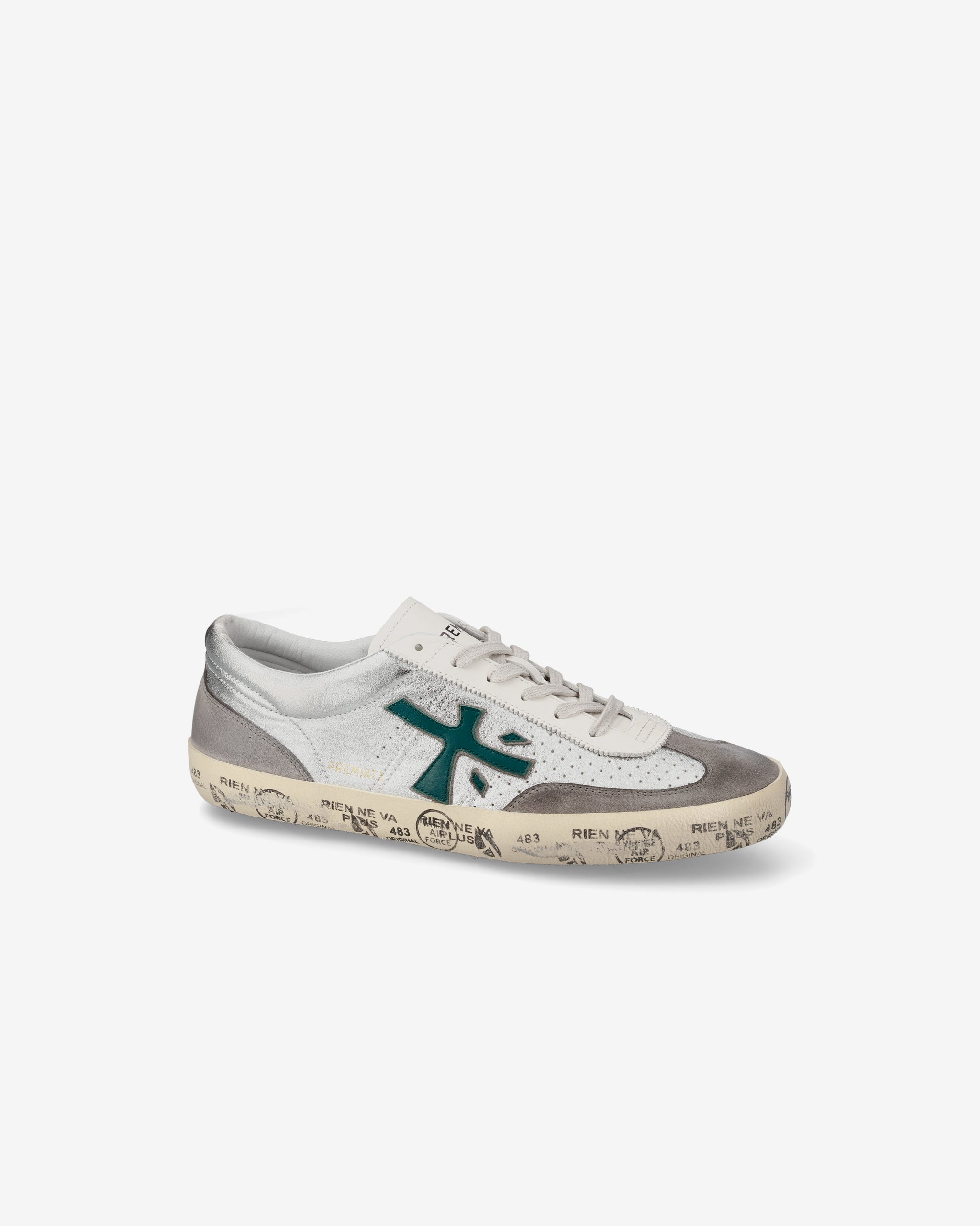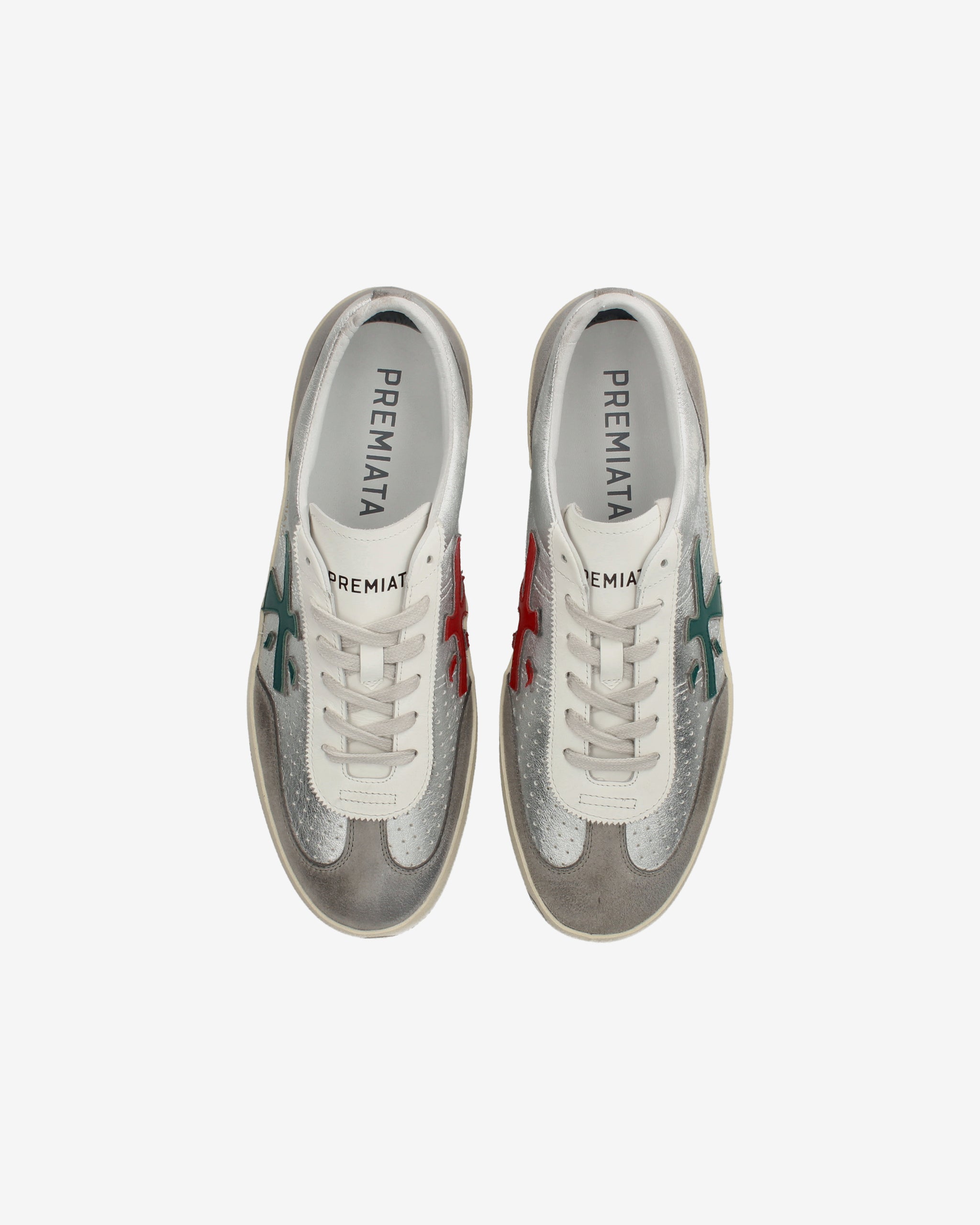 Un modello dallo spirito sportivo e brillante, con tomaia effetto metallizzato e dettagli in contrasto che ne esaltano il dinamismo. Il mix di texture dona energia e unicità a una sneaker pensata per distinguersi, sempre con l’inconfondibile stile Premiata.