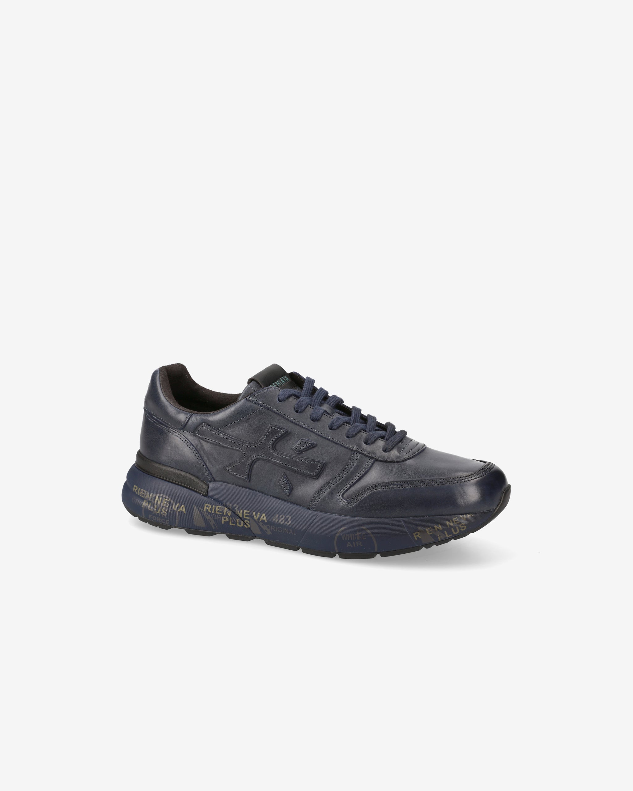 Sneakers Mick in mix di materiali e pellami di qualità. La scarpa è realizzata nella tonalità del blu per uno stile casual. L'iconica silhouette è arricchita dal logo Premiata.