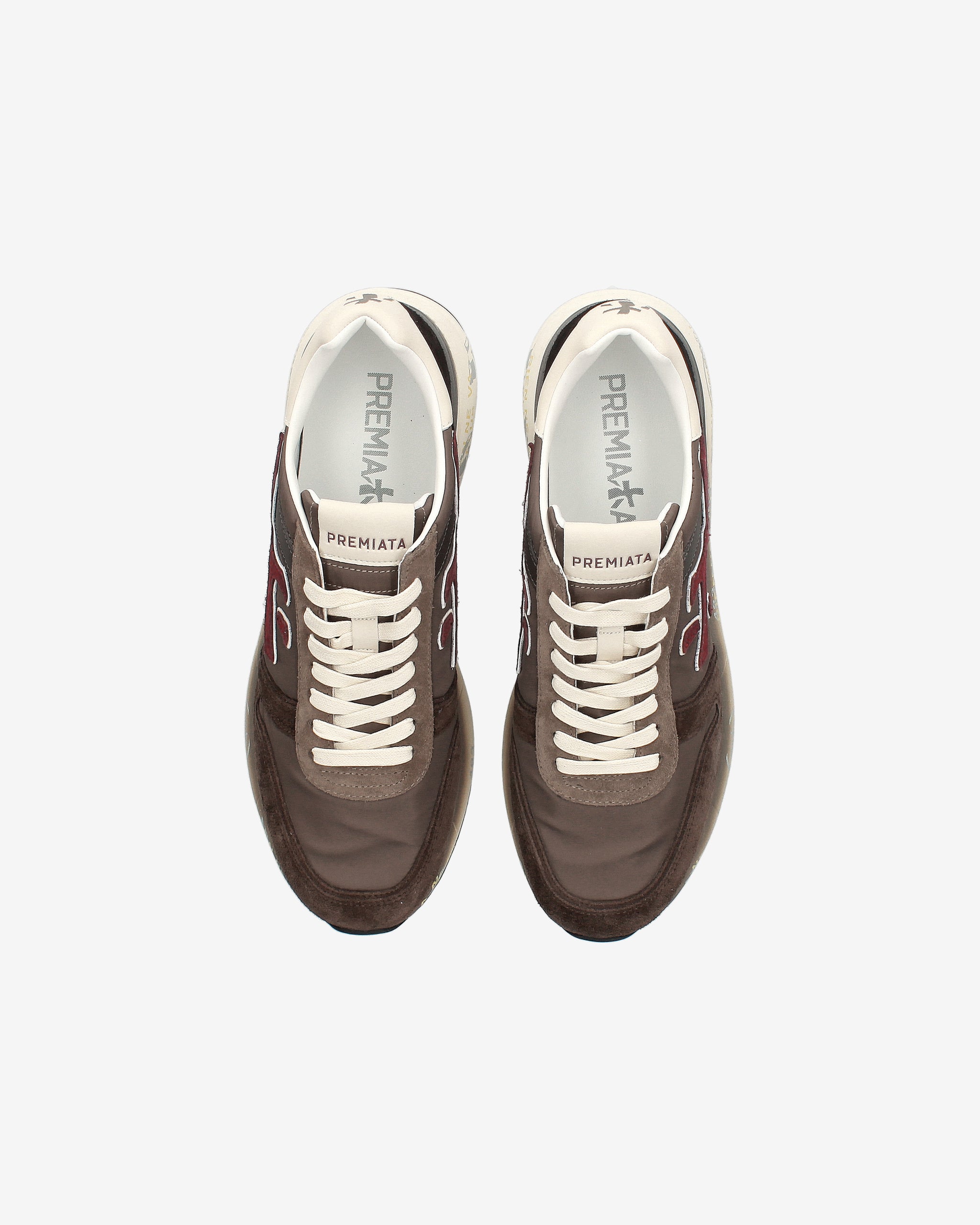 Sneakers Mick in mix di materiali e pellami di qualità. La scarpa è realizzata nella tonalità del marrone per uno stile casual. L'iconica silhouette è arricchita dal logo Premiata.