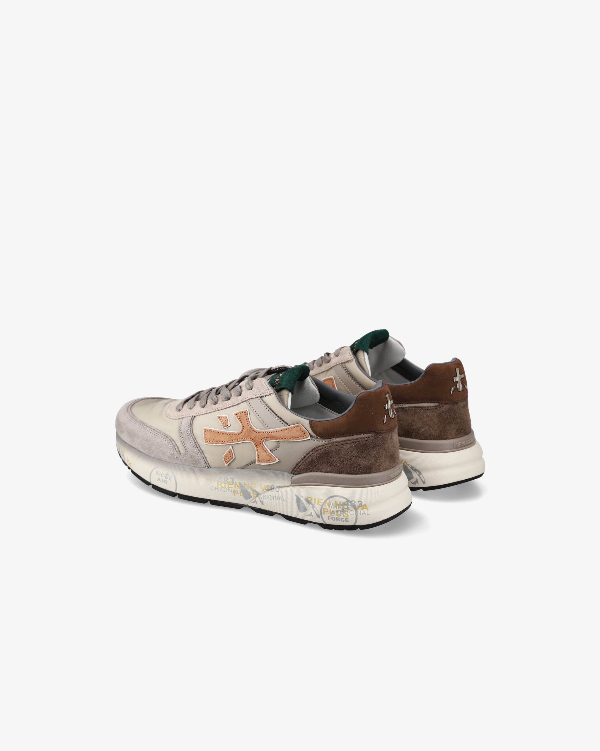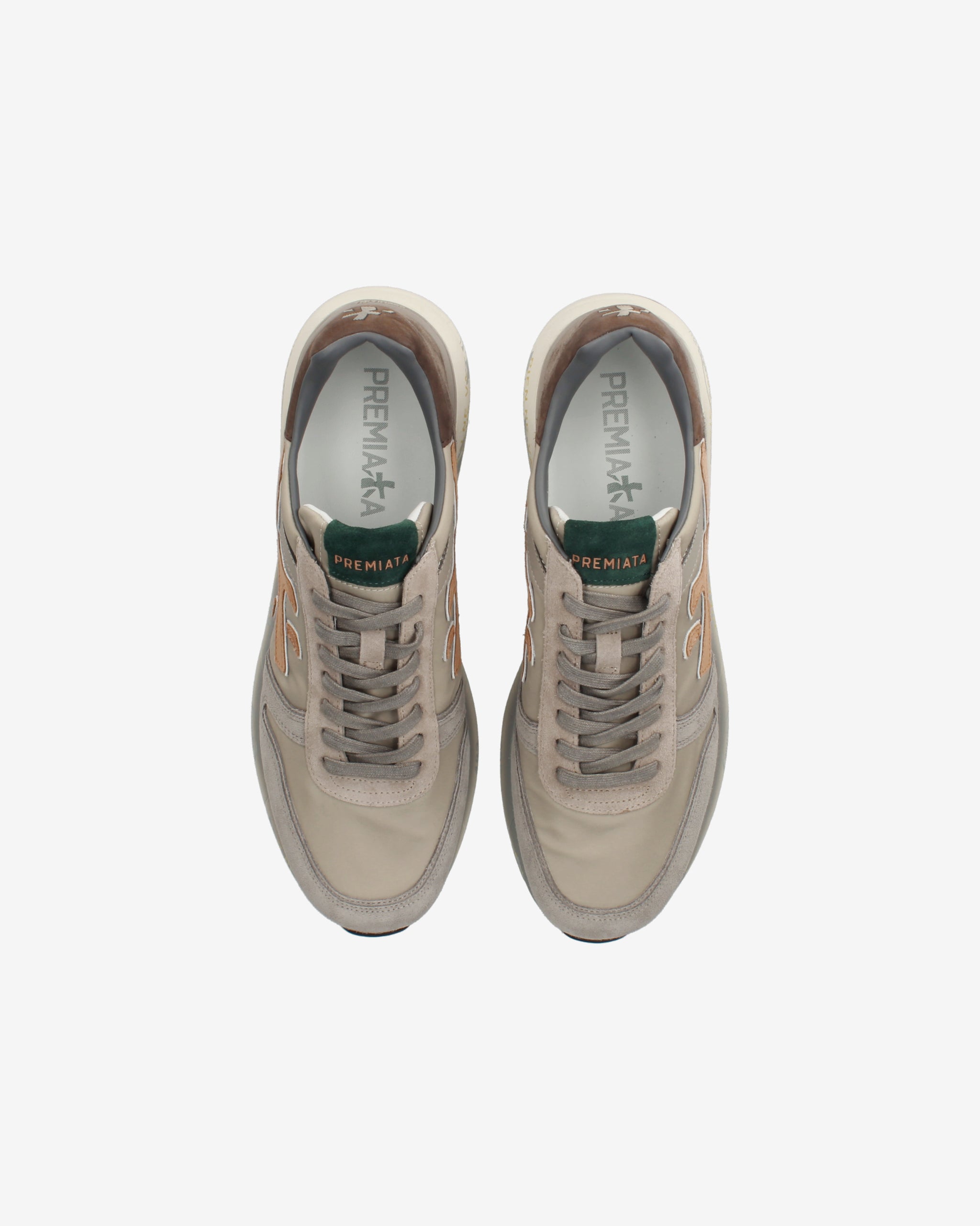 Sneakers Mick in mix di materiali e pellami di qualità. La scarpa è realizzata nella tonalità del taupe per uno stile casual. L'iconica silhouette è arricchita dal logo Premiata.