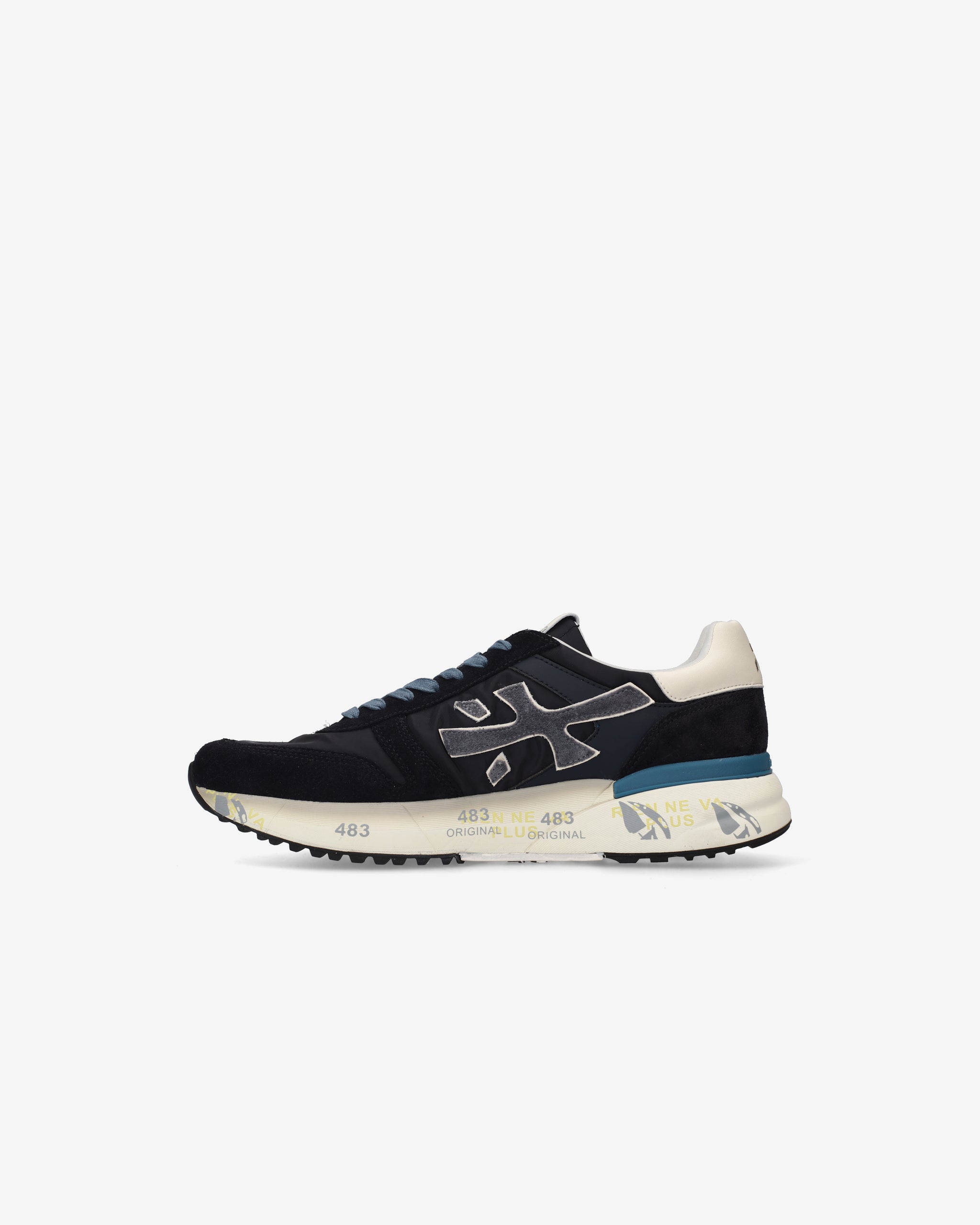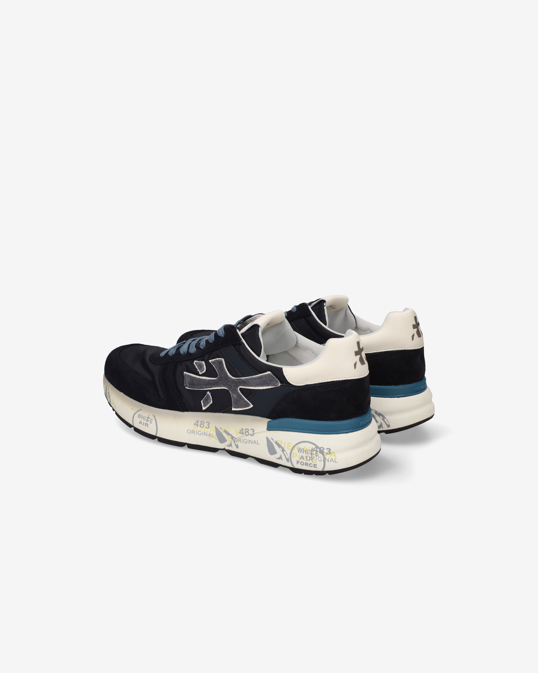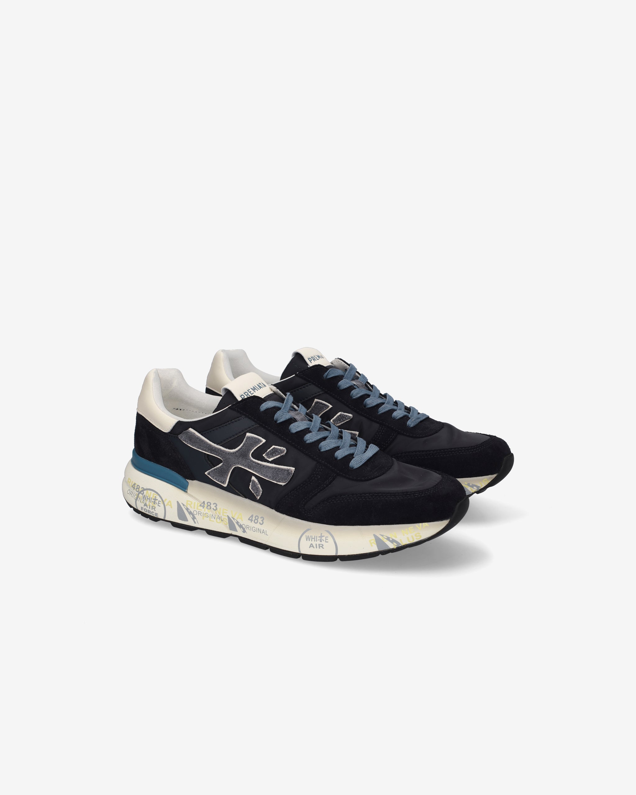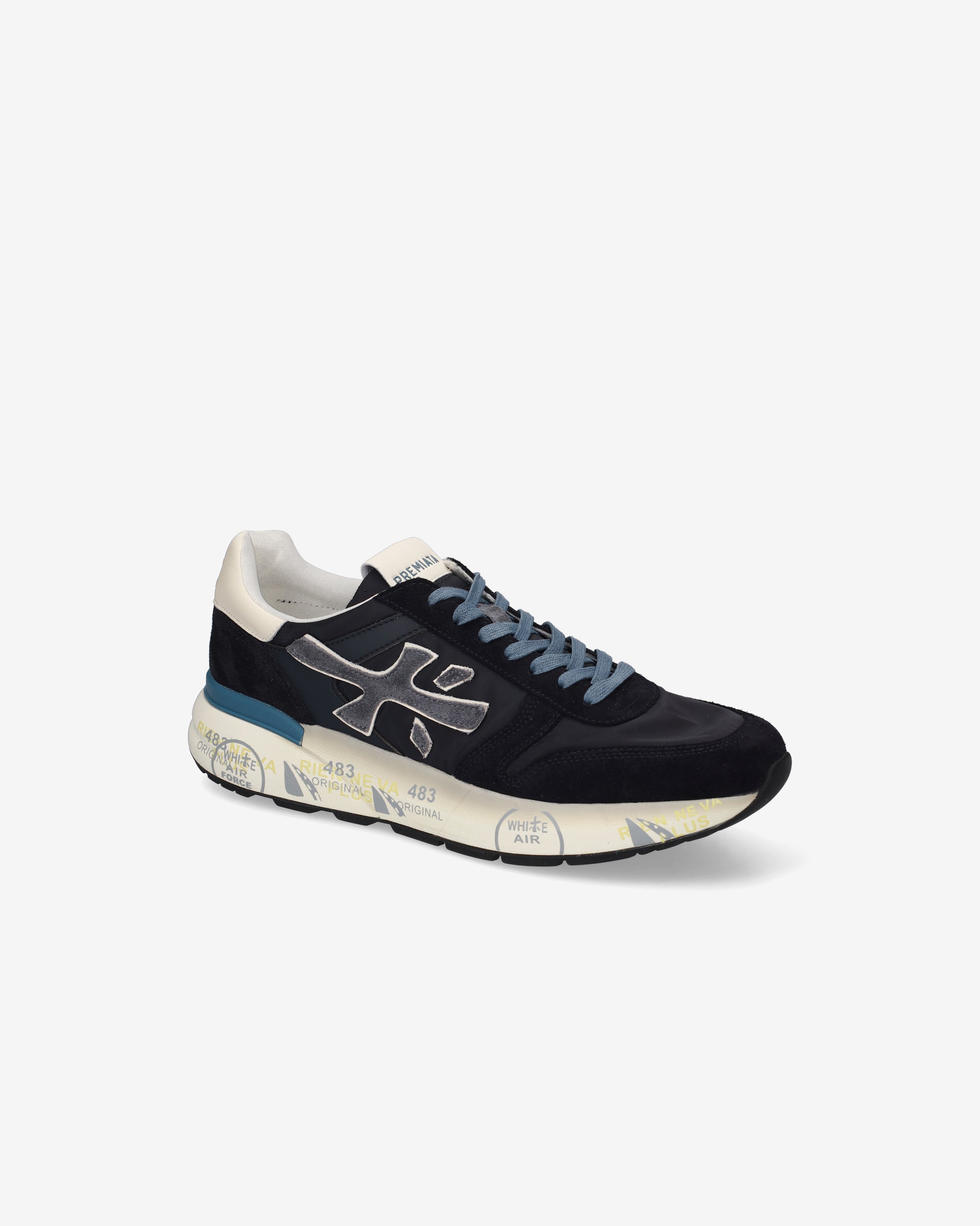 Sneakers Mick in mix di materiali e pellami di qualità. La scarpa è realizzata nella tonalità del blu per uno stile casual. L'iconica silhouette è arricchita dal logo Premiata.
