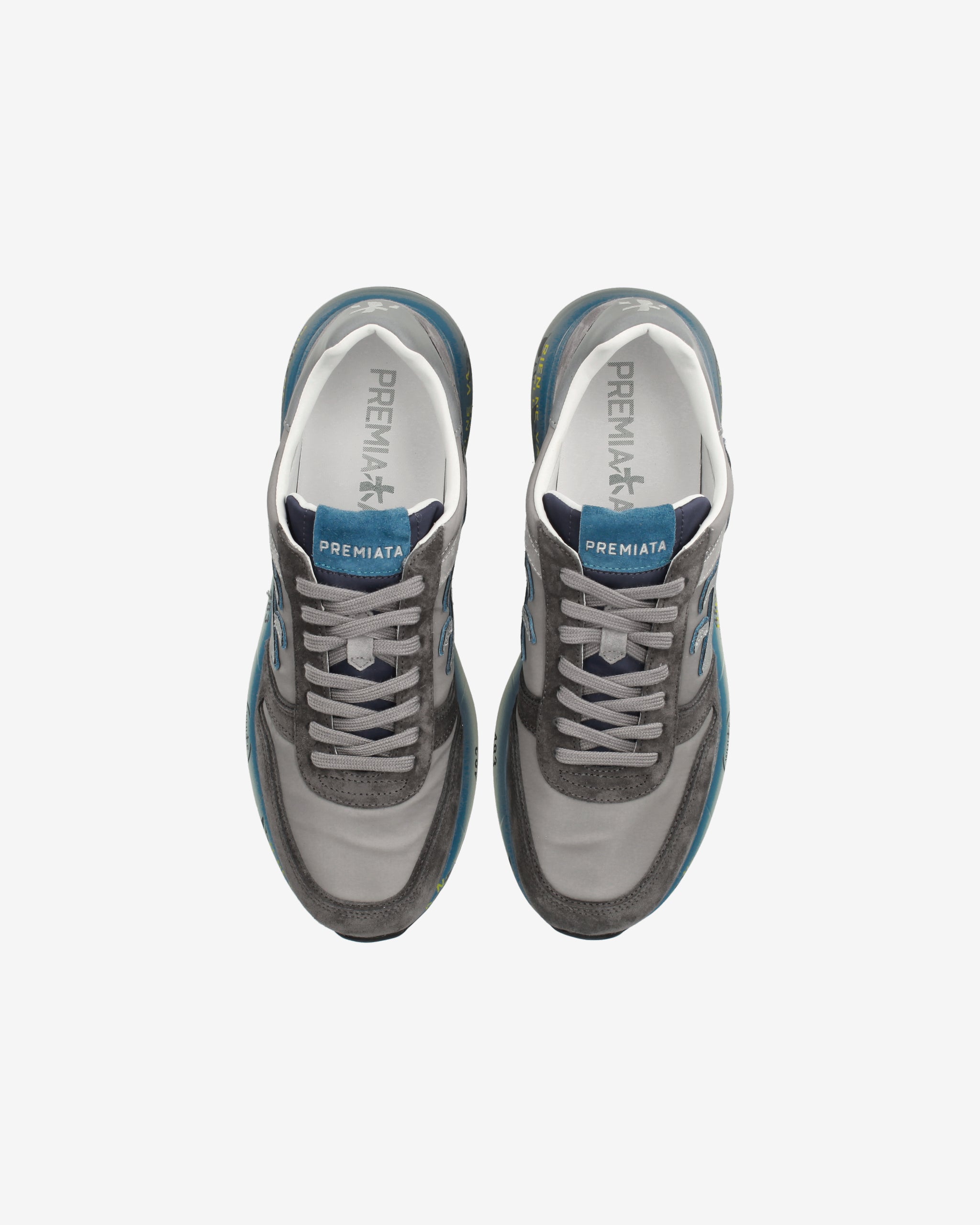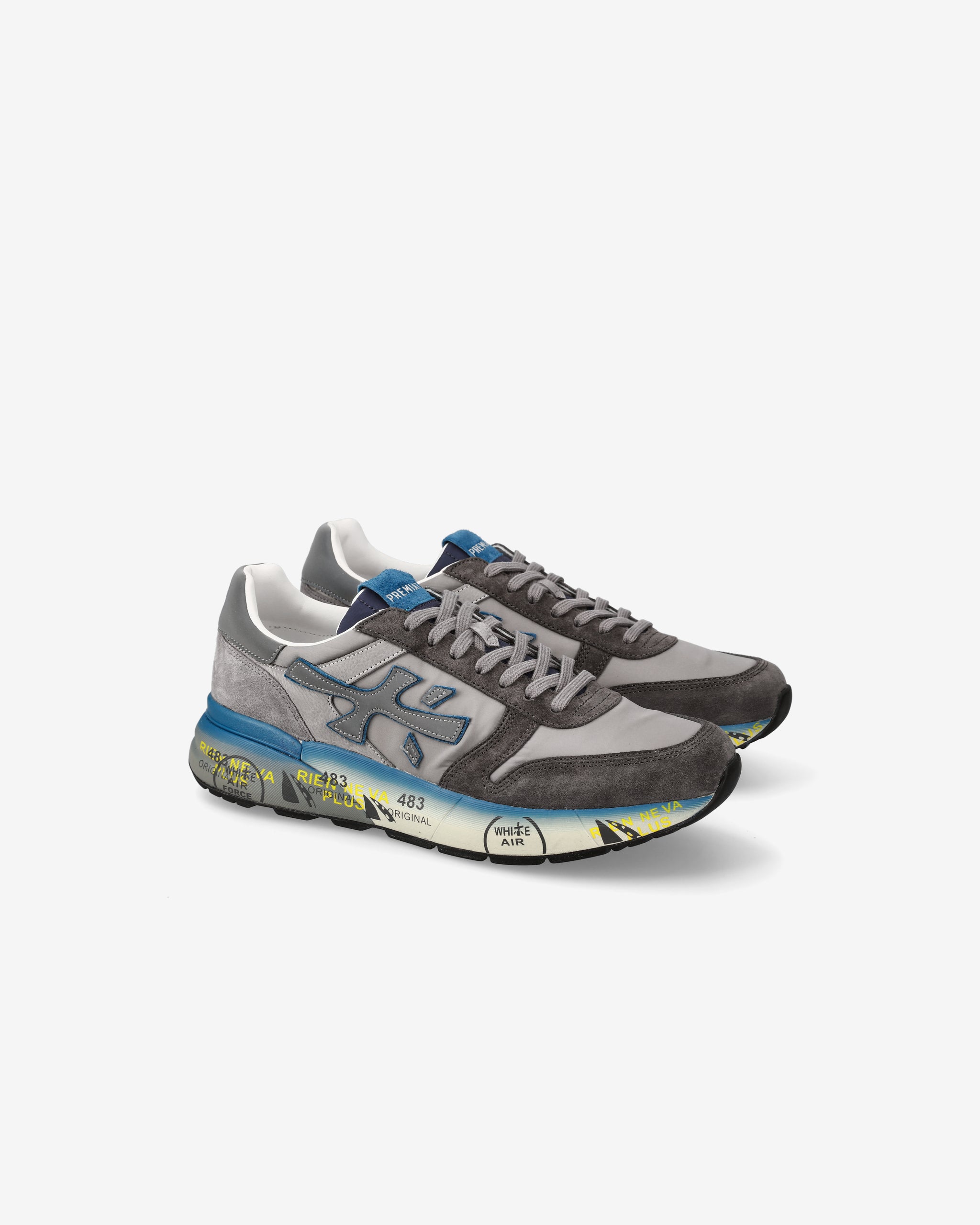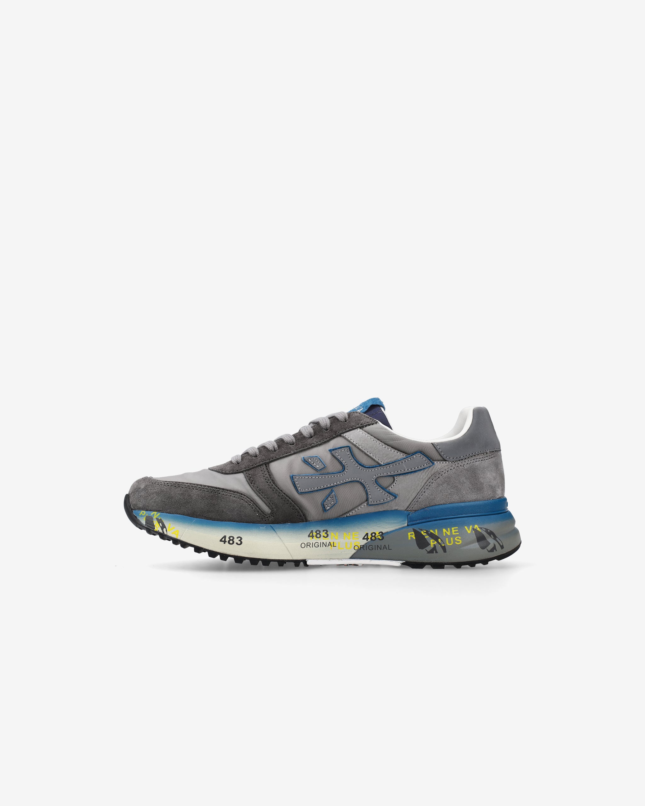 Sneakers Mick in mix di materiali e pellami di qualità. La scarpa è realizzata nella tonalità del grigio per uno stile casual. L'iconica silhouette è arricchita dal logo Premiata.