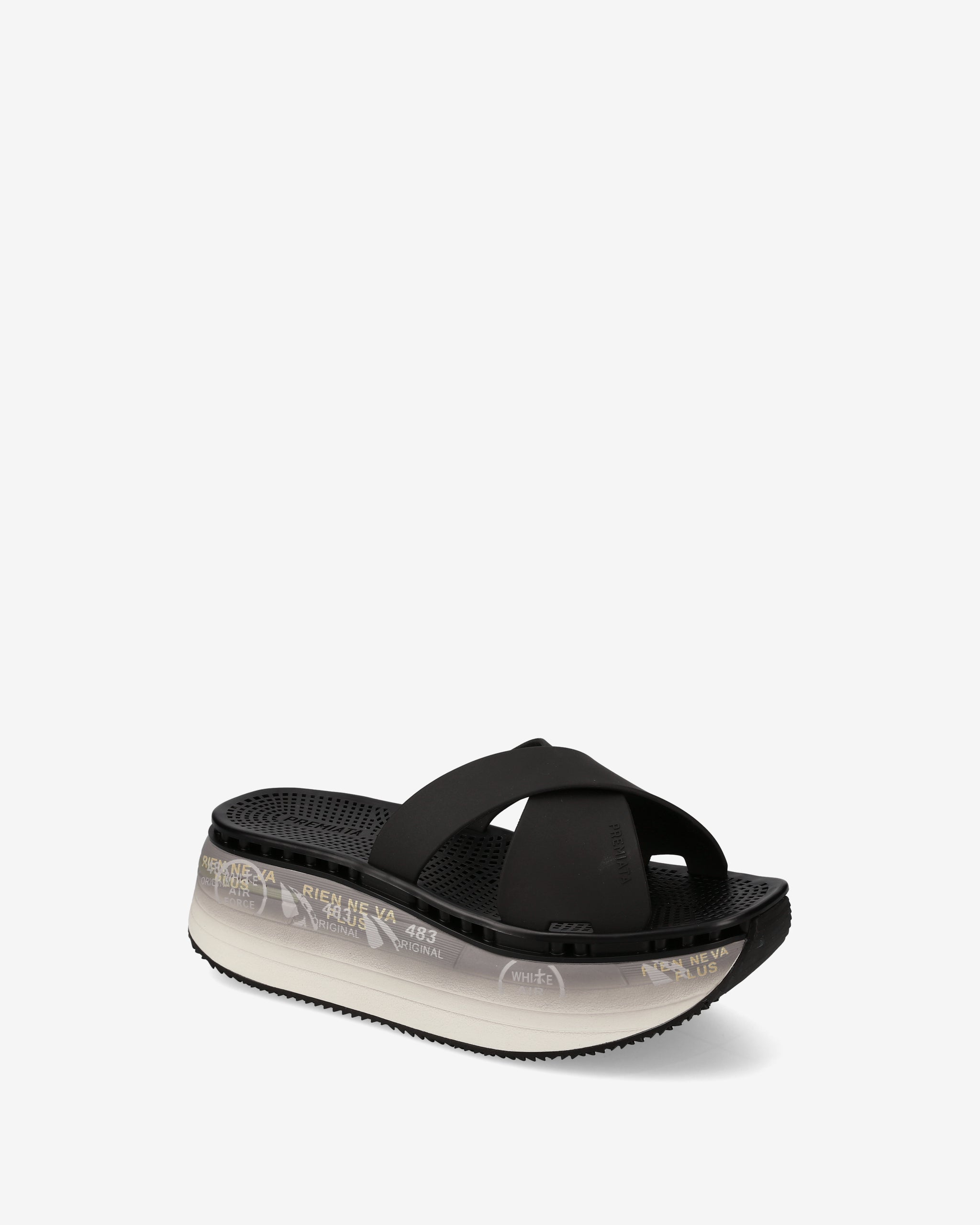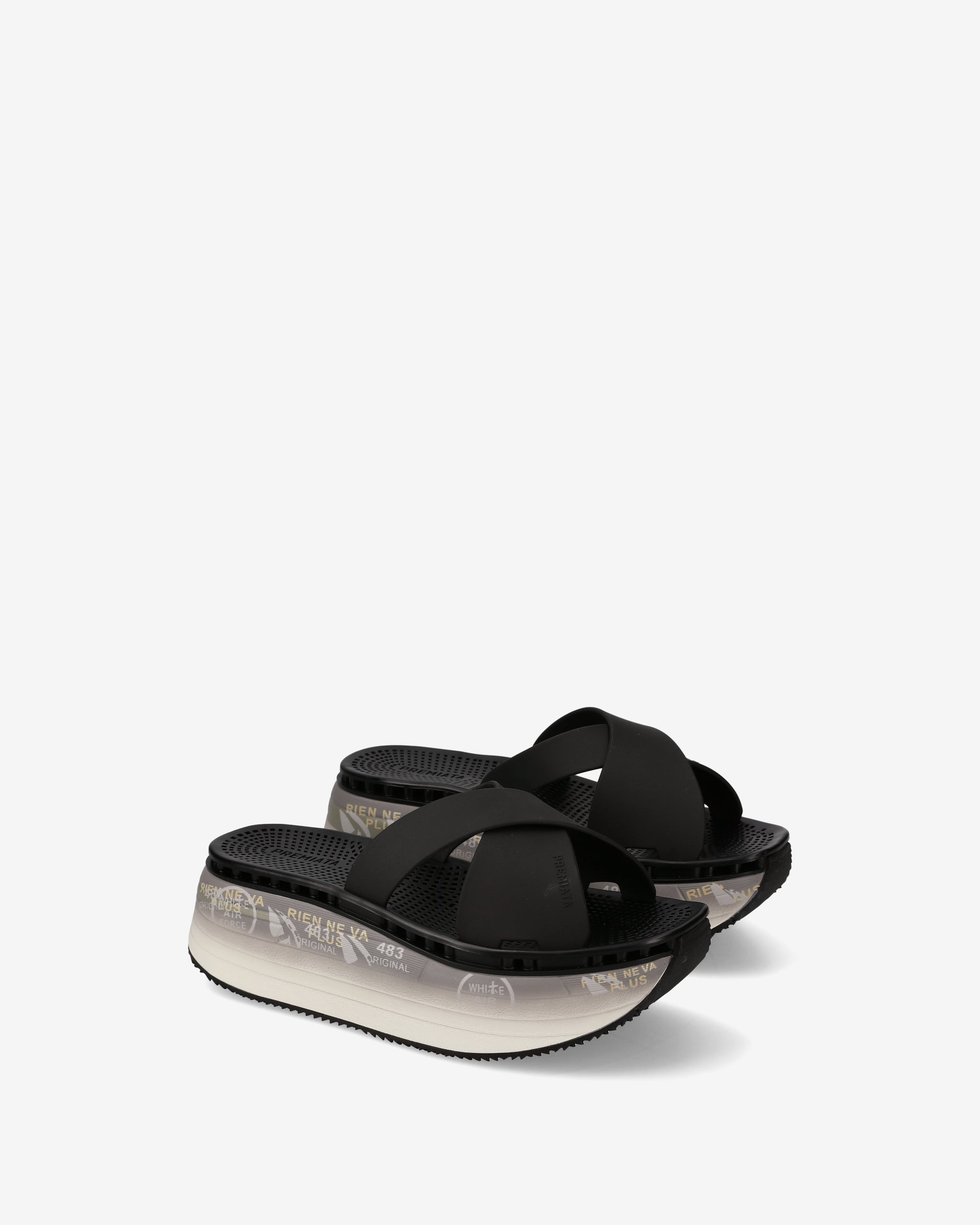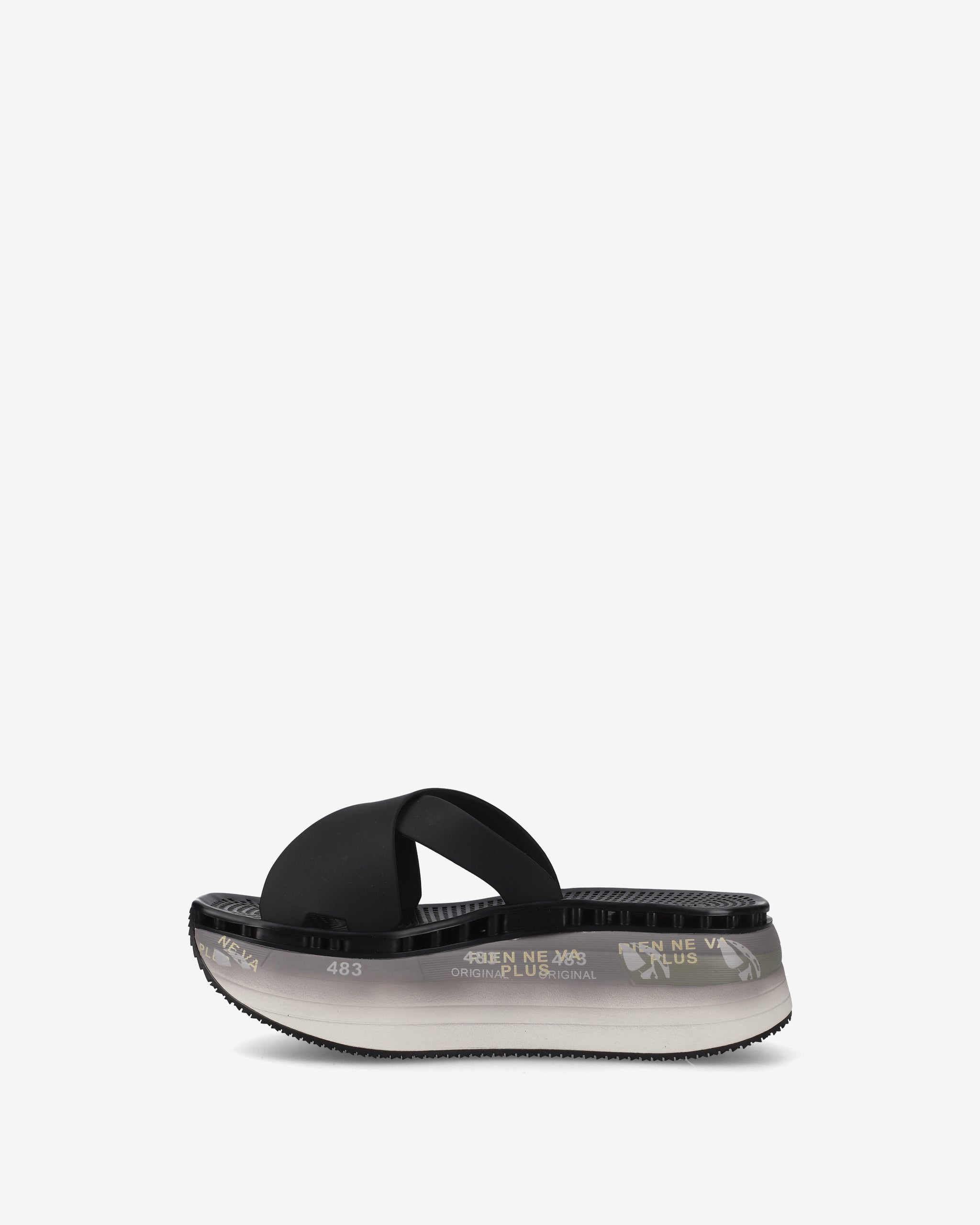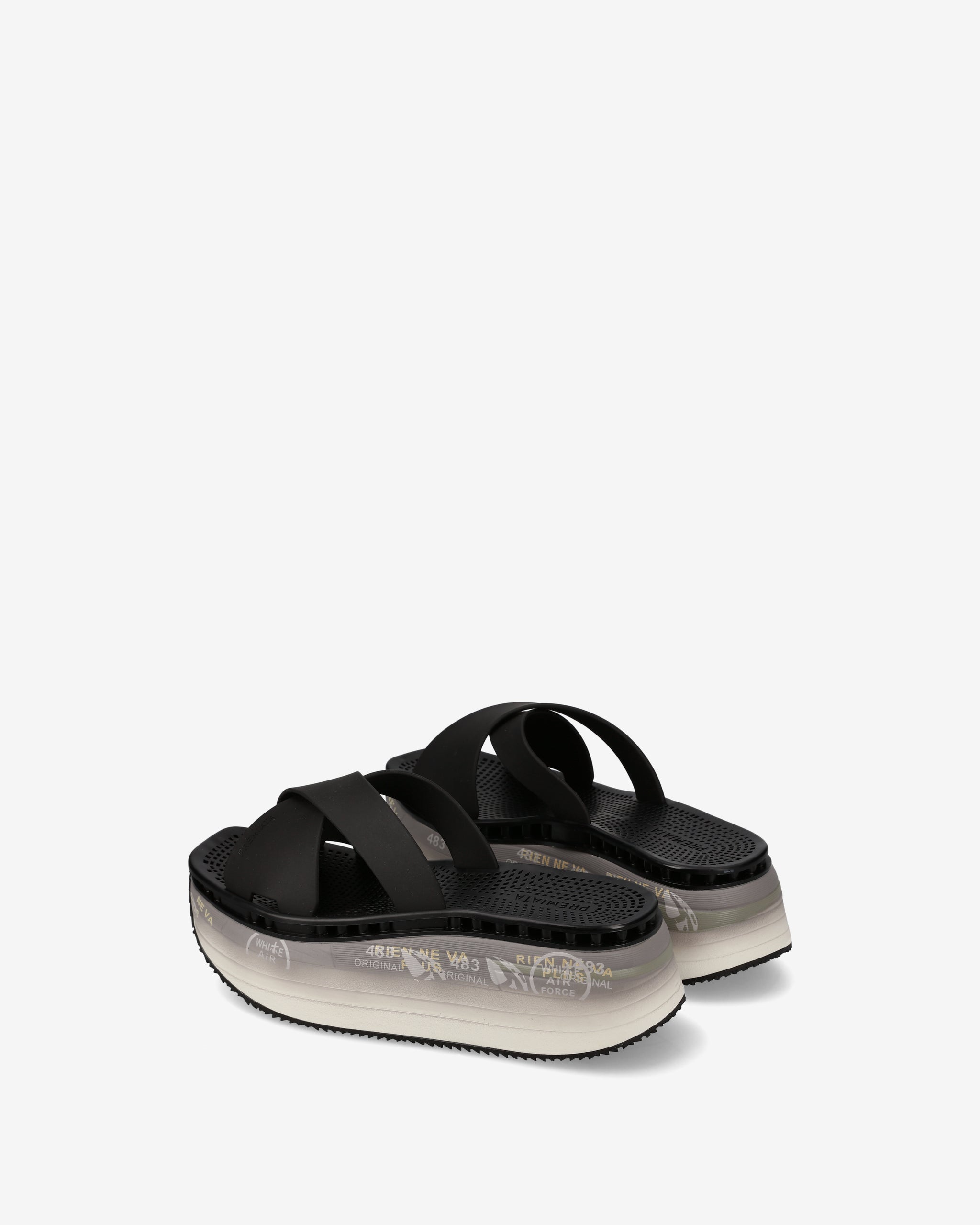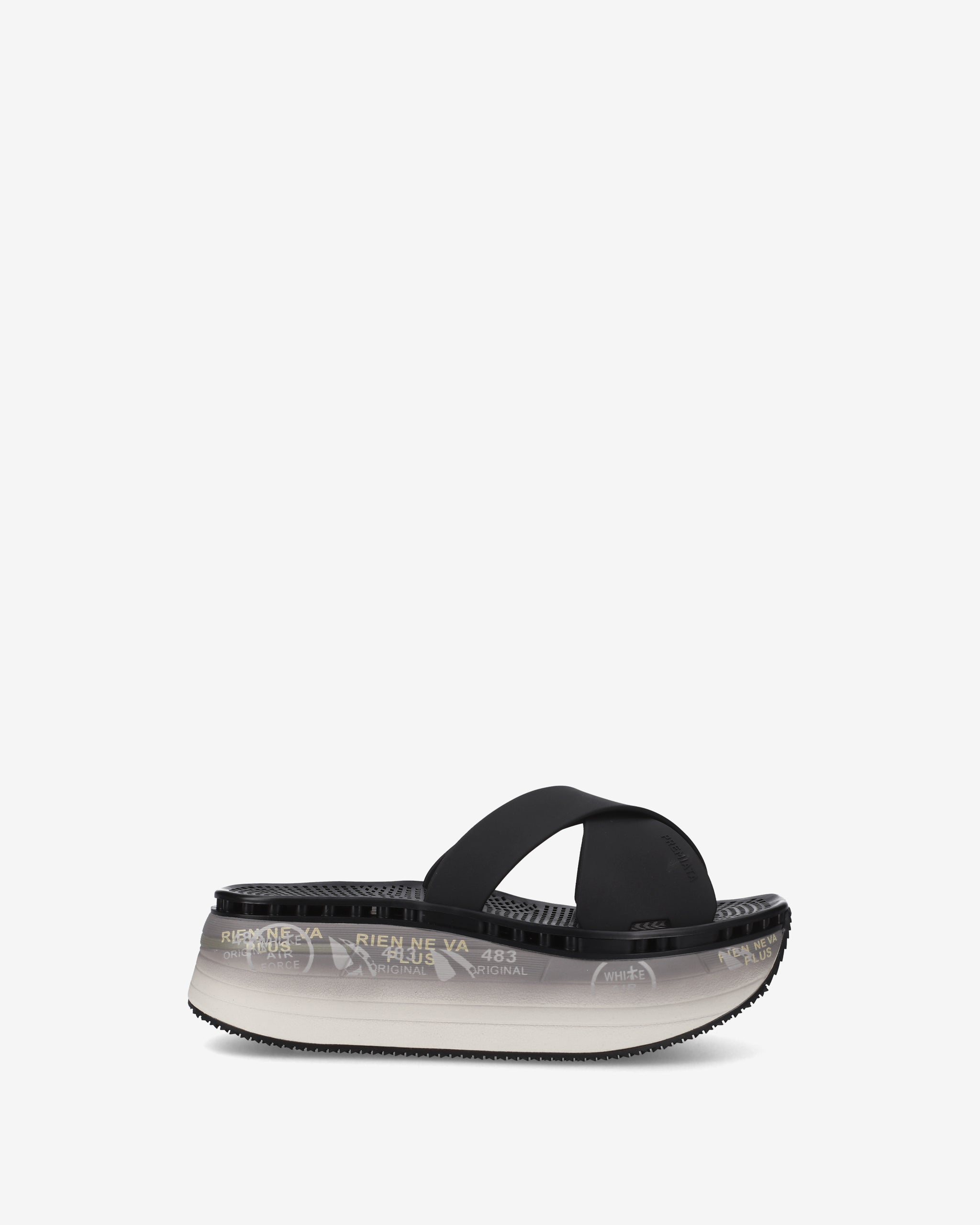 Sandali platform dallo stile moderno, caratterizzati da una struttura leggera e confortevole. Le fasce incrociate in TPU resistente e lavabile assicurano una calzata stabile e pratica, ideale per l’uso quotidiano. La suola oversize offre una buona ammortizzazione e un supporto costante, con dettagli grafici che valorizzano il design contemporaneo.