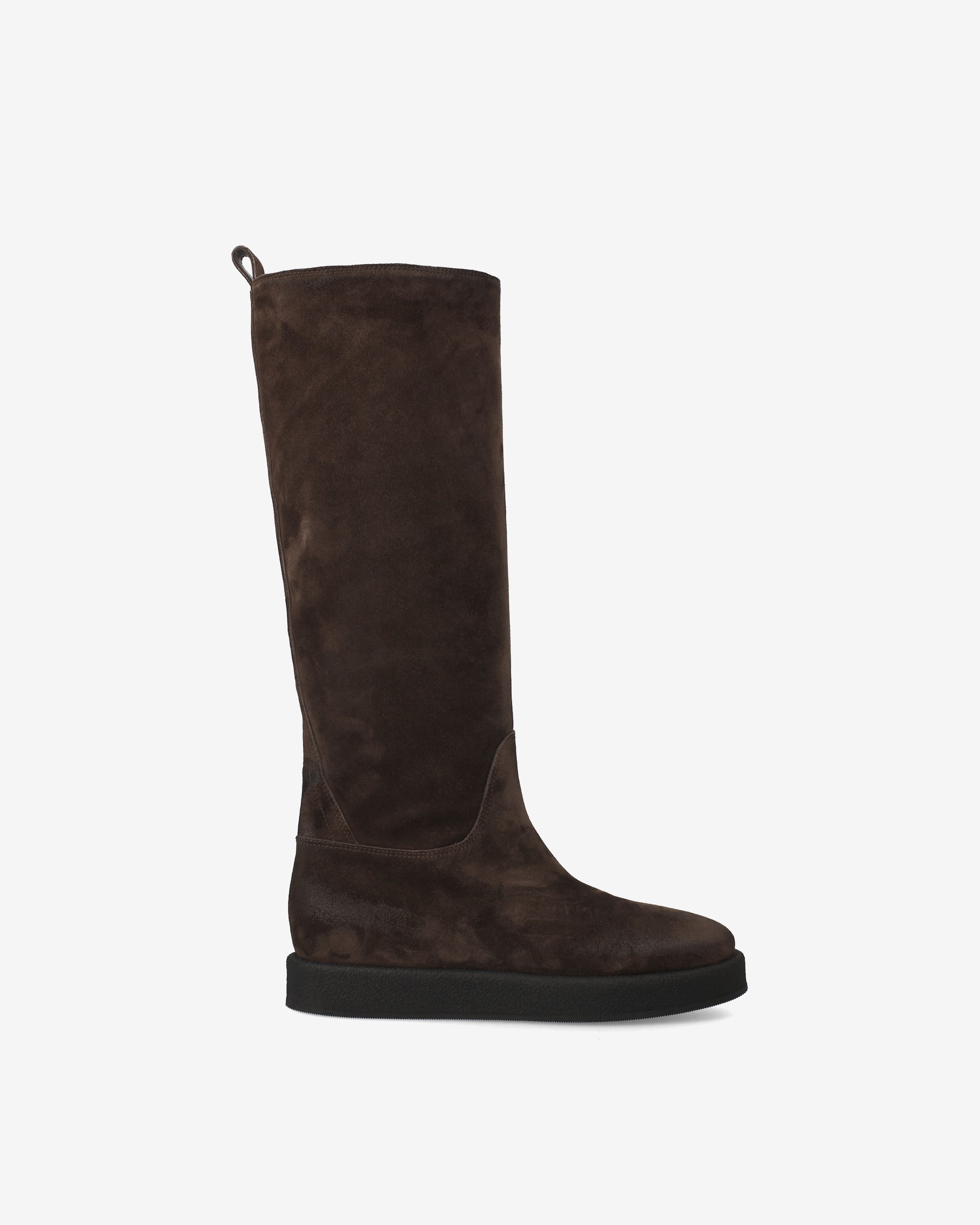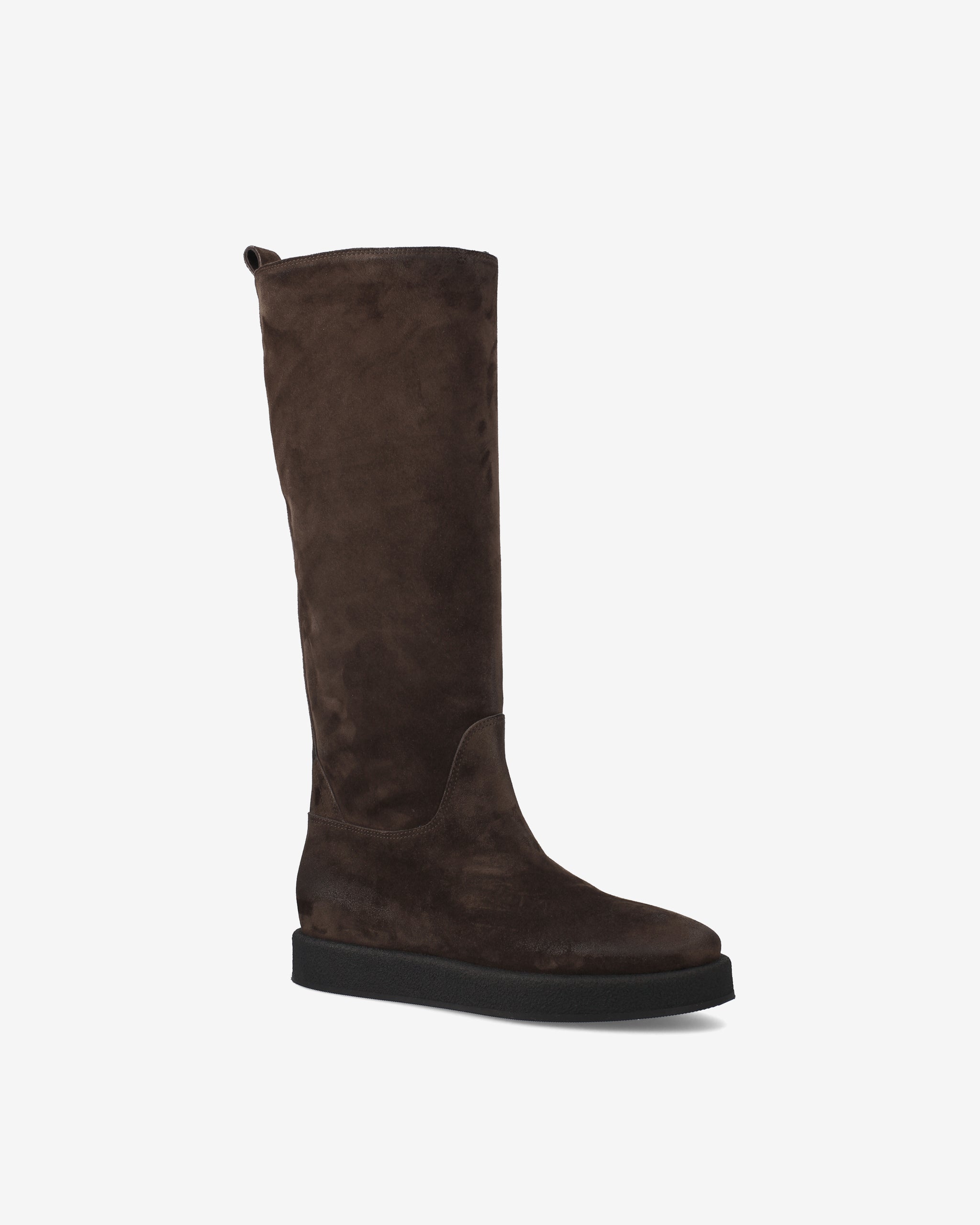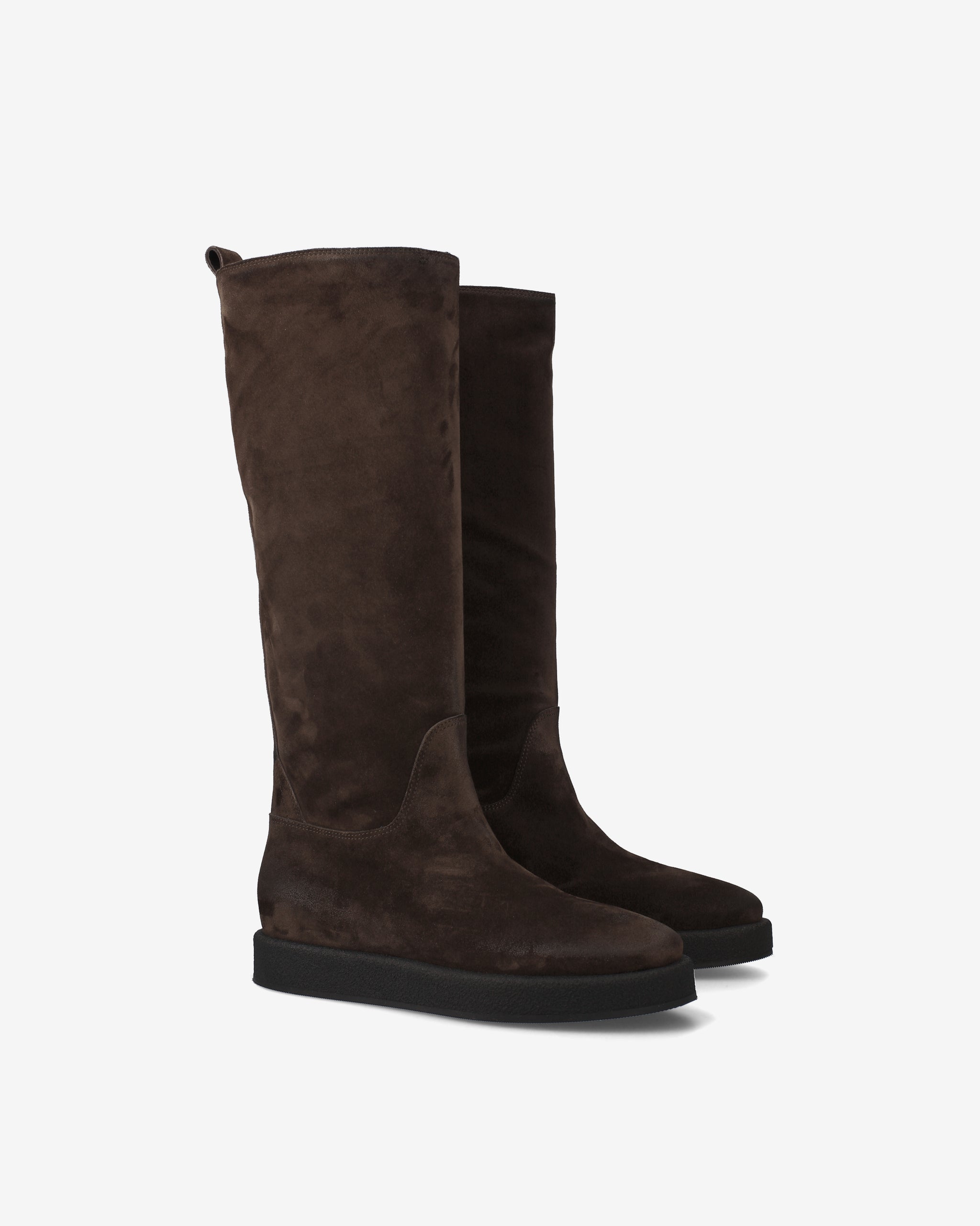 Stivali da donna dal design robusto e lineare, ideali per un utilizzo quotidiano durante la stagione fredda. Realizzati in pelle marrone, offrono un look naturale e versatile.