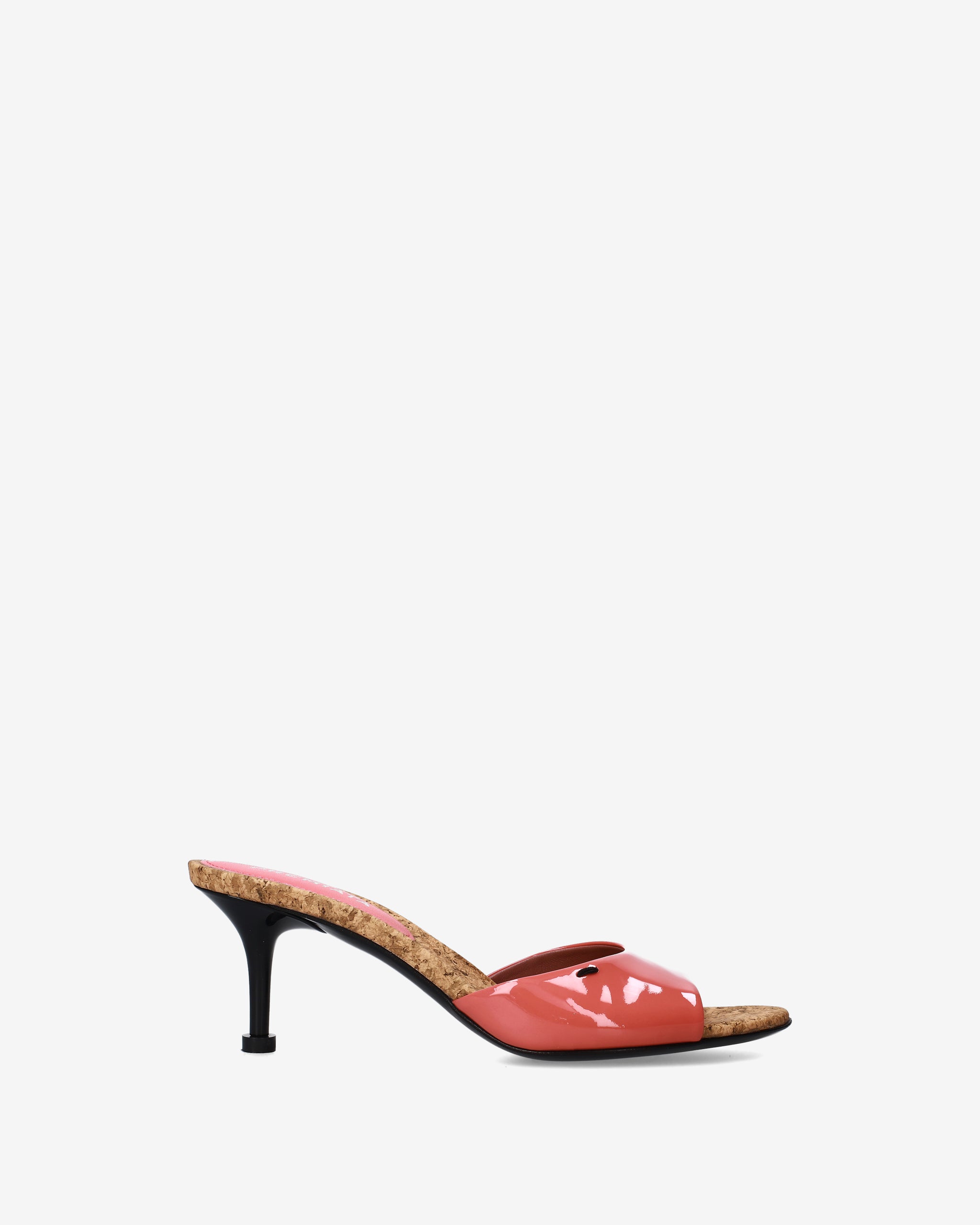 Un sandalo sabot dal design raffinato che gioca sul contrasto tra la lucentezza dei materiali sintetici e la texture naturale dei componenti interni. La tonalità vibrante e la silhouette slanciata ne definiscono l'estetica sofisticata e glamour