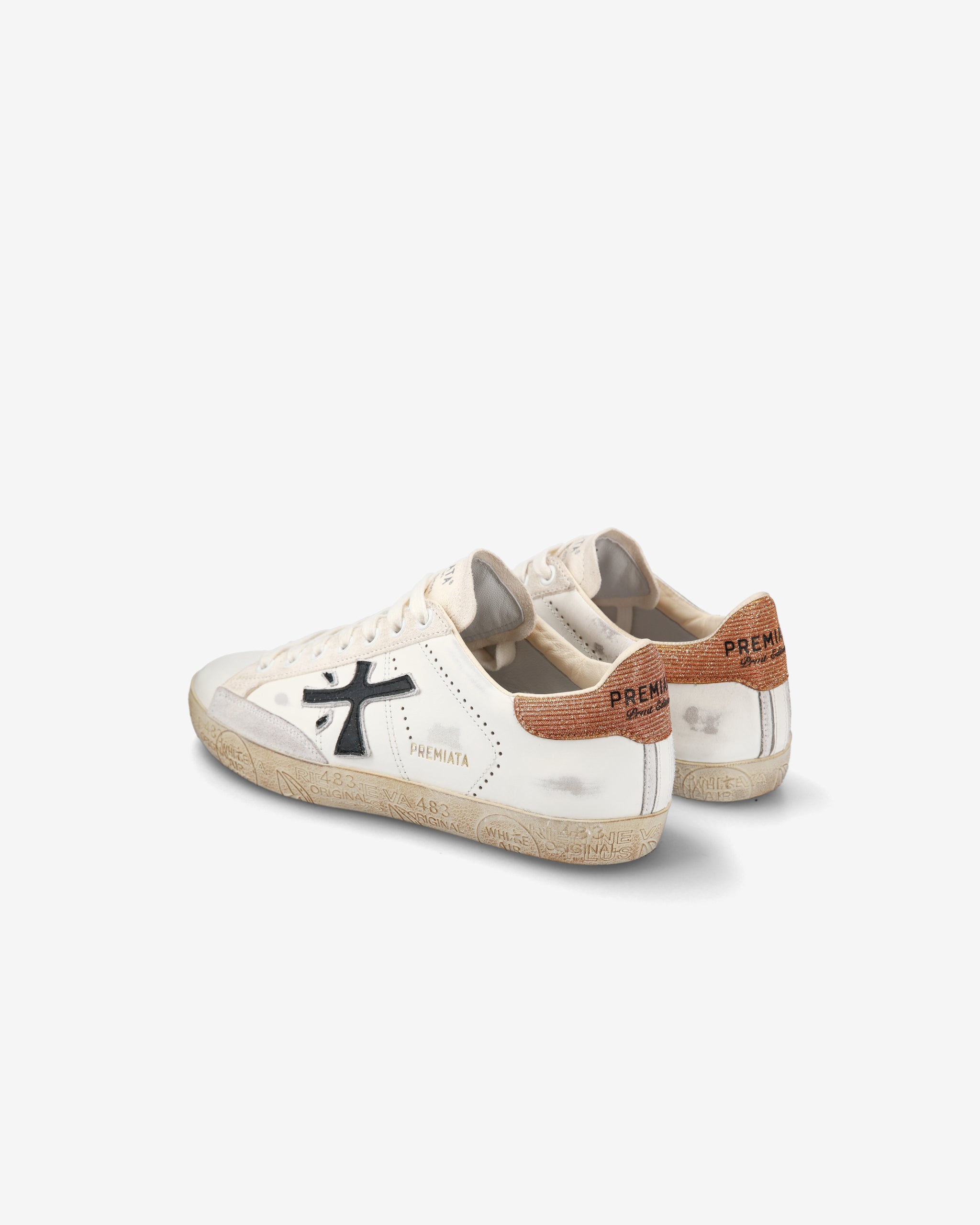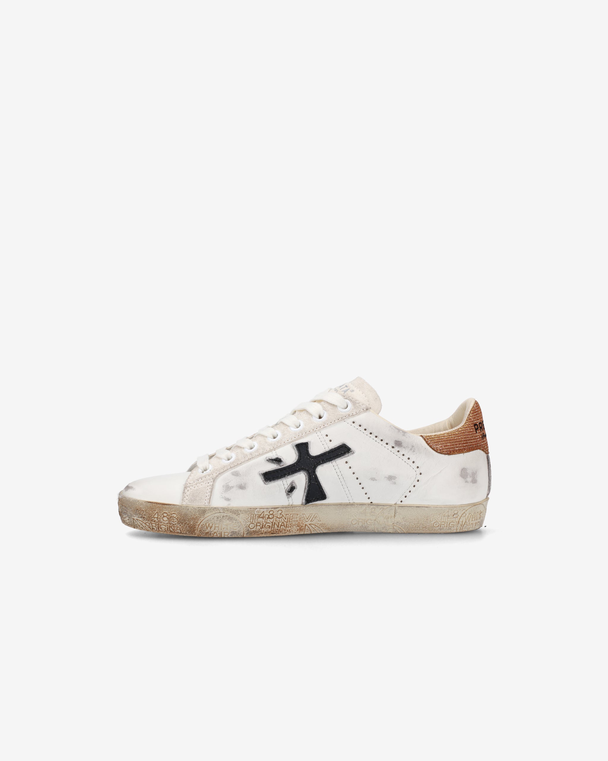 Iconica ed Avanguardista. Adatta ad un look street e giovanile. Queste sneakers Steven dalla tomaia in pelle bianca effetto used si distinguono per il logo in suede nero e il talloncino sul retro con gli strass. Arricchito dagli inserti in suede beige.