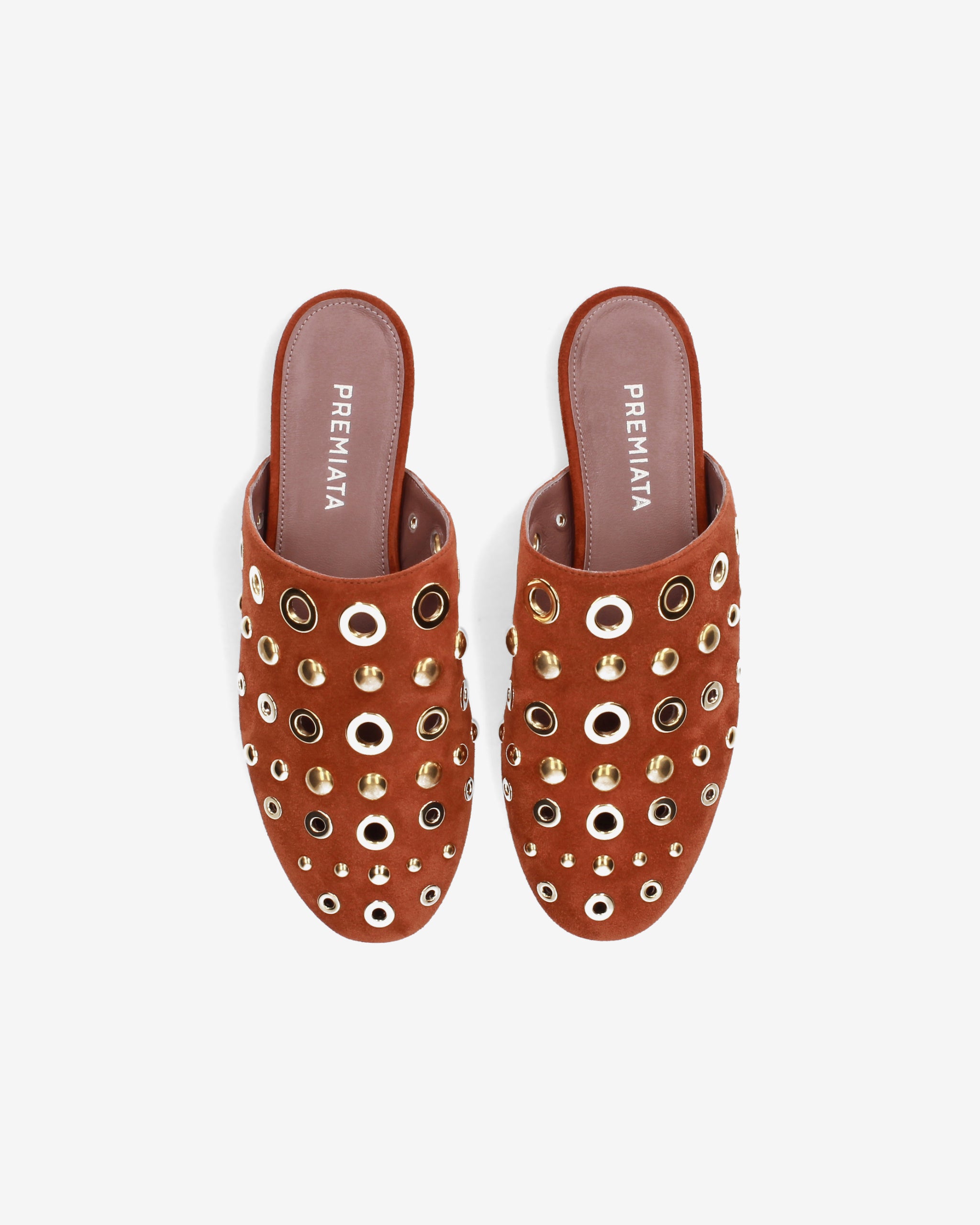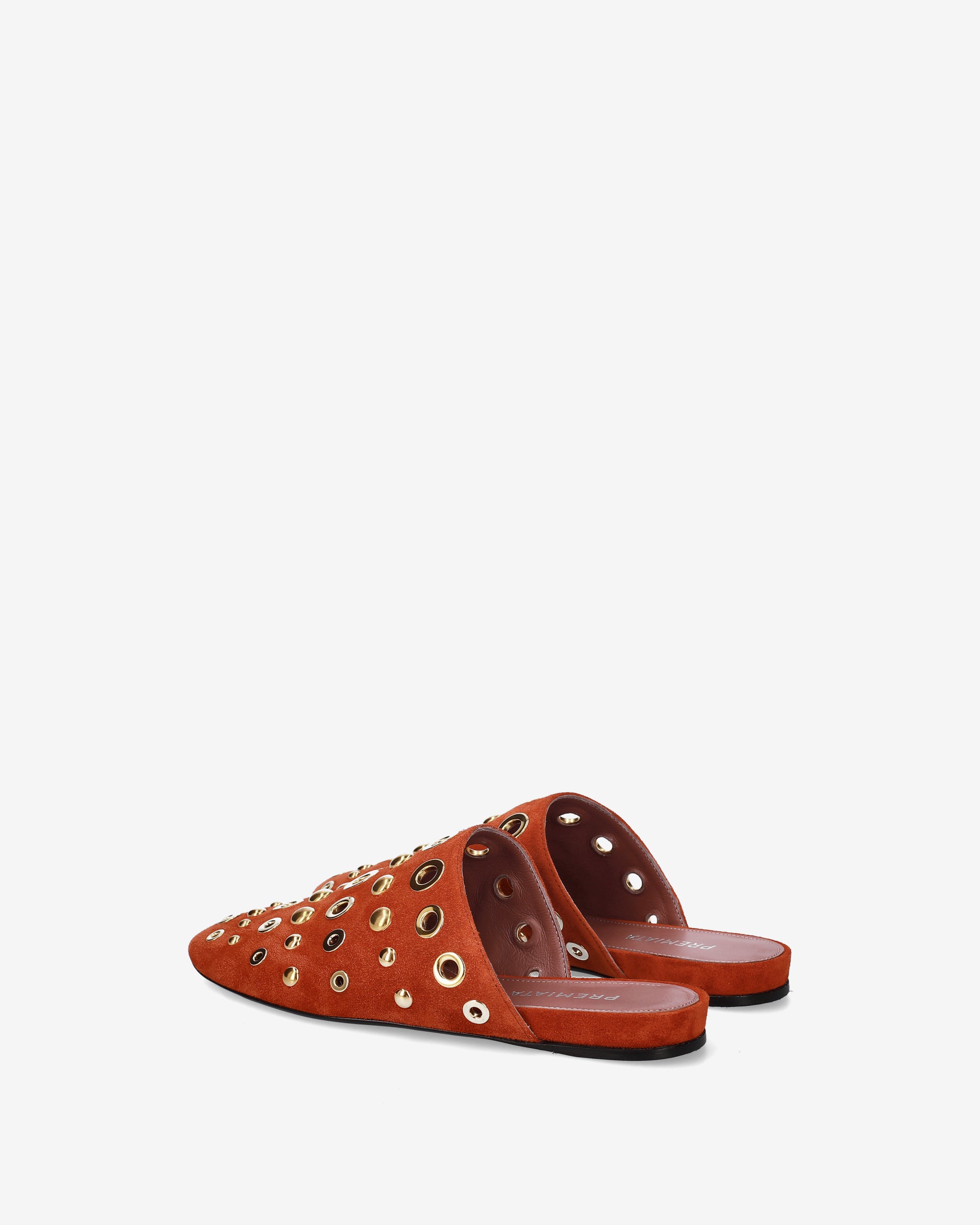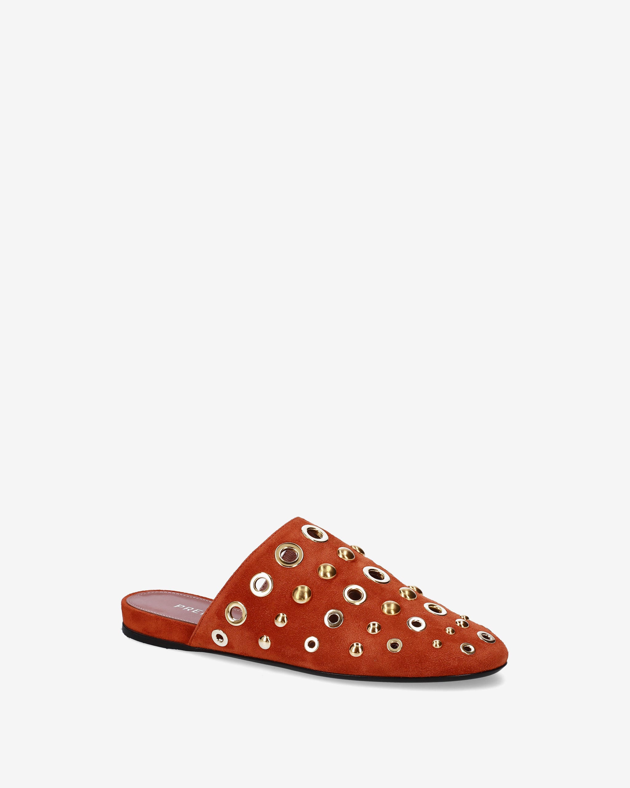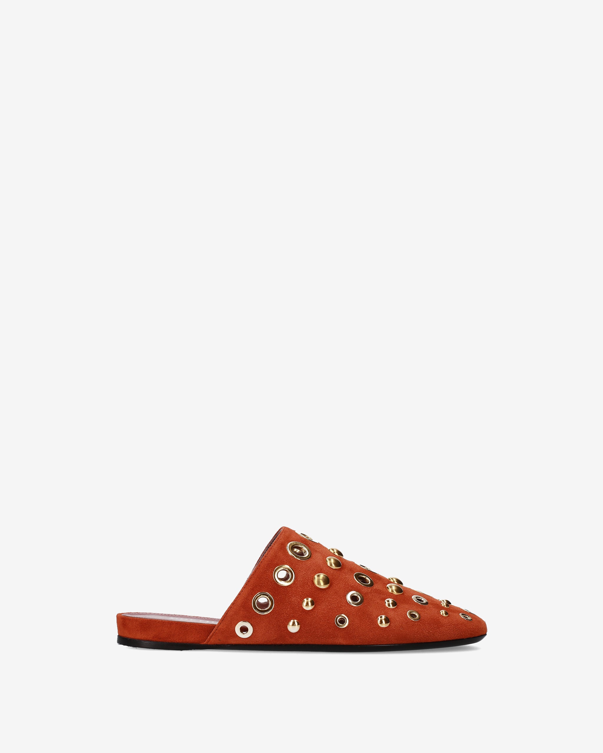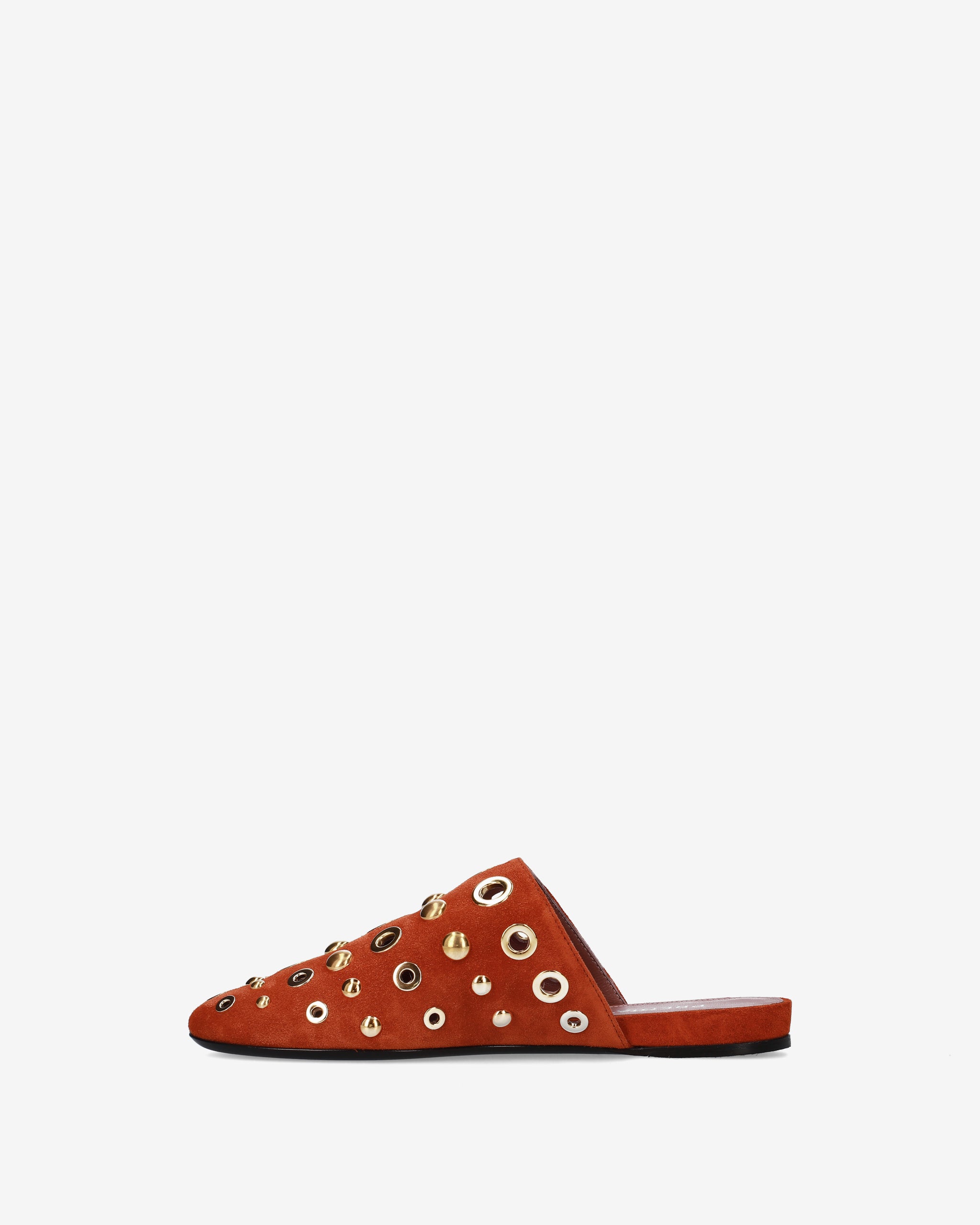 Elegante e di carattere, questo sabot flat combina la morbidezza della pelle scamosciata con un decoro metallico audace. La silhouette essenziale e la tonalità calda lo rendono l'accessorio ideale per completare look boho-chic o outfit urban quotidiani