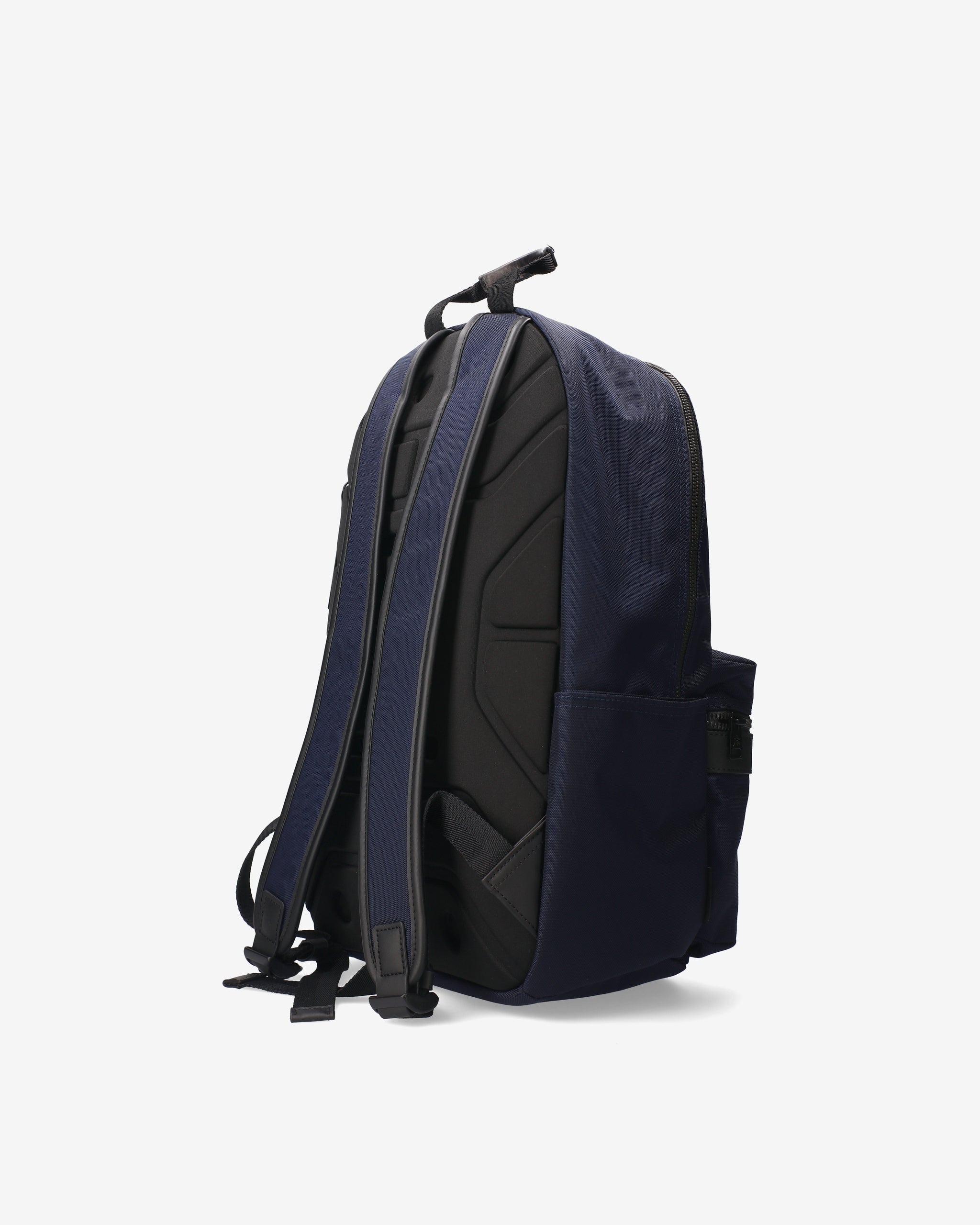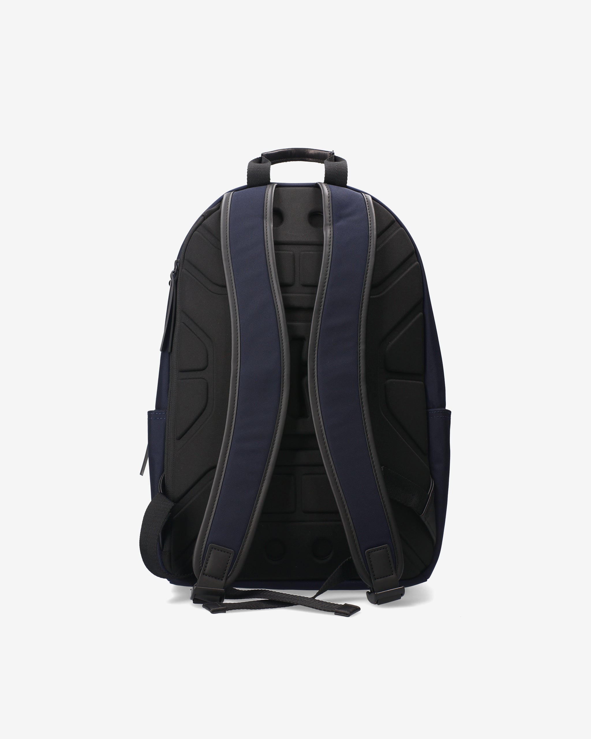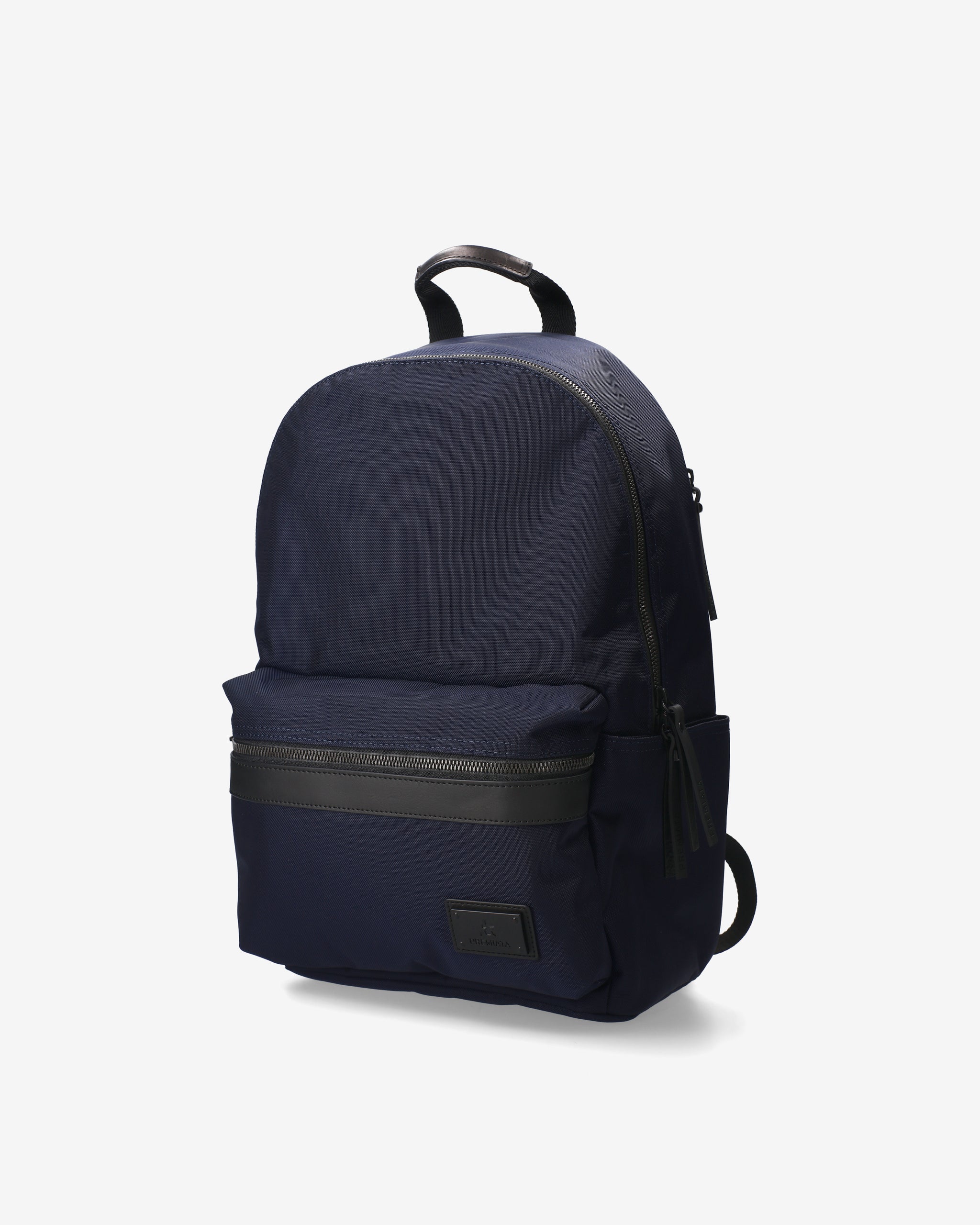 A capacious and versatile model made of premium nylon gabardine with anti-fray and water-repellent treatment. Padded EVA shoulder straps for added comfort. Waterproof front pockets with calfskin leather trim and matte metal closures.