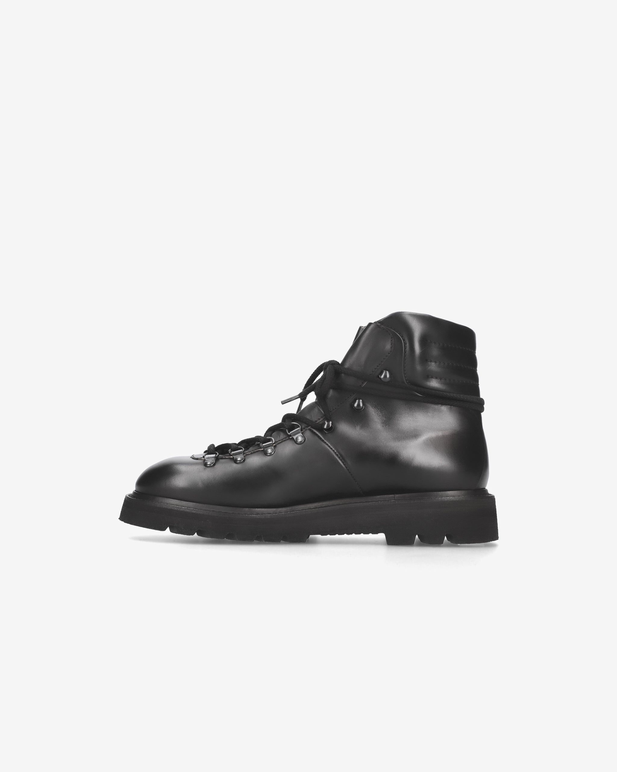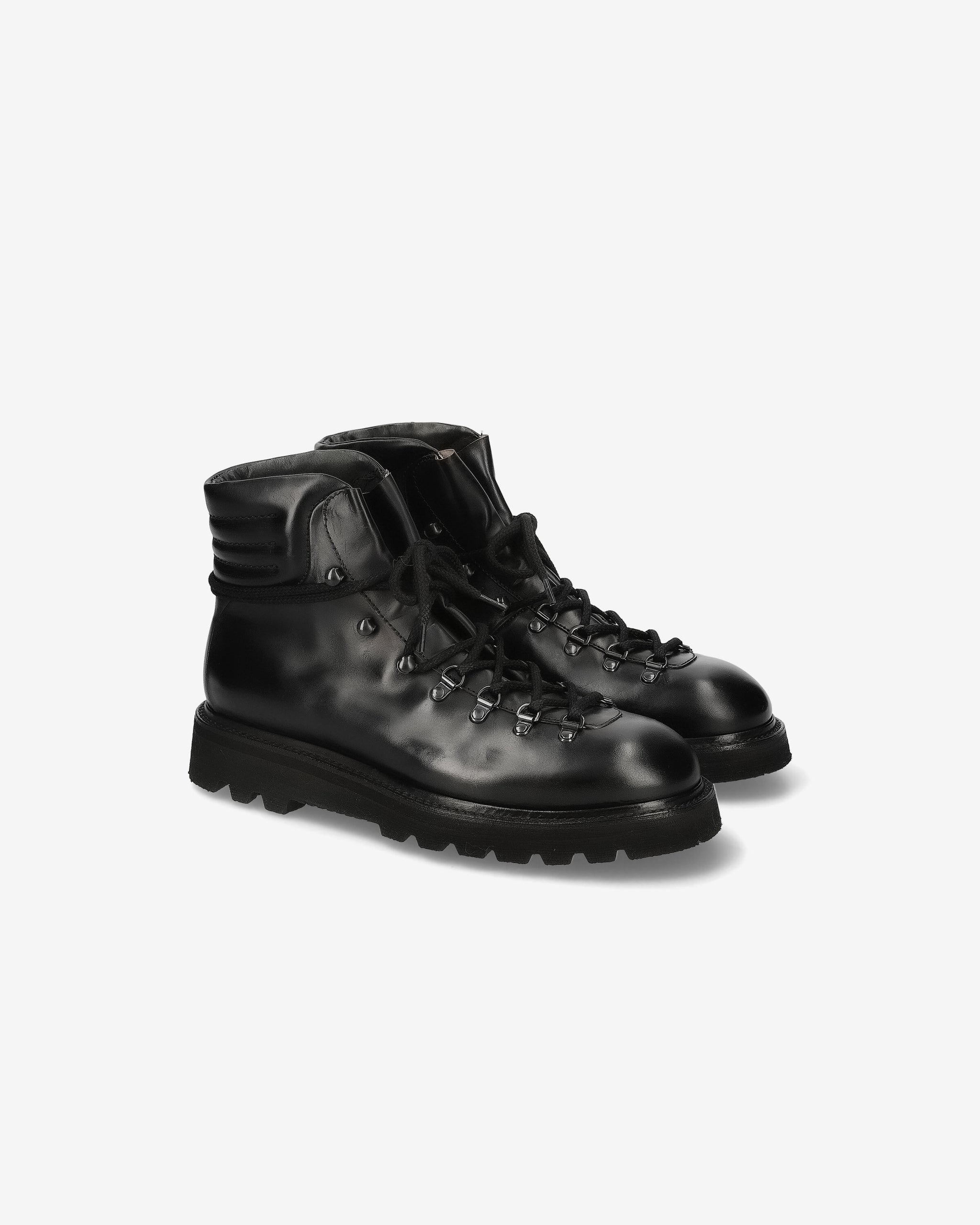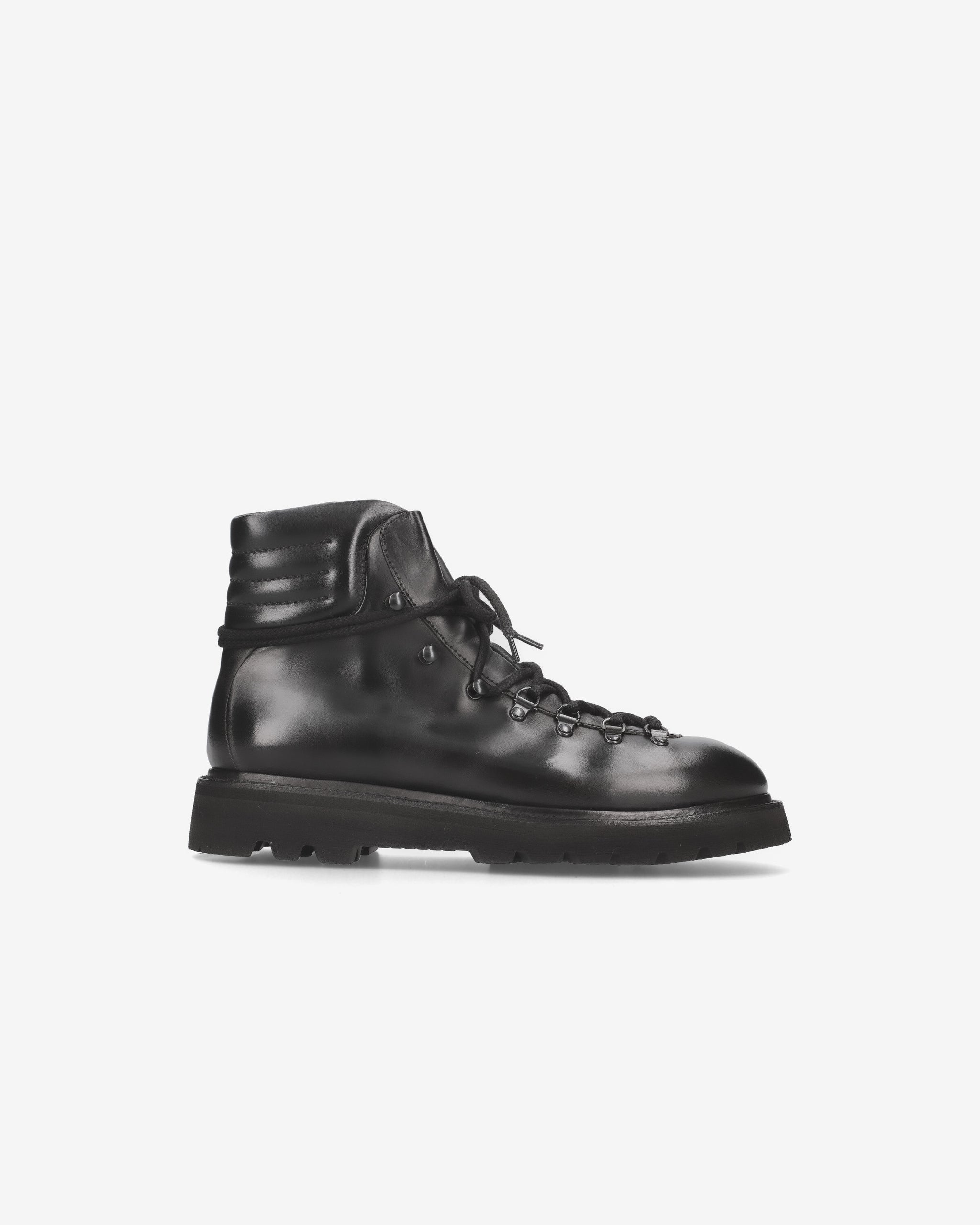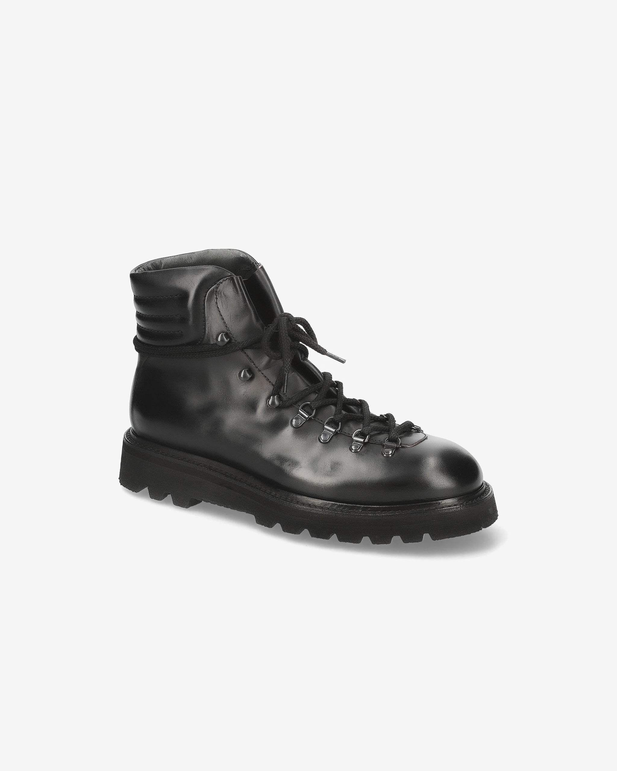These ankle boots embody Premiata's hybrid soul. Made of horsehide leather, they feature a mix of materials, style, and a design reminiscent of a hiking boot with a Vibram bottom.