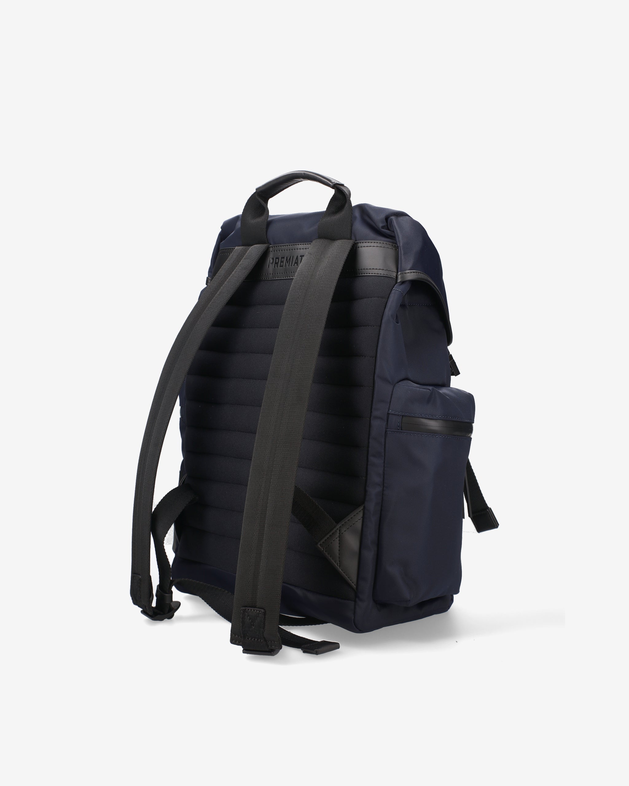 A capacious and versatile model made of premium nylon gabardine with anti-fray and water-repellent treatment. Padded EVA back and shoulder straps for added comfort. Waterproof side pockets with calfskin leather trim and matte metal fasteners.