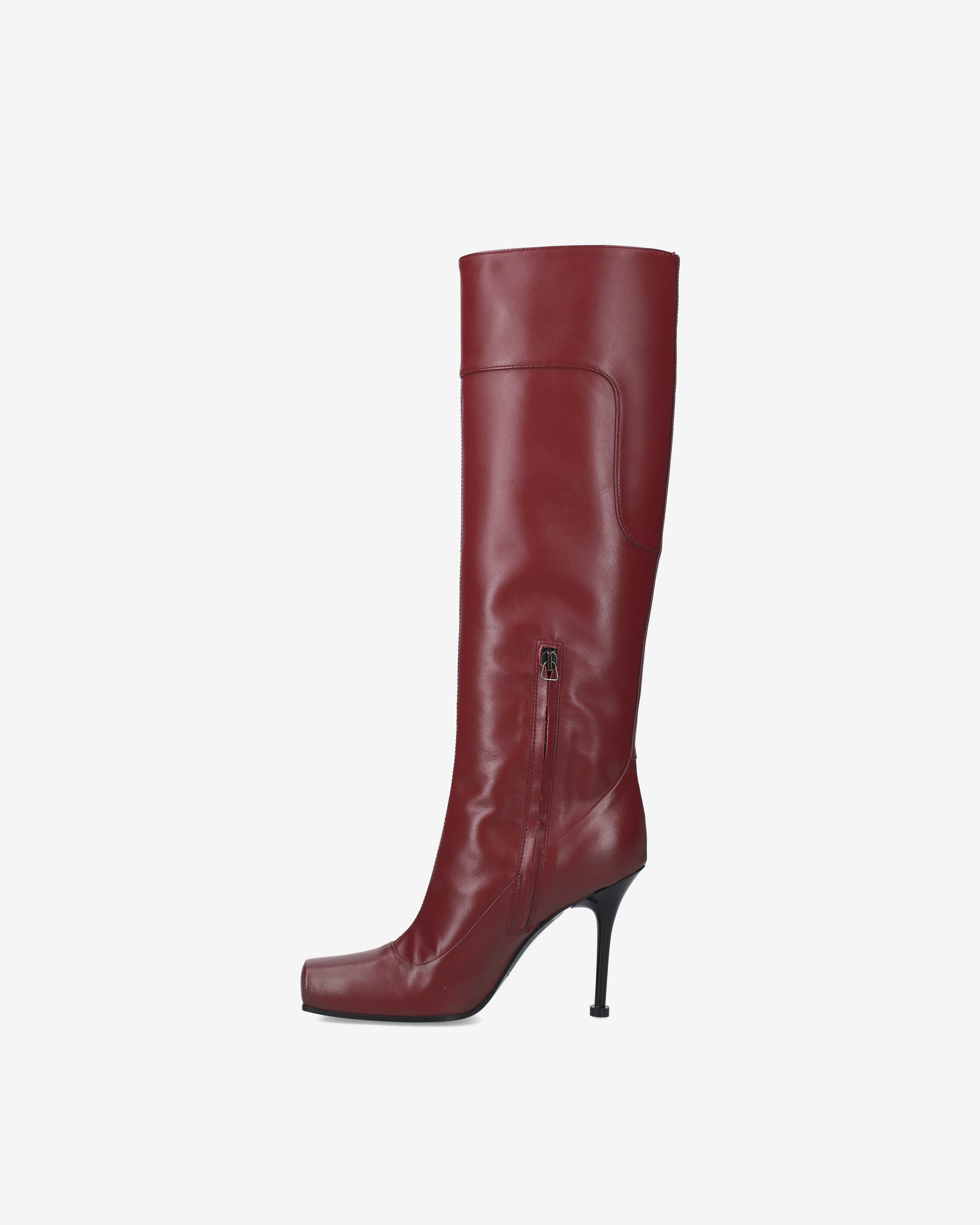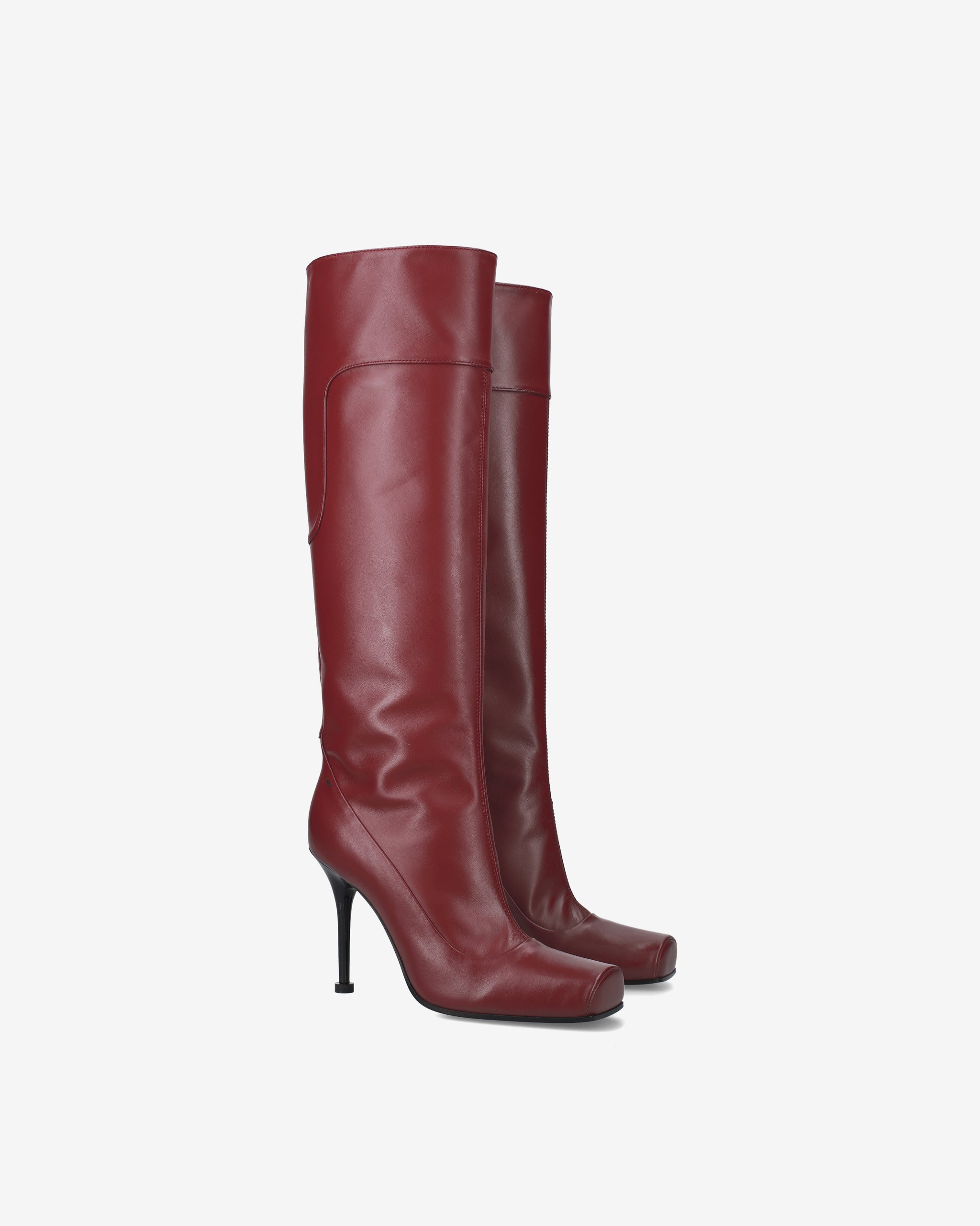 Women's boots with a refined and bold design, perfect for completing winter looks with a touch of elegance. Made of wine-colored leather, they combine style and comfort for everyday use during the cold season.