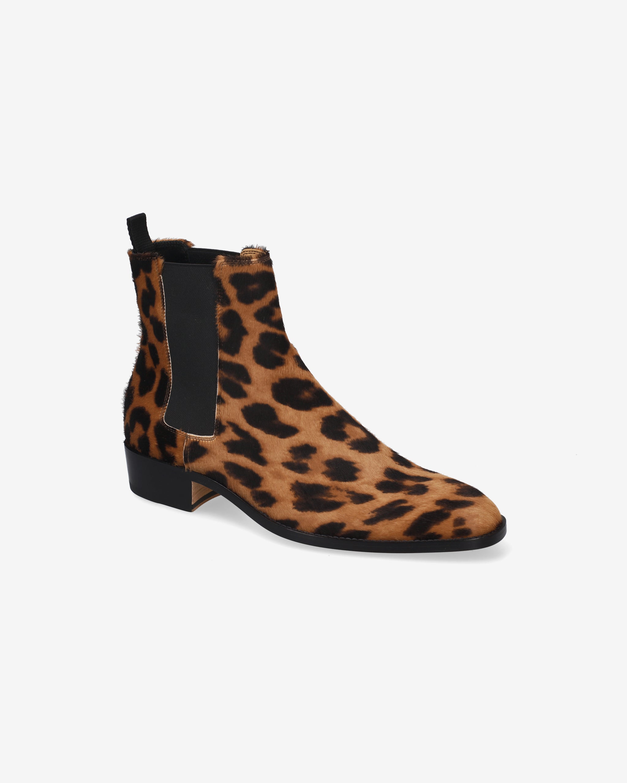 Bold, distinctive ankle boots crafted in spotted pony skin for a bold, contemporary look. The side elastic band ensures practicality and comfort, while the Blake workmanship and leather sole confirm excellent craftsmanship. The 30mm heel and 155mm shaft complete a sleek, characterful silhouette.
