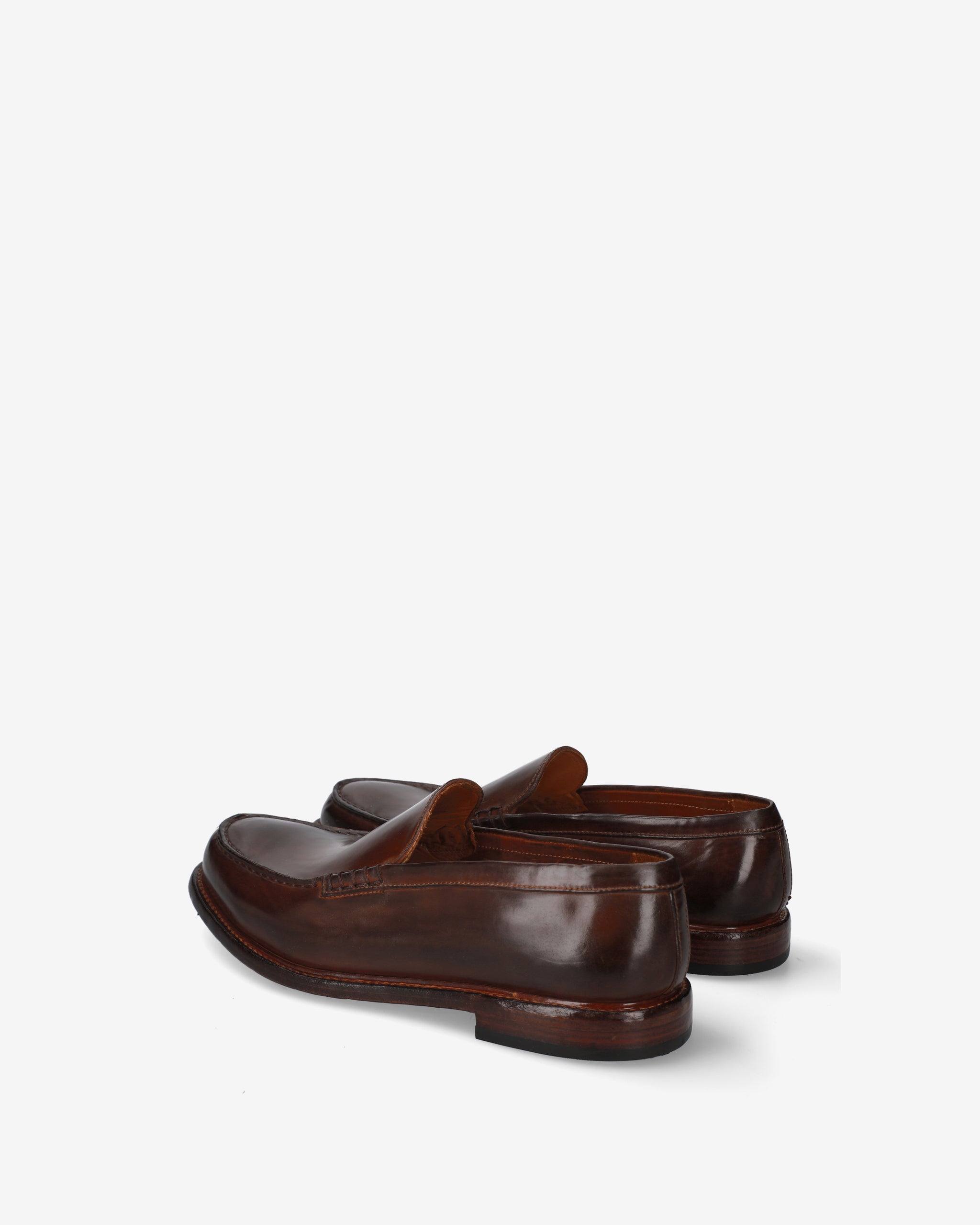 A moccasin with a bold character and substantial structure, reinterpreting classic design through high-end craftsmanship. The warm tones and nuances of the leather enhance its vintage and sophisticated aesthetic.
