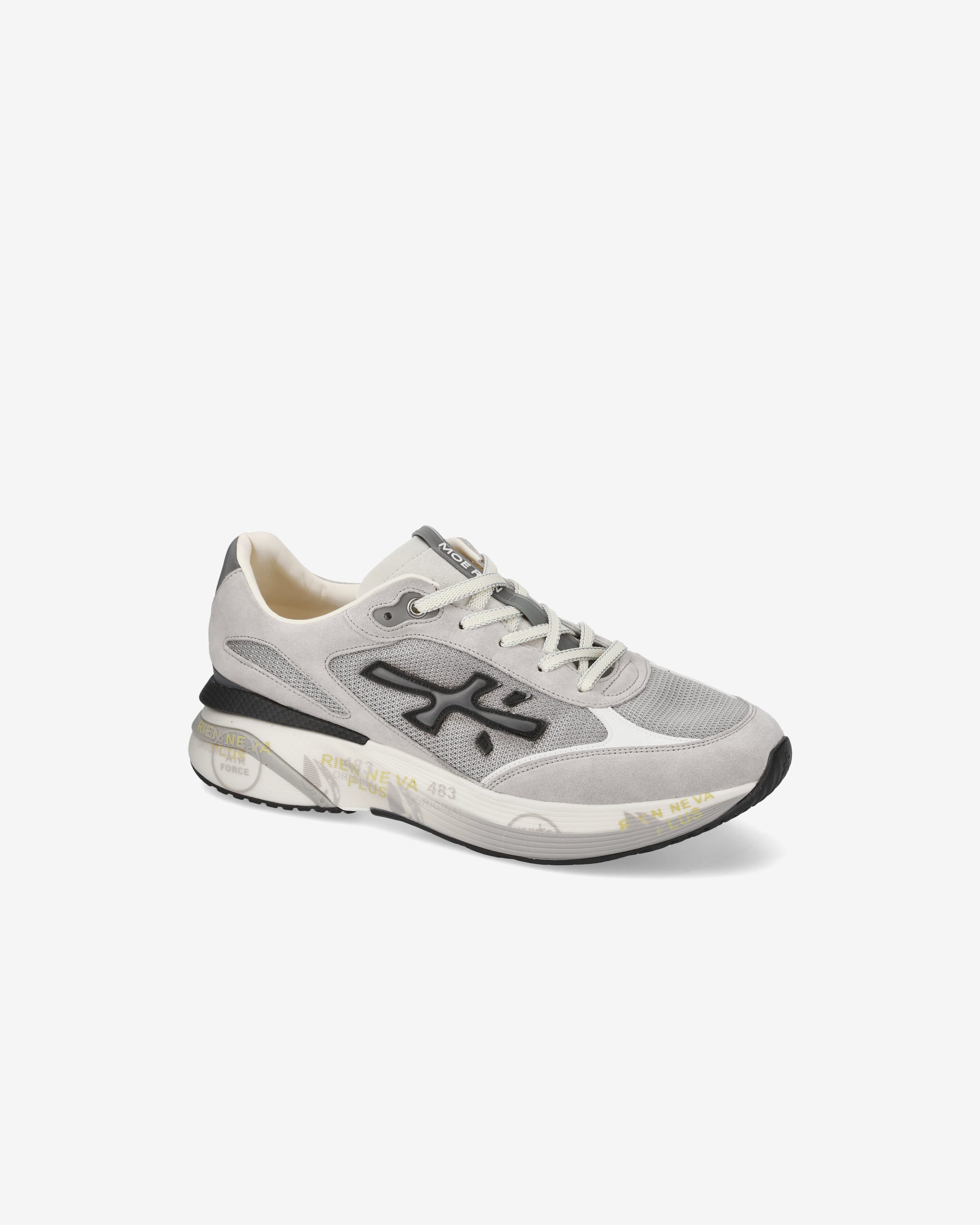 Designed to impress. The Moerun is based on the lightness of movement, stability and cushioning sensation provided by the innovation of the bottom. The new silhouette is rich in details: logo on the outer side, PREMIATA lettering on the inner side, and model name on the label.