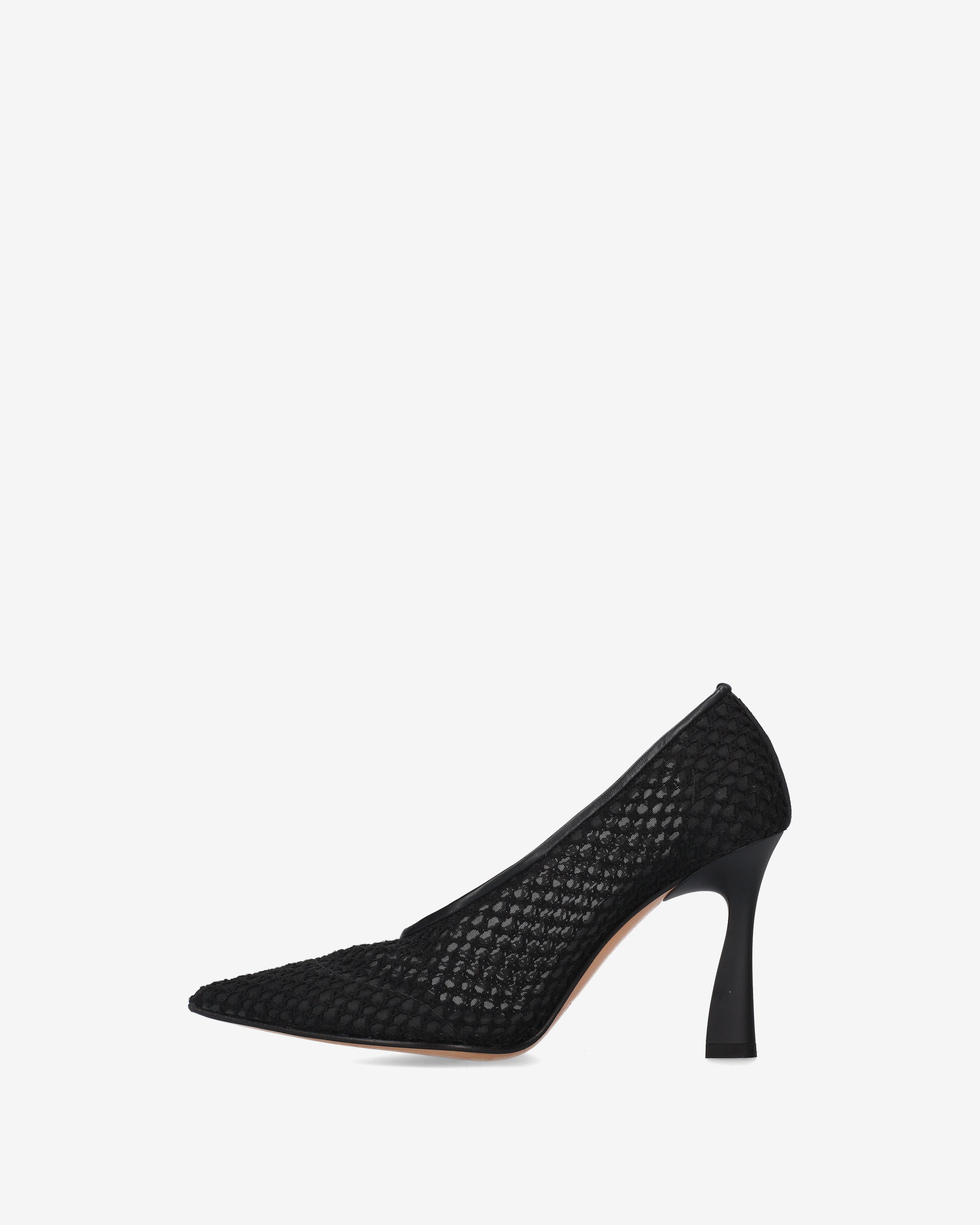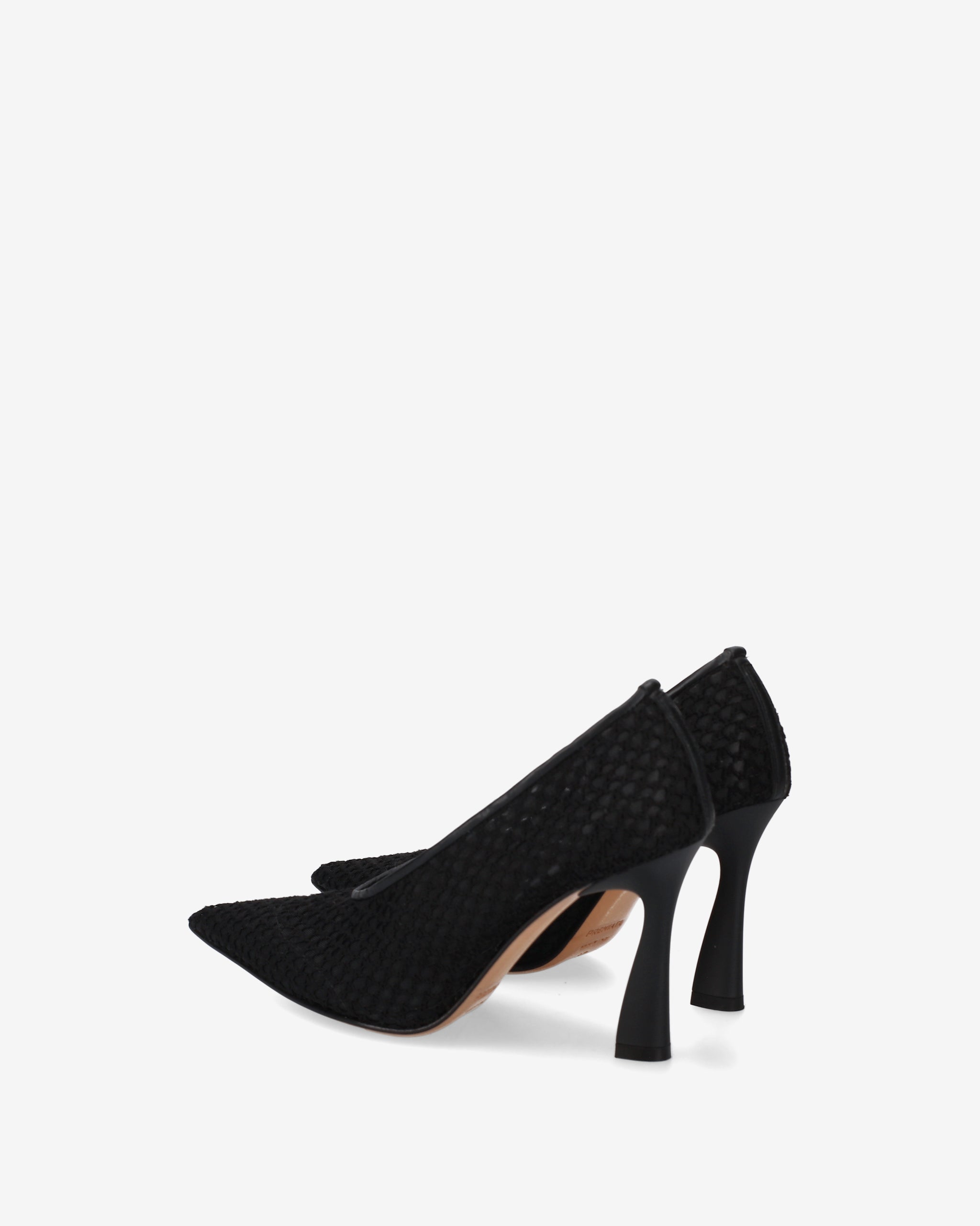 Refined pumps made with embroidered mesh on lightweight netting for a sophisticated and delicate effect. The leather trim adds a touch of elegance, while the 90mm heel in matte ABS completes the design with a slender and modern silhouette.