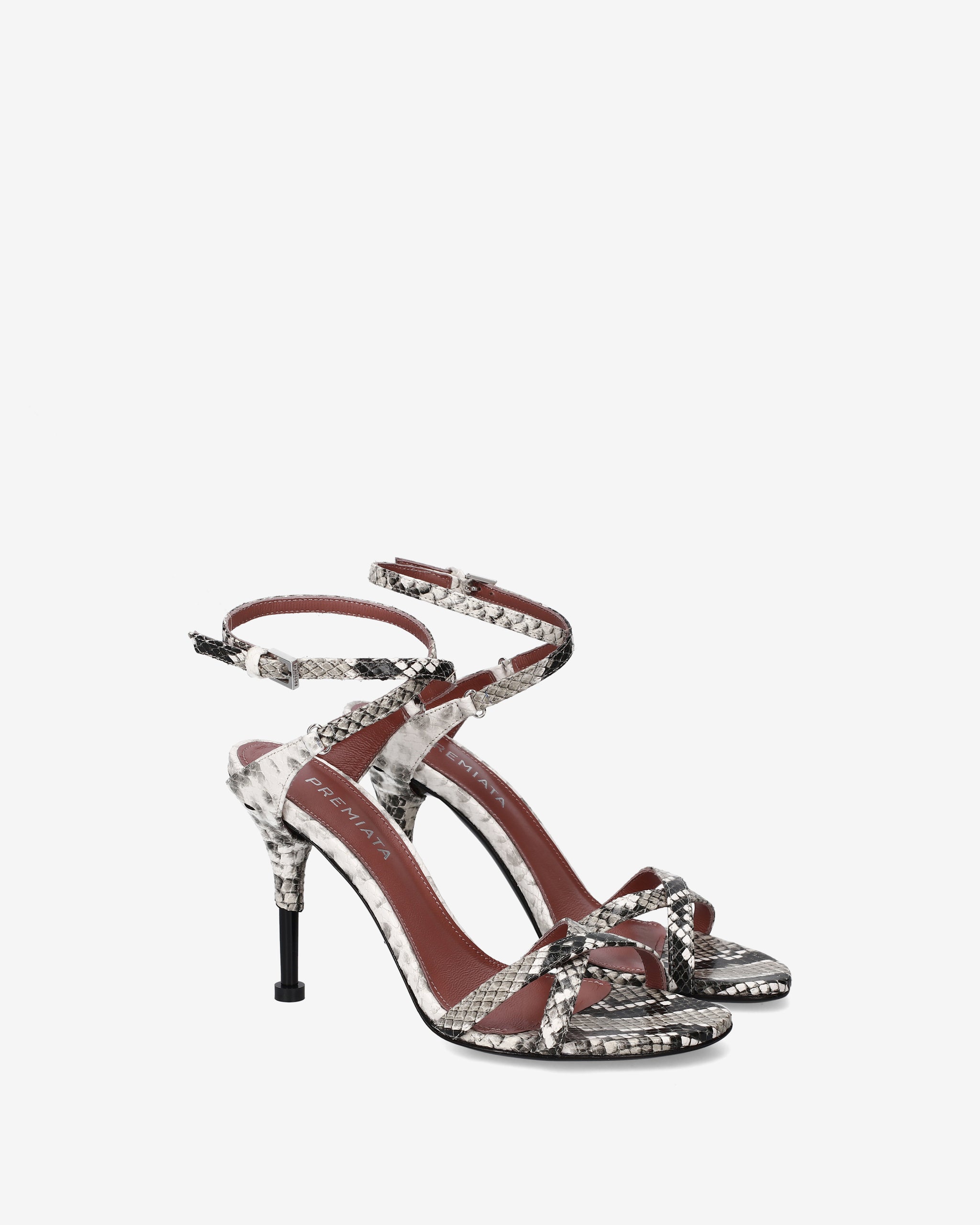 Python print leather heeled sandals