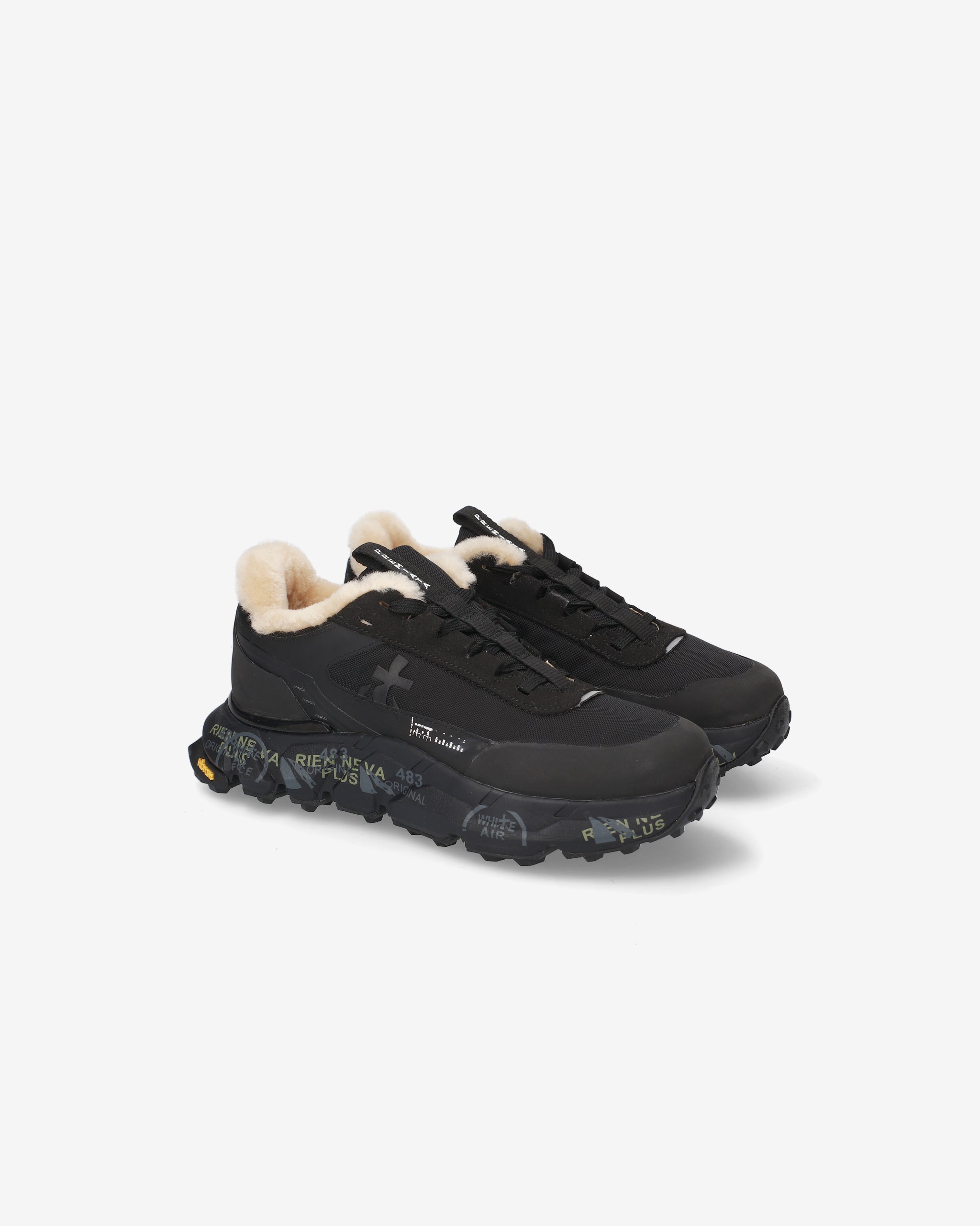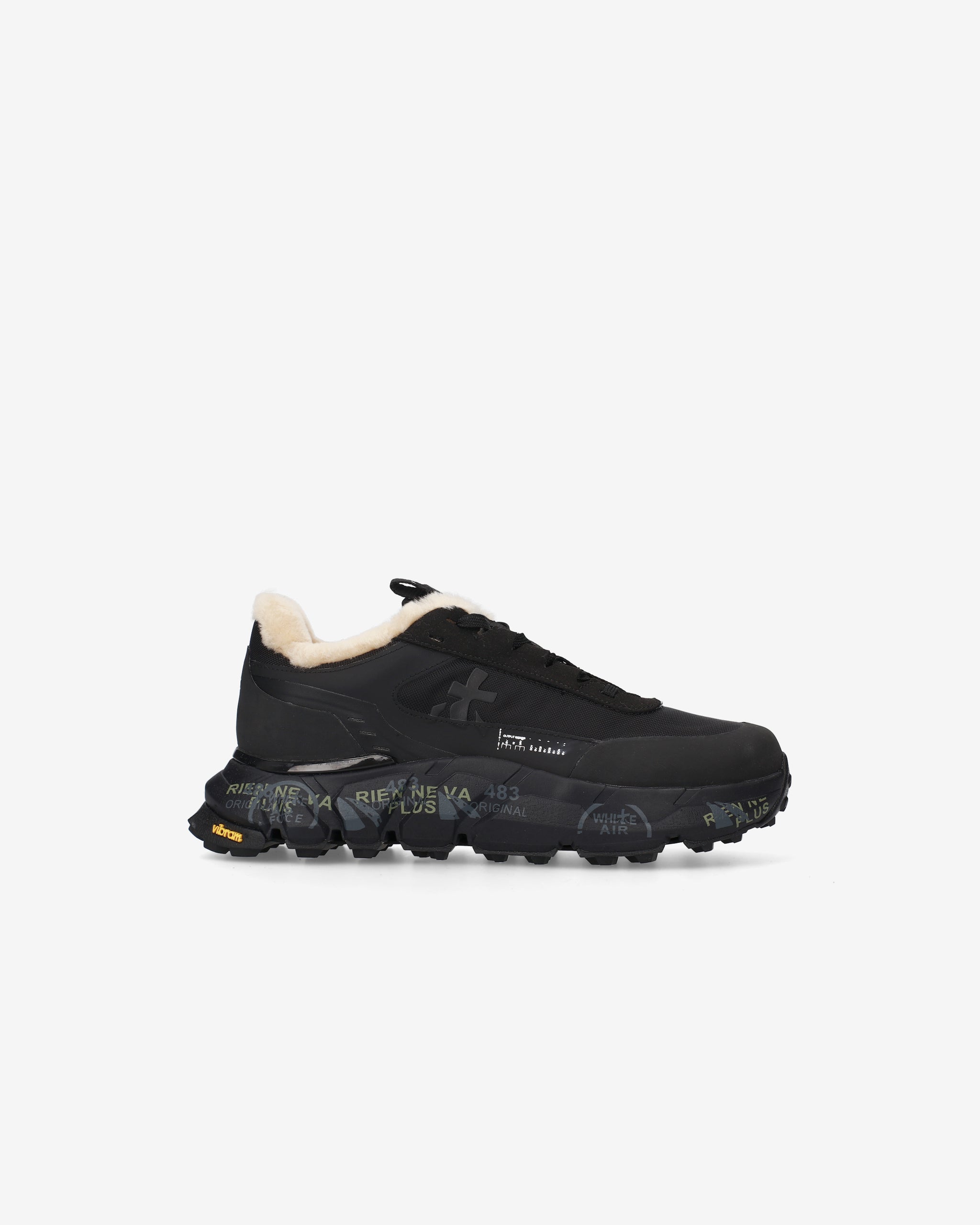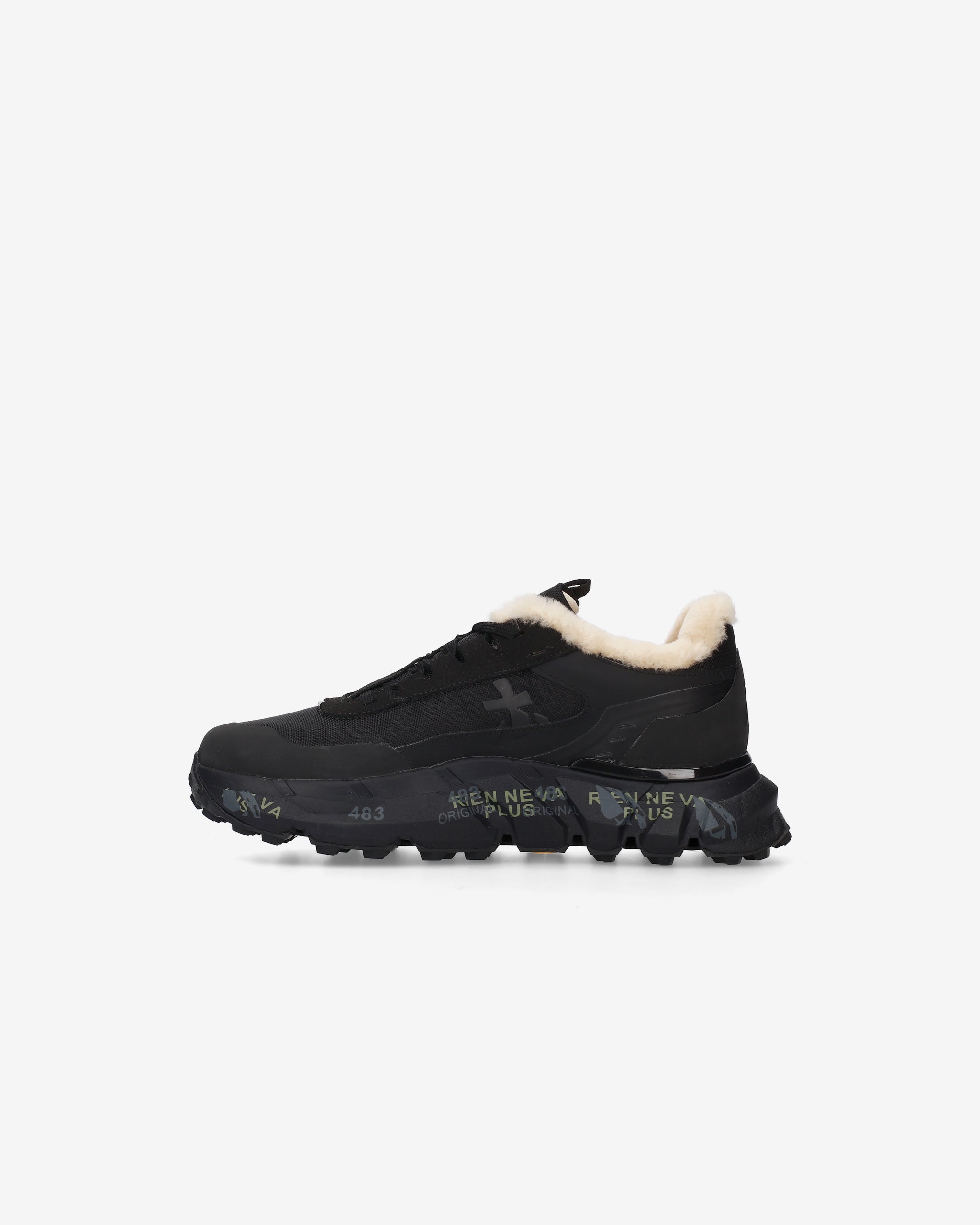 This shearling-lined hiking shoe combines an urban aesthetic with outdoor functionality. The compact design and contrasting materials combine with an embellished sole that lends character and originality, perfect for tackling trails in style.