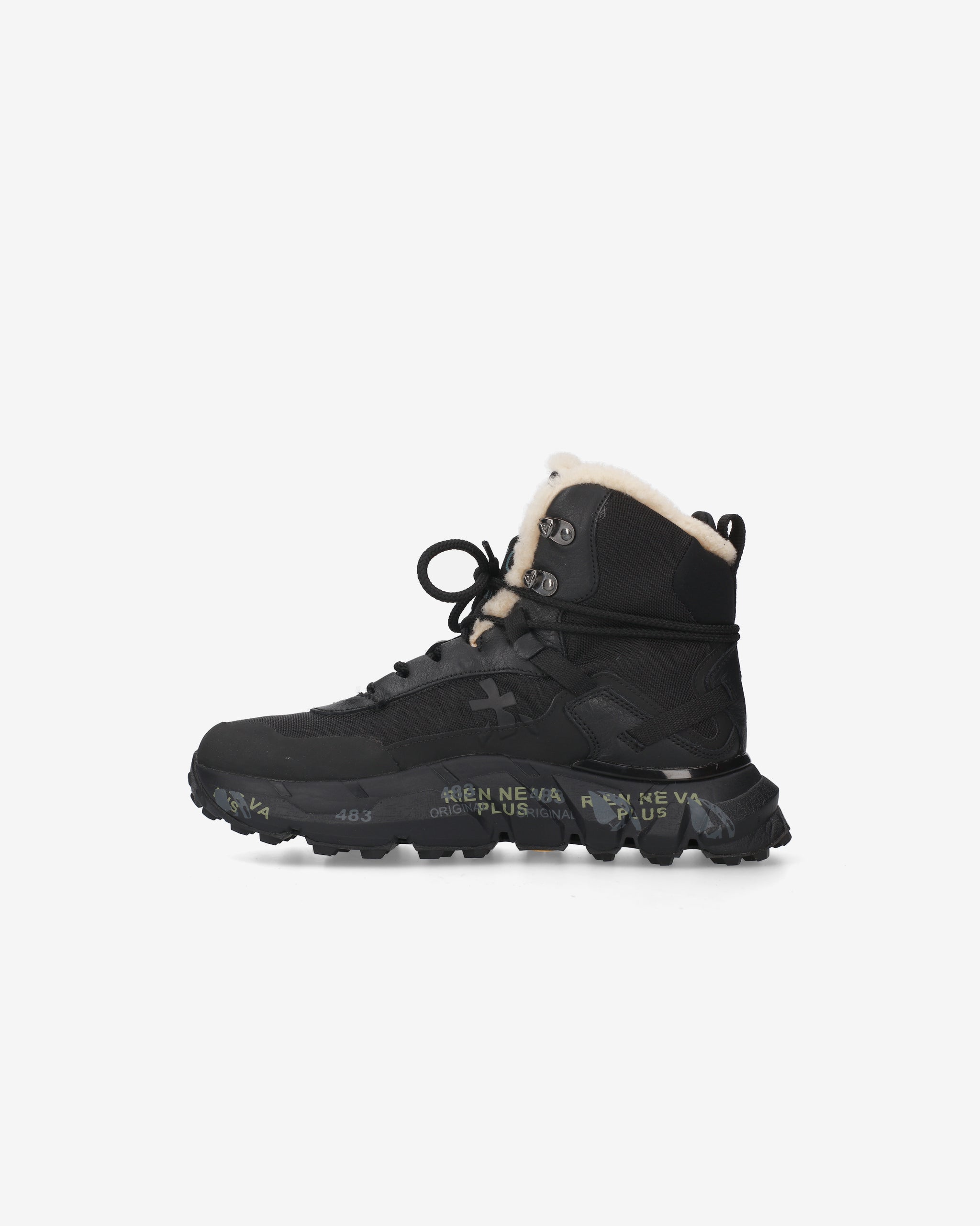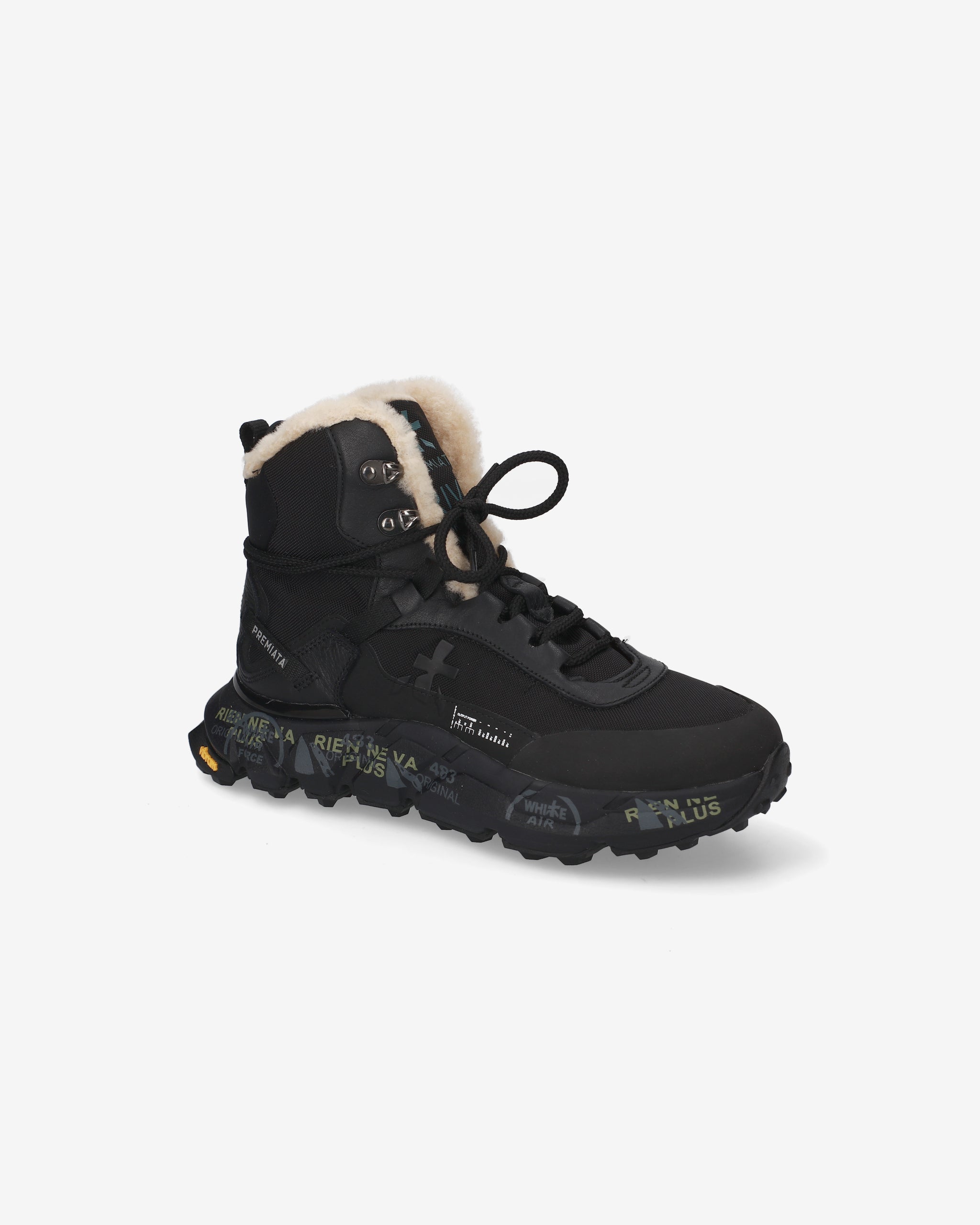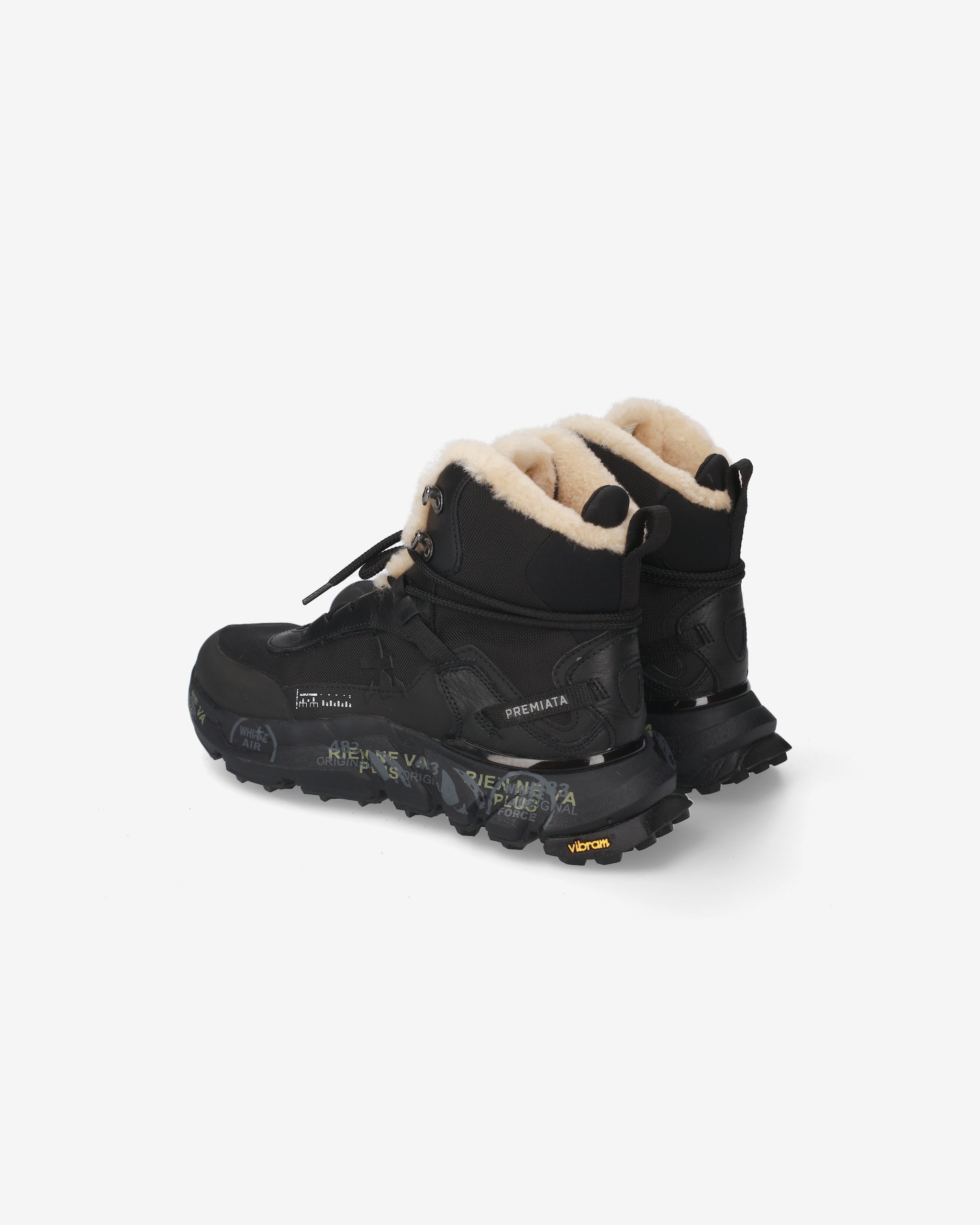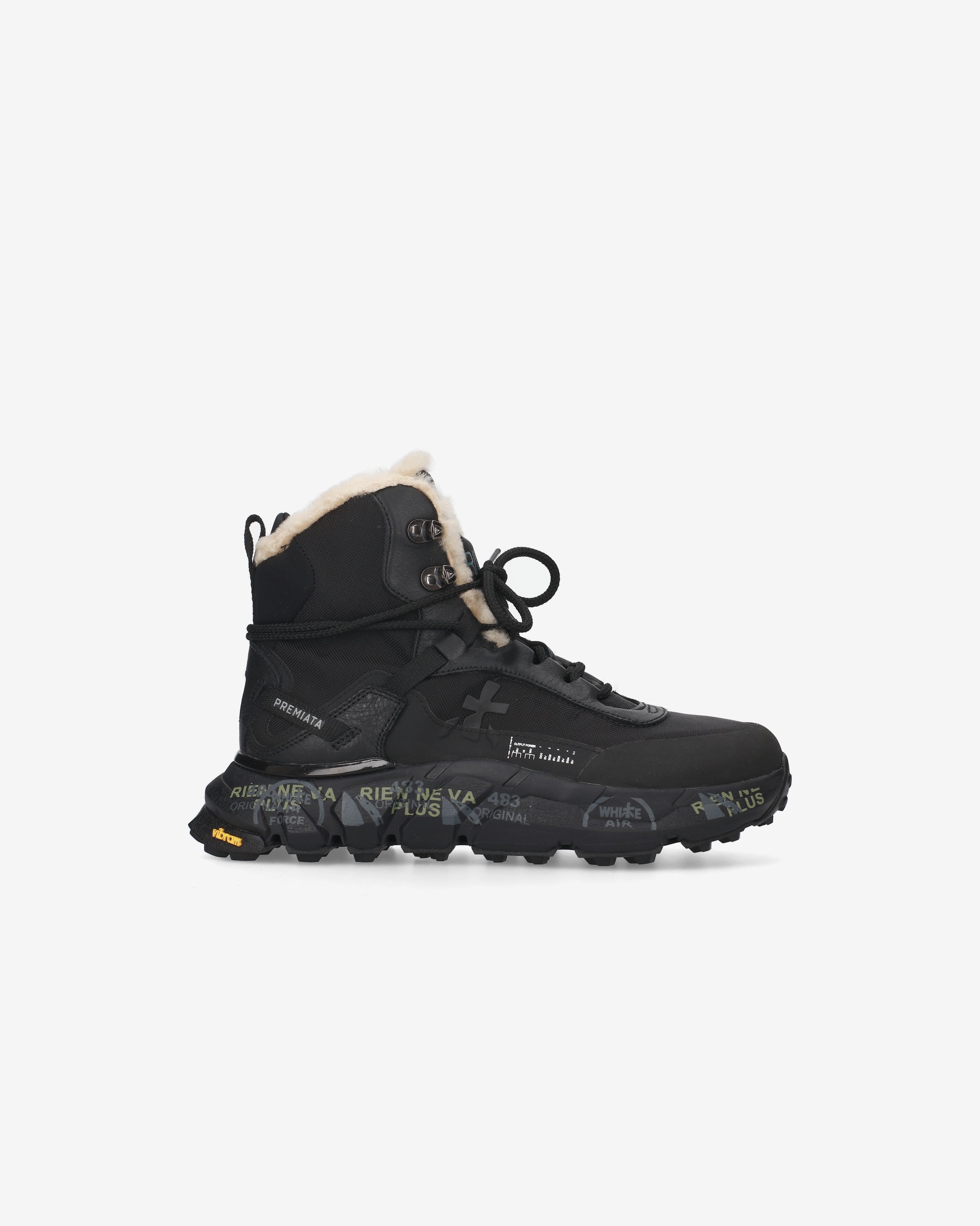 Rugged and comfortable Premiata hiking shoe design with sole suitable for uneven terrain. Lined with sheepskin, not waterproof. Ideal for daily use and dry trails.