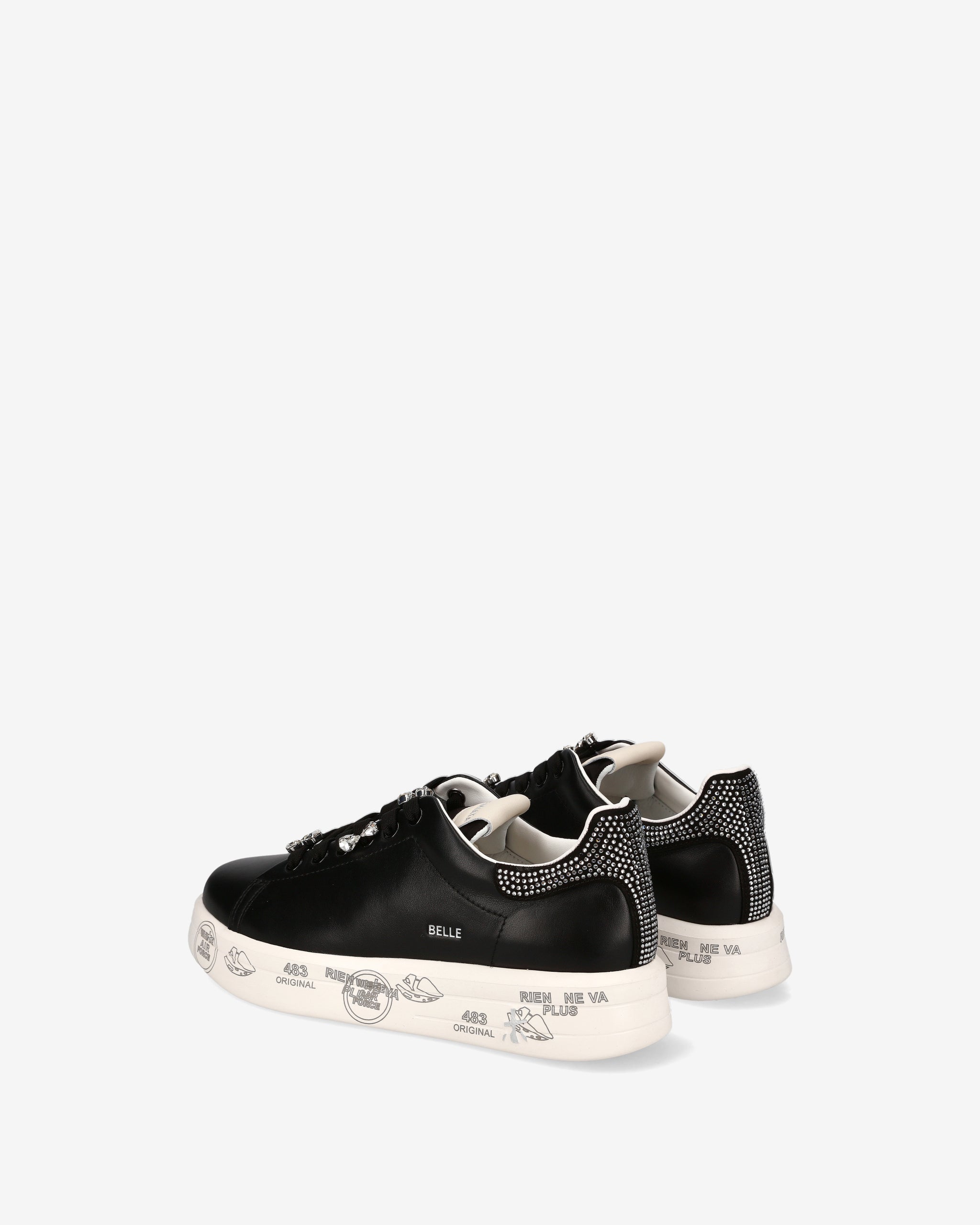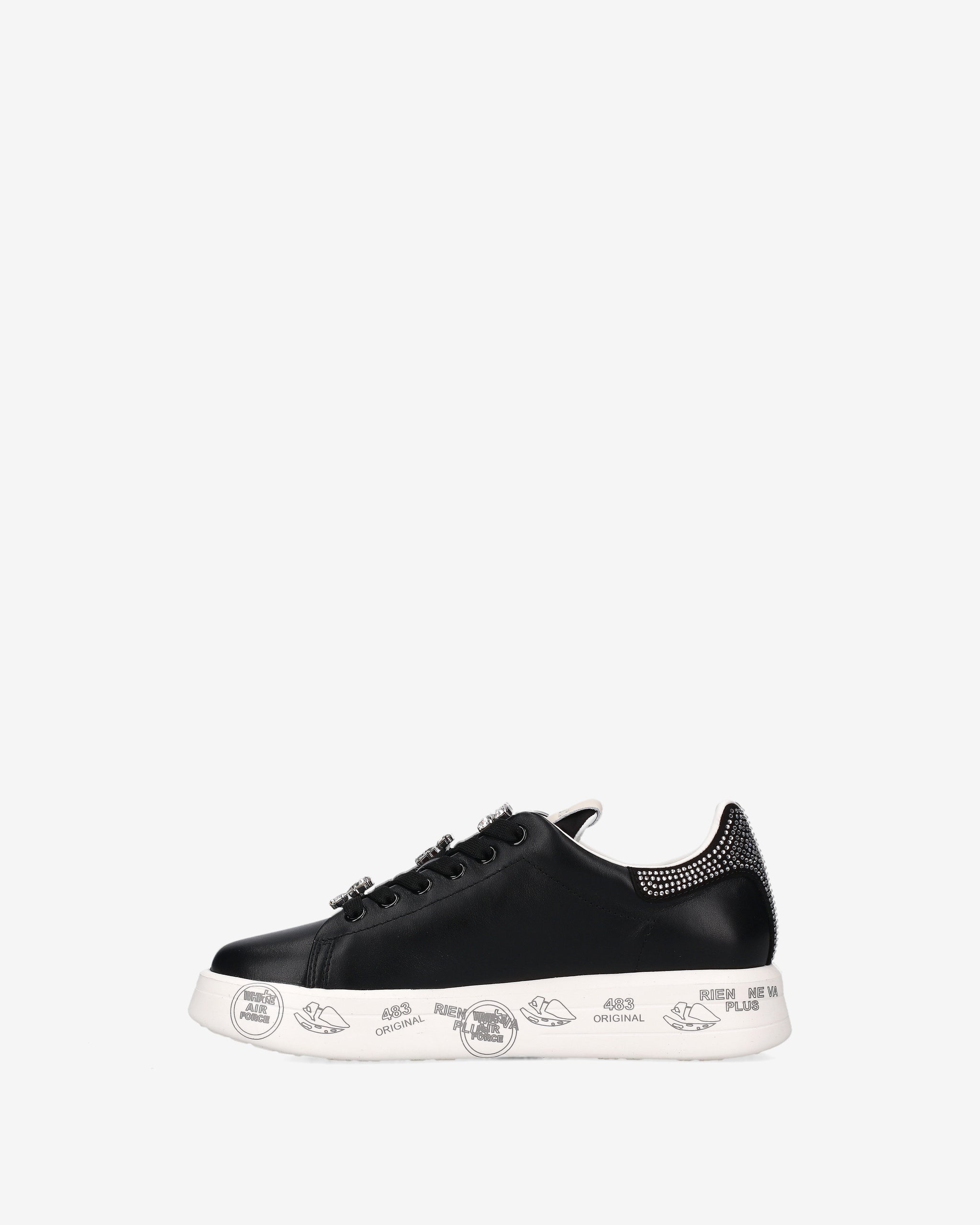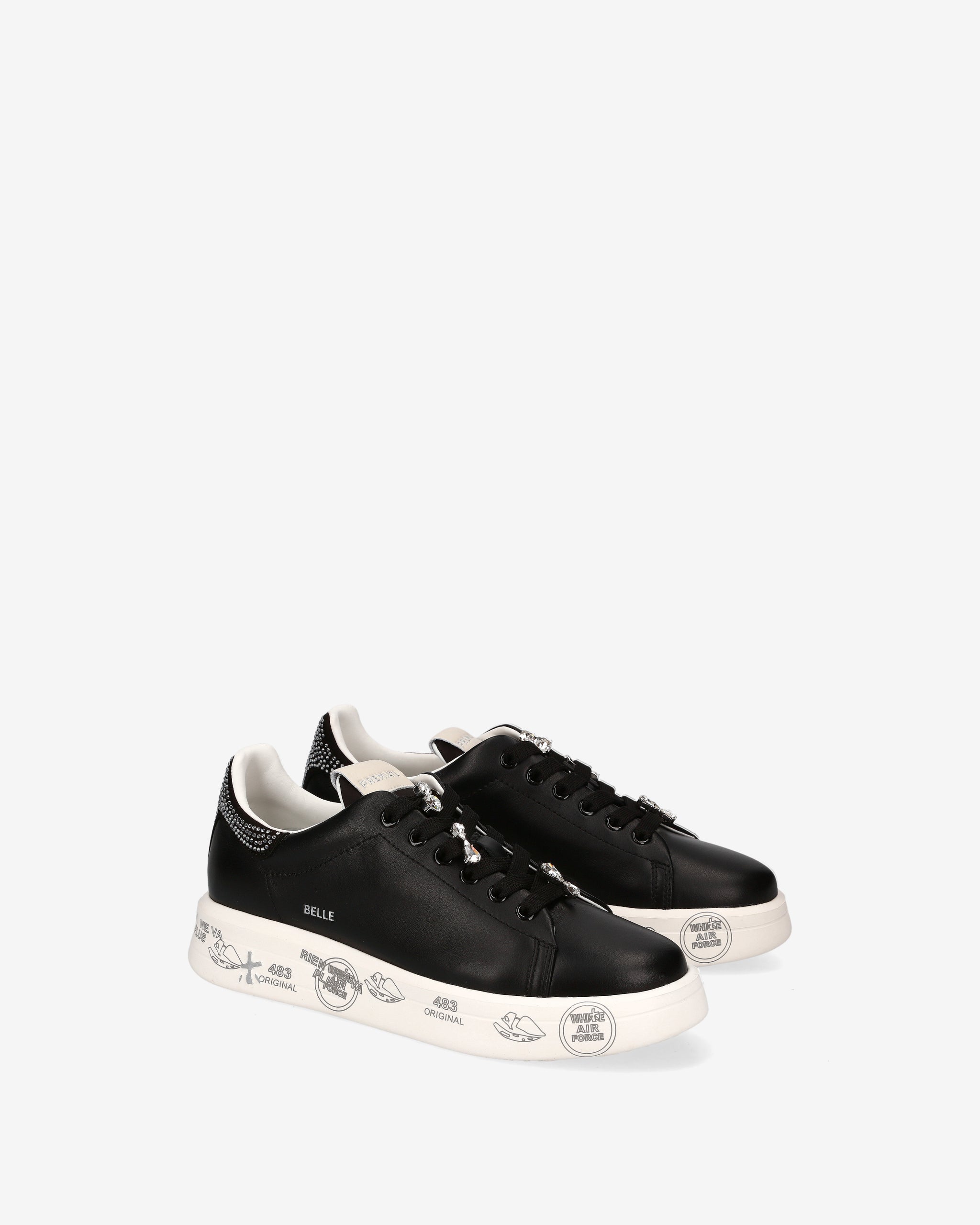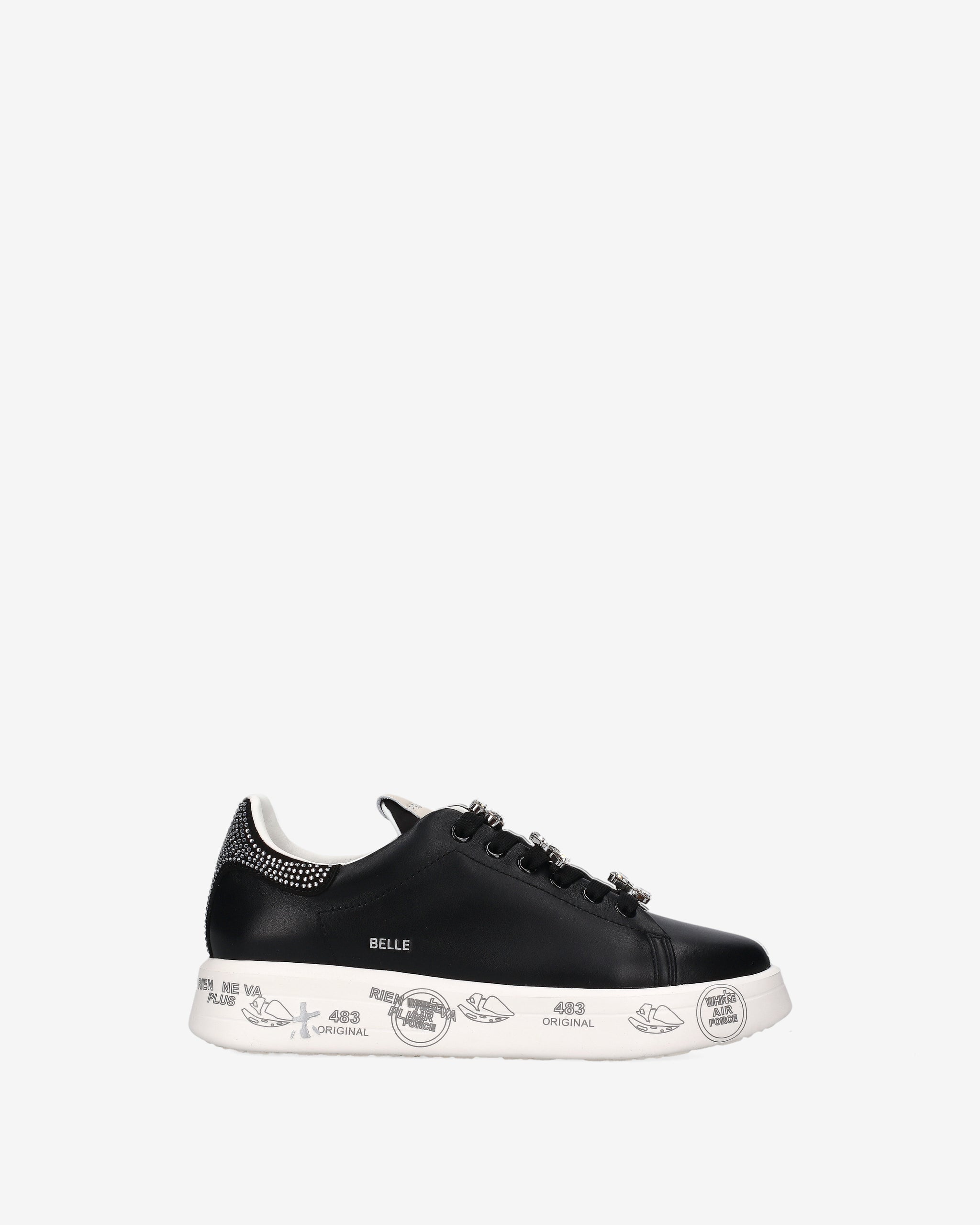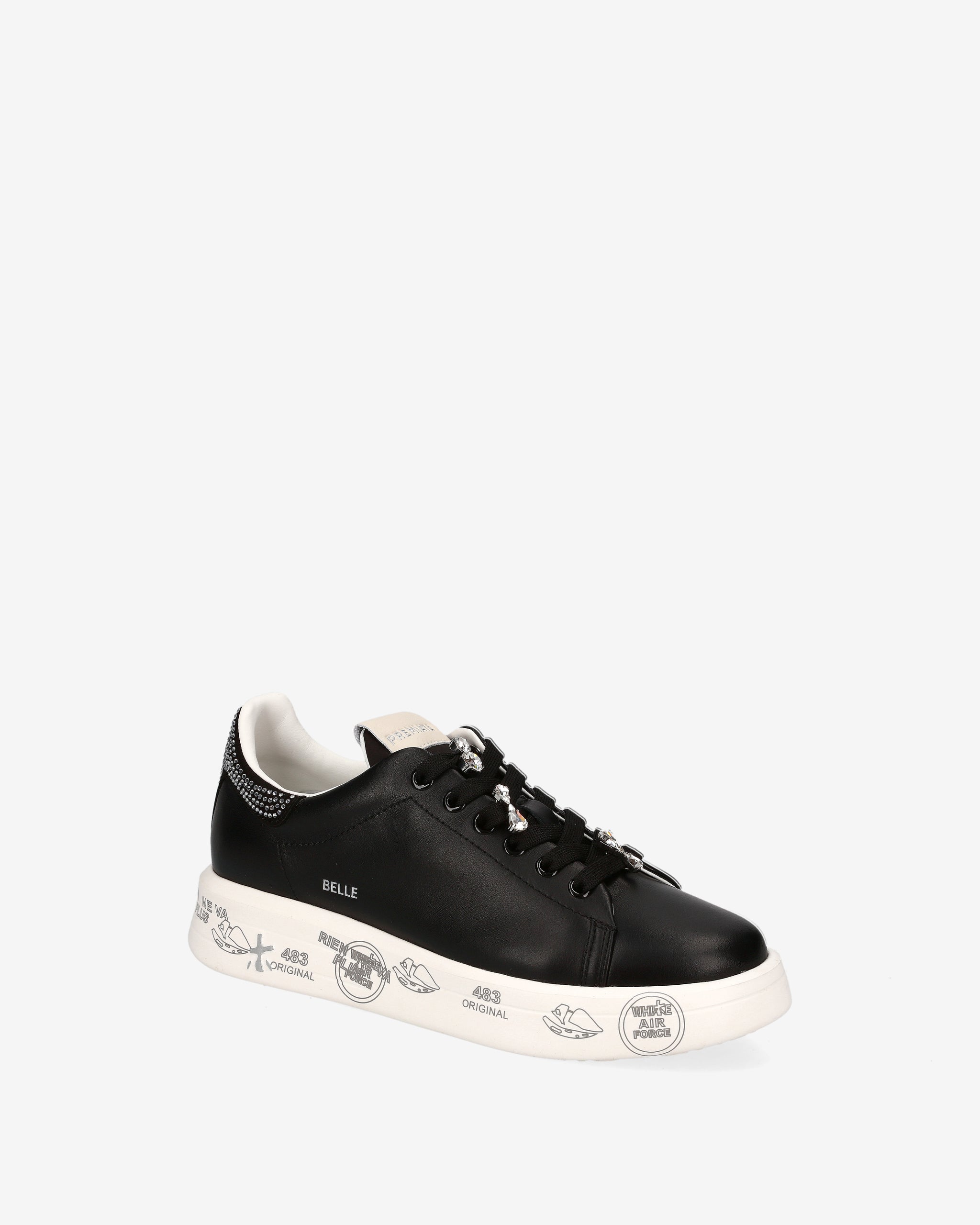 Made from soft leather with glitter detailing. These sneakers combine clean lines with a playful touch. The distinctive graphic sole evokes the Premiata universe, offering comfort and personality.