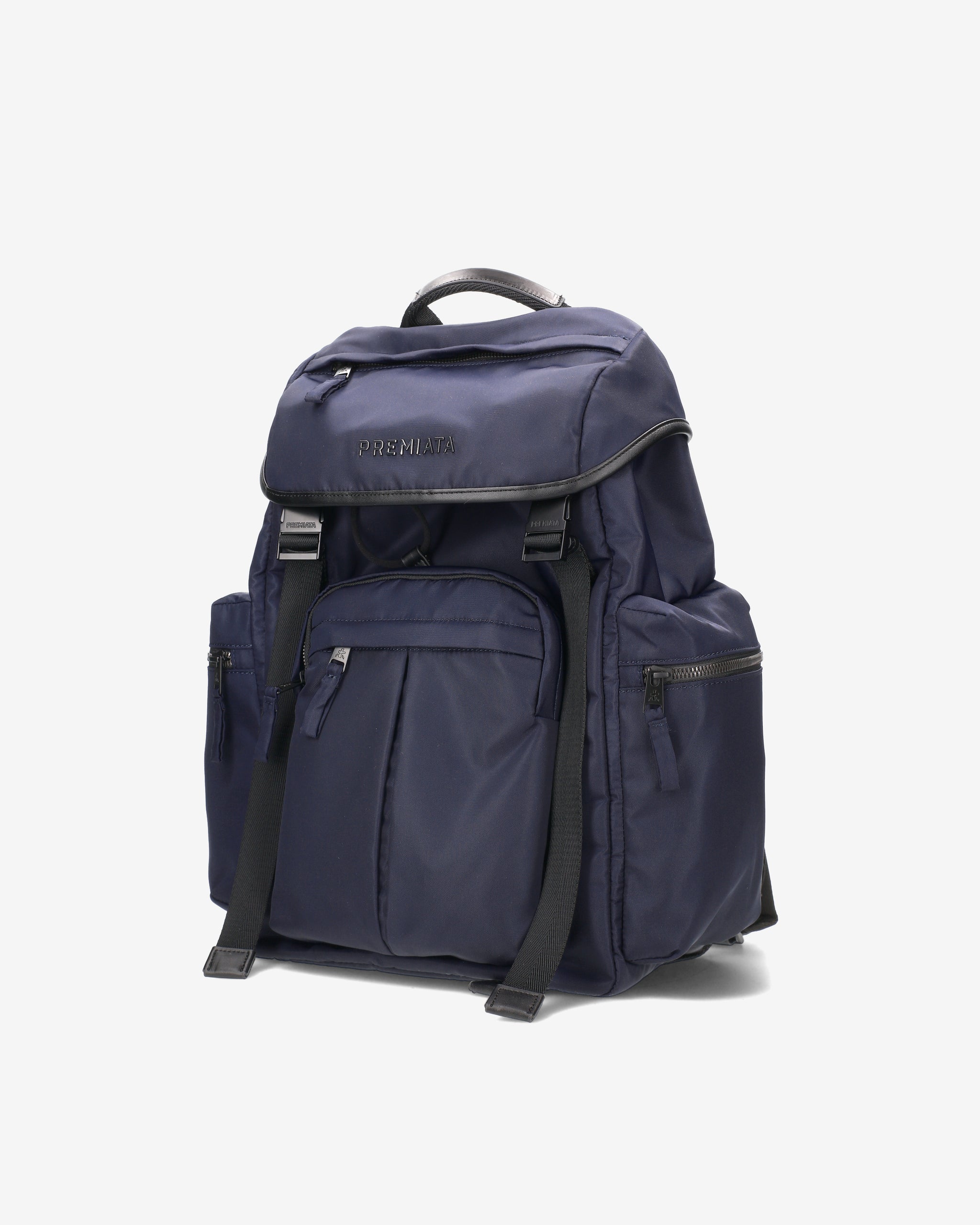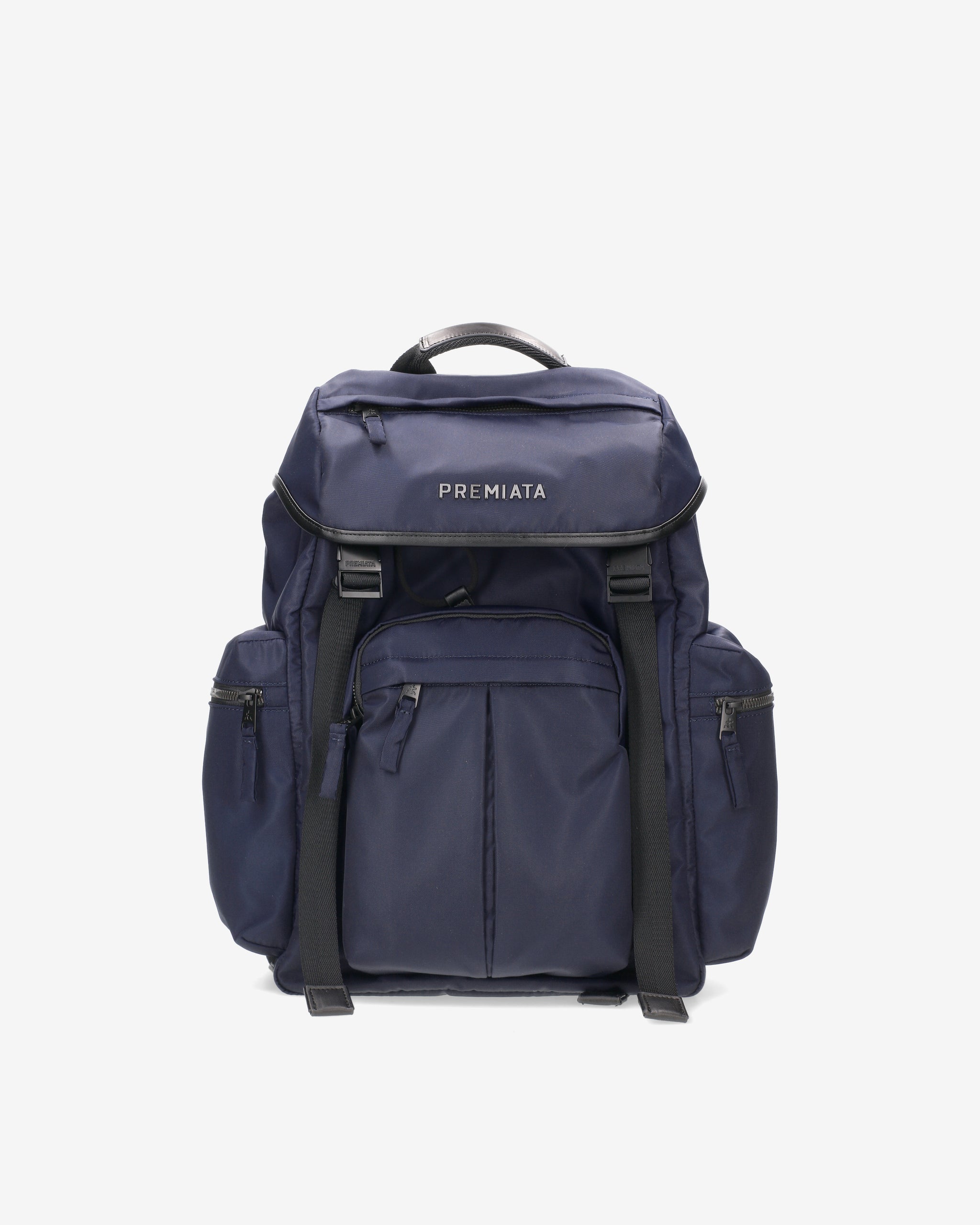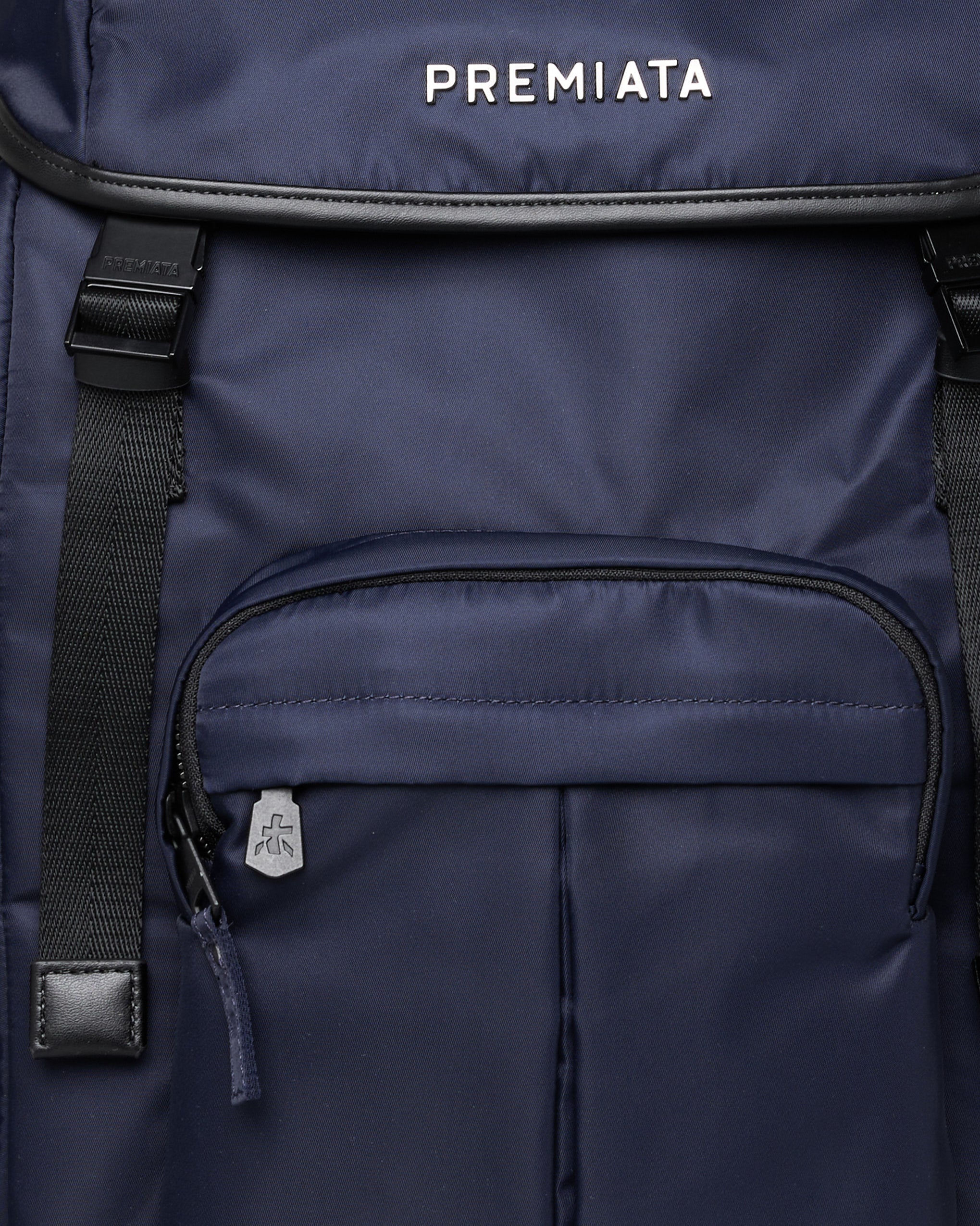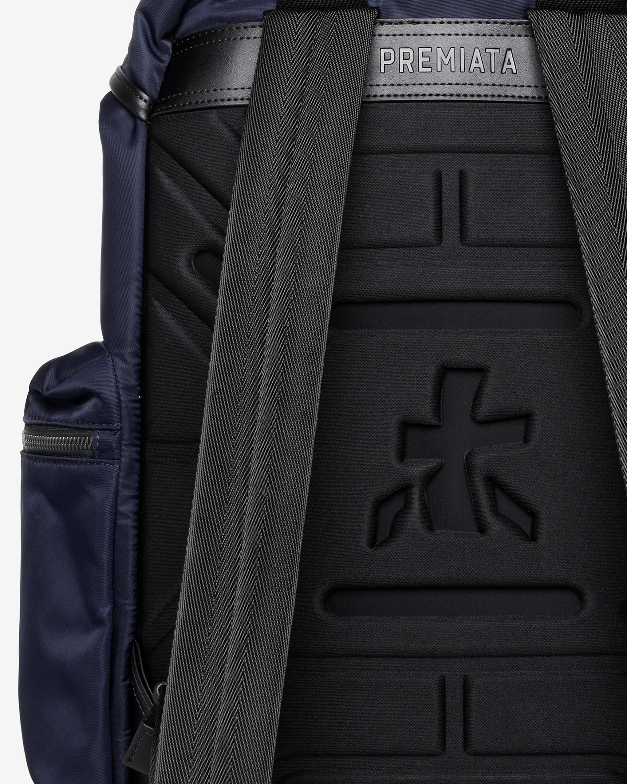 A spacious and versatile backpack made of premium nylon gabardine with anti-fraying and water-repellent treatment. EVA-padded back panel and shoulder straps for enhanced comfort. Waterproof side pockets with calfskin trim and matte metal fasteners.