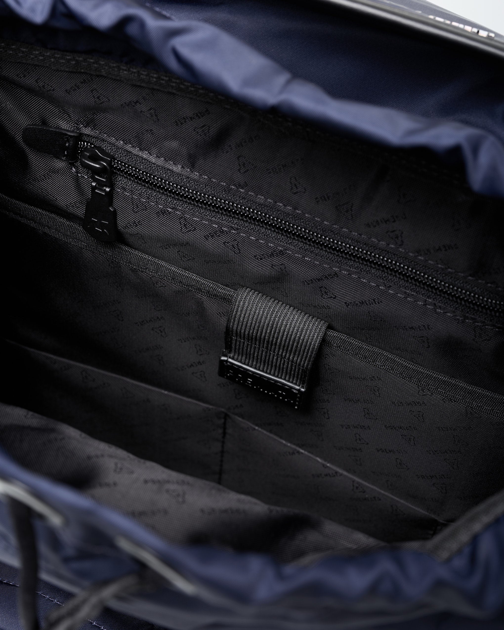 - Hidden pocket with waterproof zipper and rubber pull tab featuring the logo