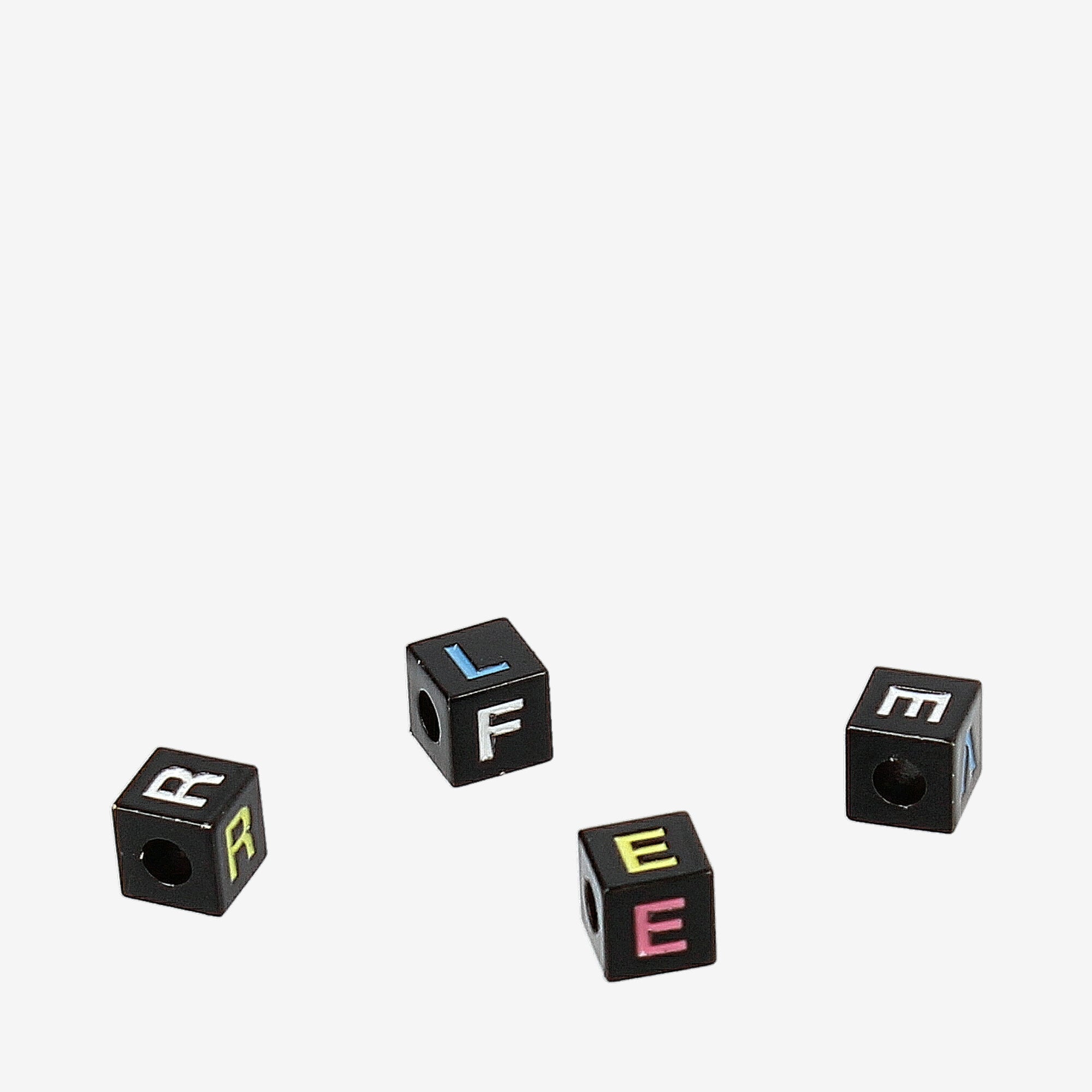 Cubi color nero in materiale zama, realizzati artigianalmente ed interamente dipinti a mano. Un'accessorio perfetto per arrichire a pieno lo stile PREMIATA. Le lettere compongono tre parole TRUE, LOVE e FREE.