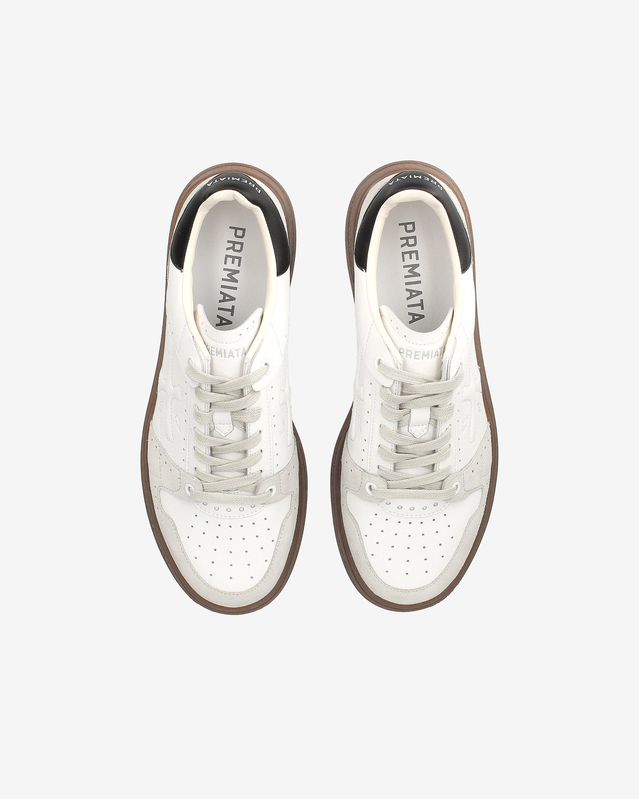Created to reinterpret the Sport world in a couture key, rich in details such as, for example, the numerous holes that characterize its design. Holes that are inspired by the "Brogue" workings of the classic world in which Premiata has its roots.