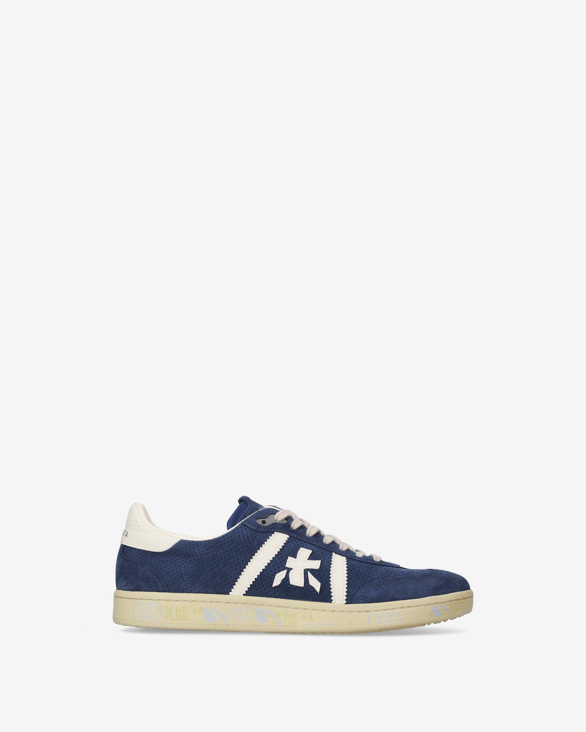 Bonnie con tomaia in suede blu, dettagli bianchi a contrasto e suola off white. Un mix di colori classici per un’estetica pulita e sofisticata.