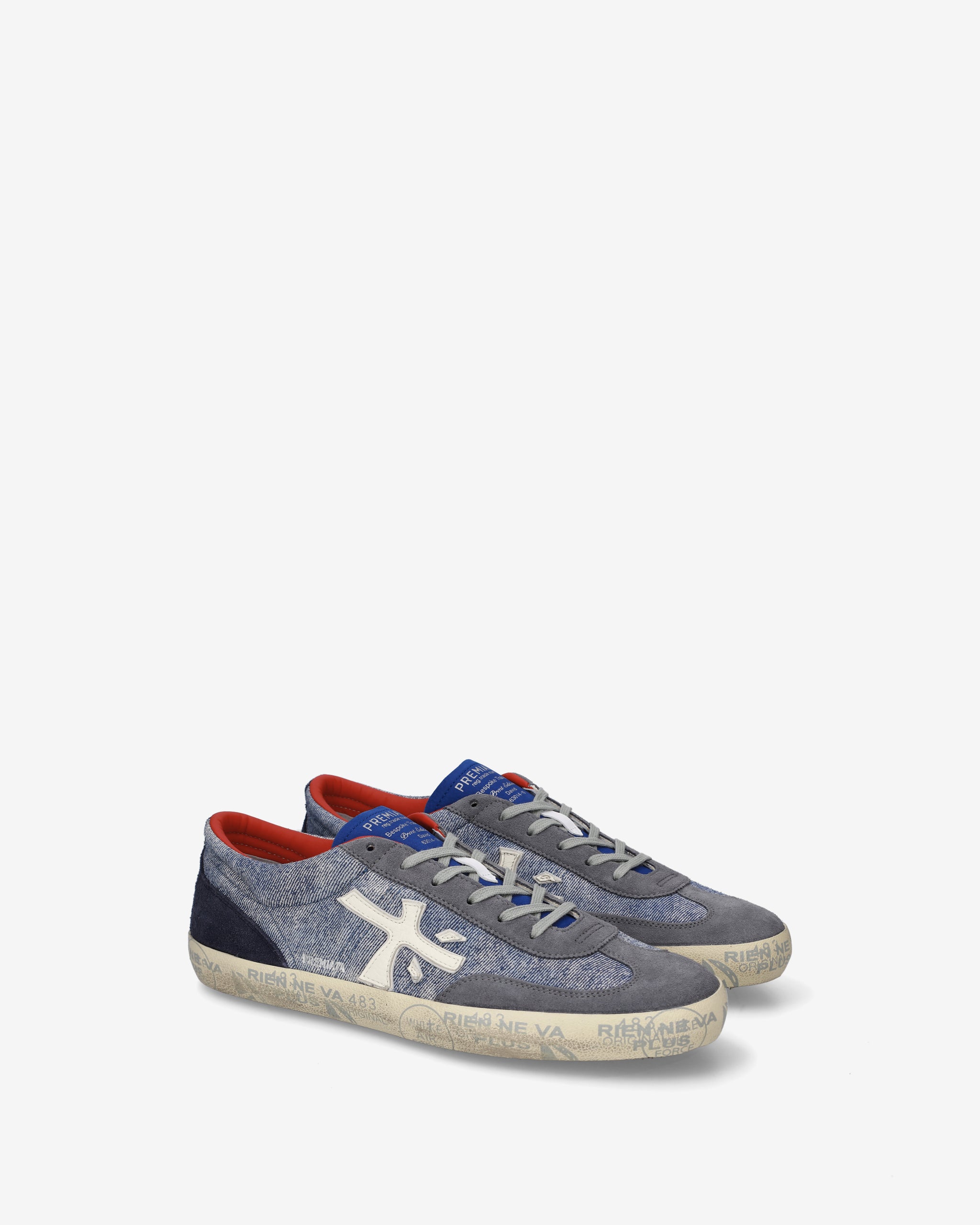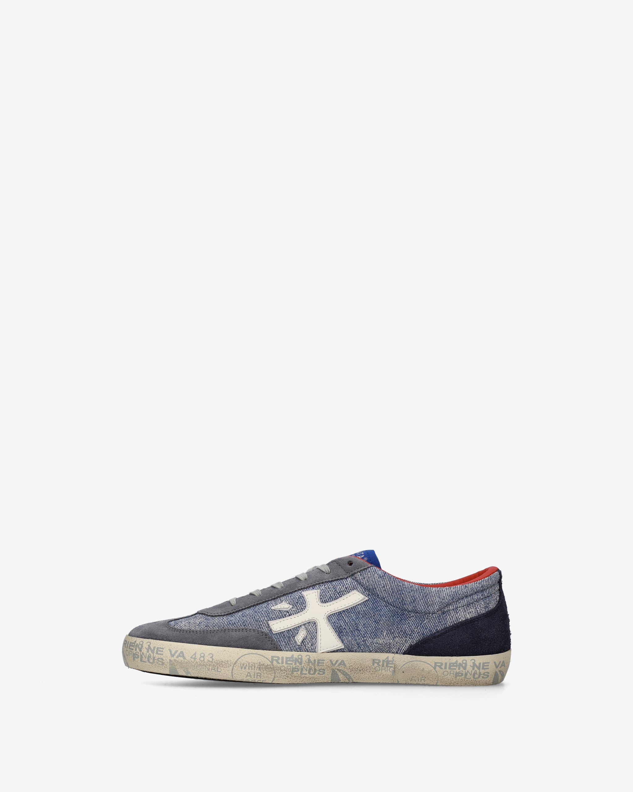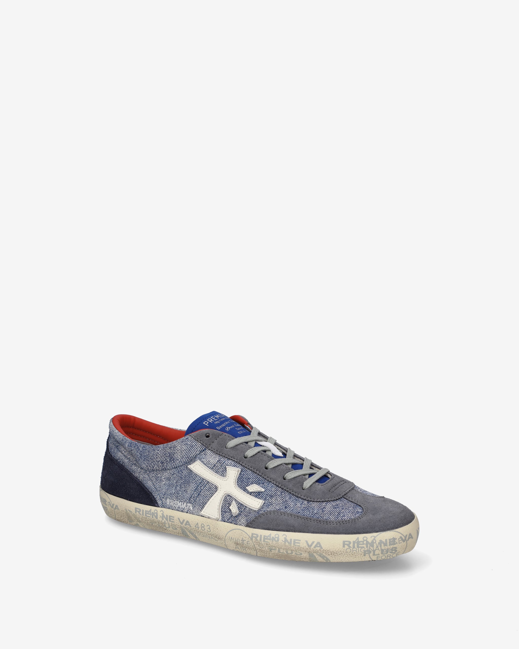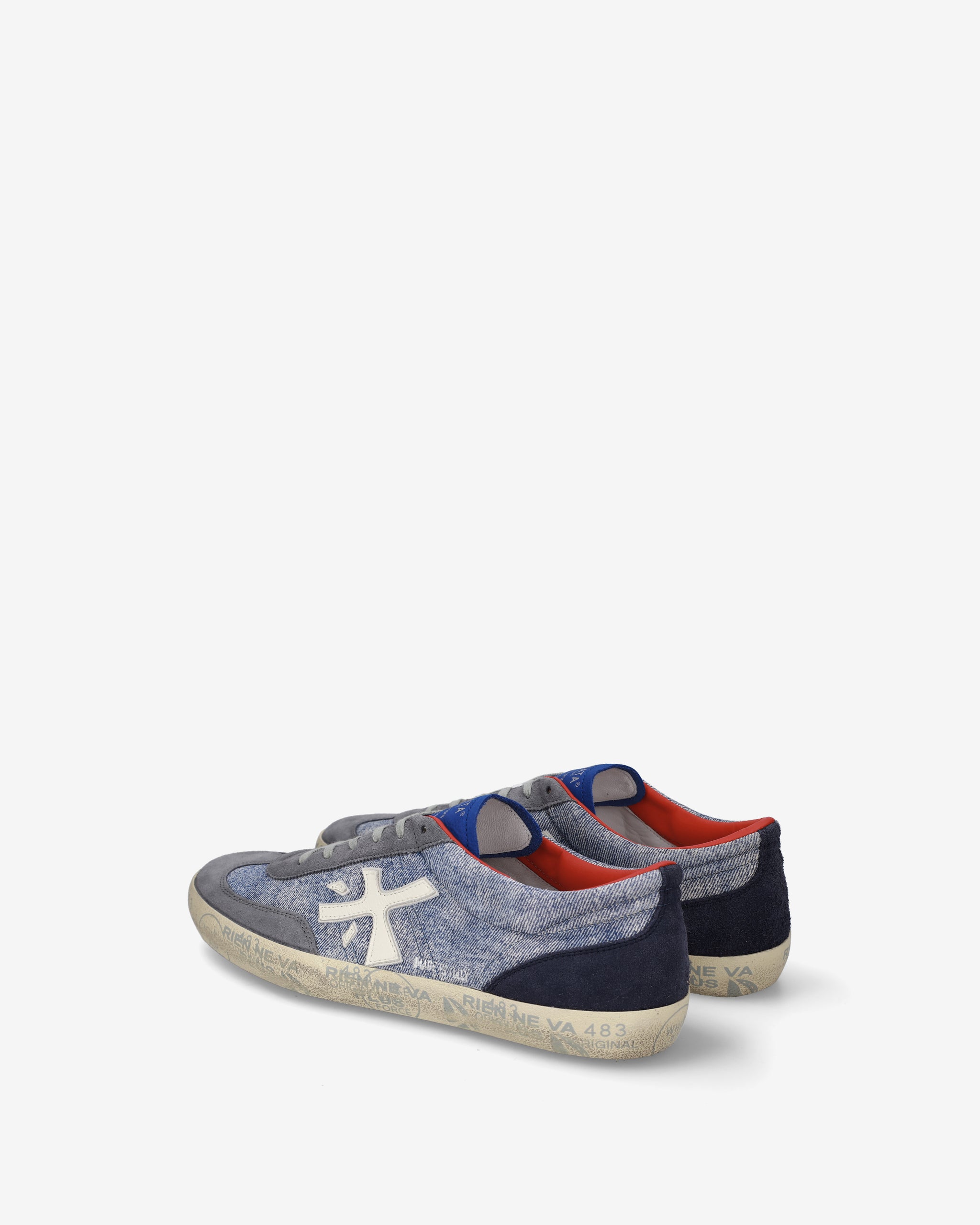 Una sneaker dal carattere deciso, che mescola richiami retro e dettagli street. La tomaia denim con inserti grigi dona contrasto e personalità, mentre la suola logata aggiunge un segno grafico distintivo. Ideale per chi cerca uno stile urbano con un tocco originale.