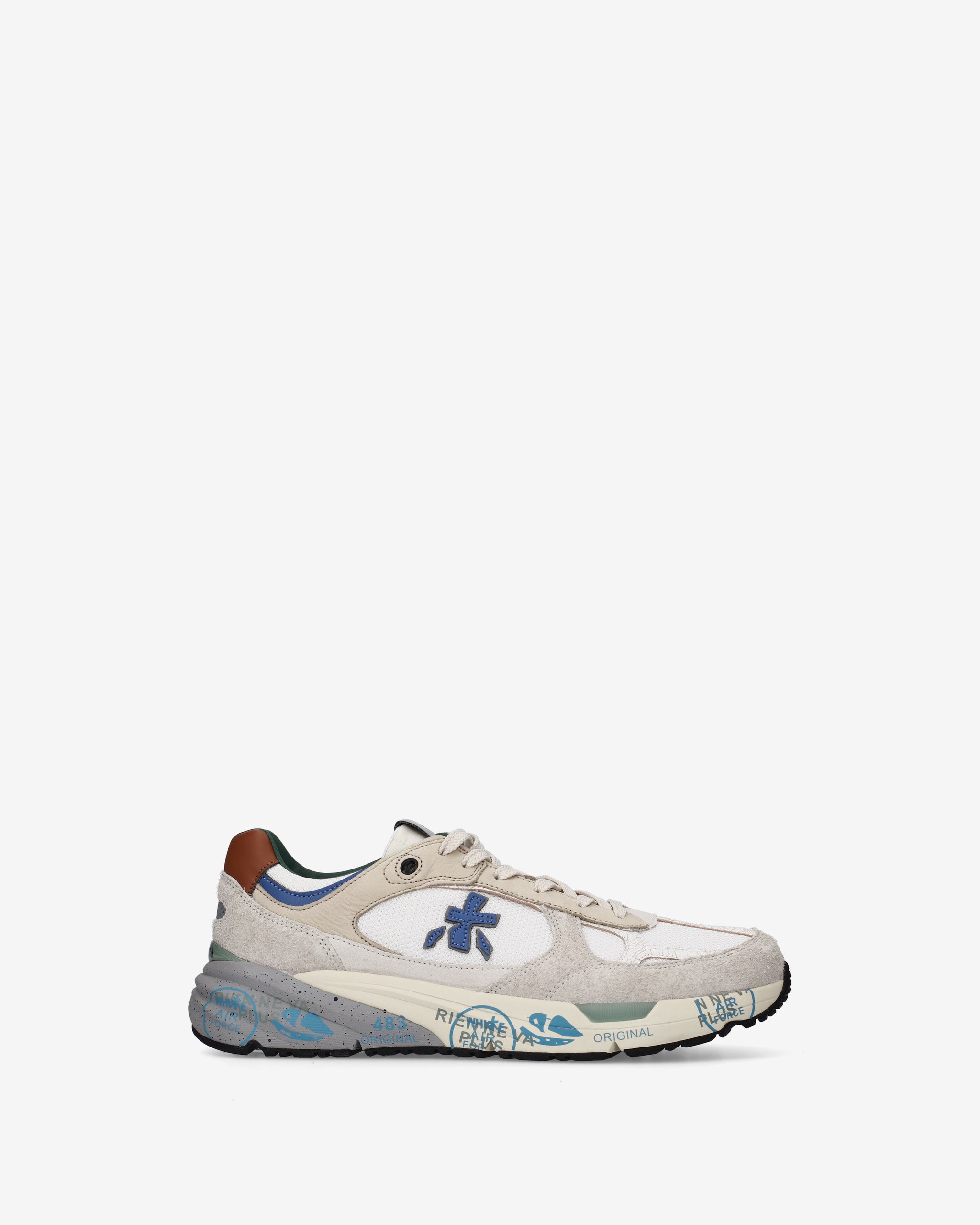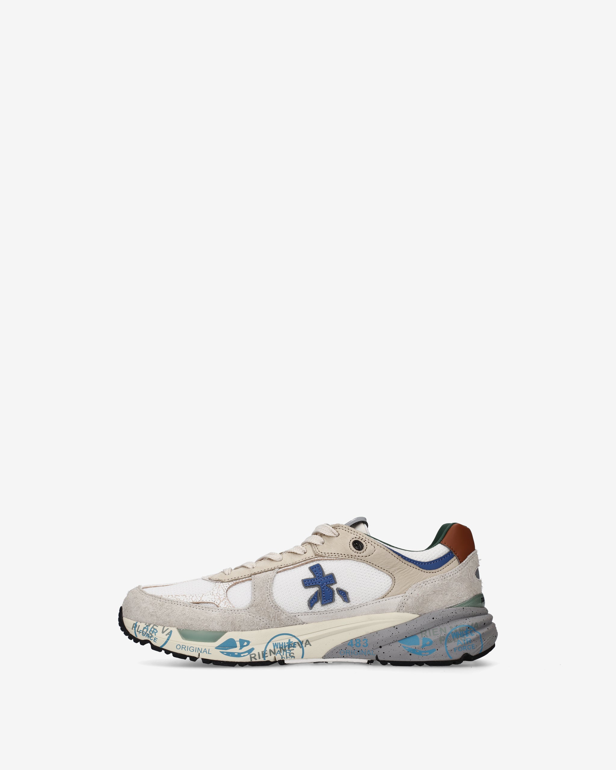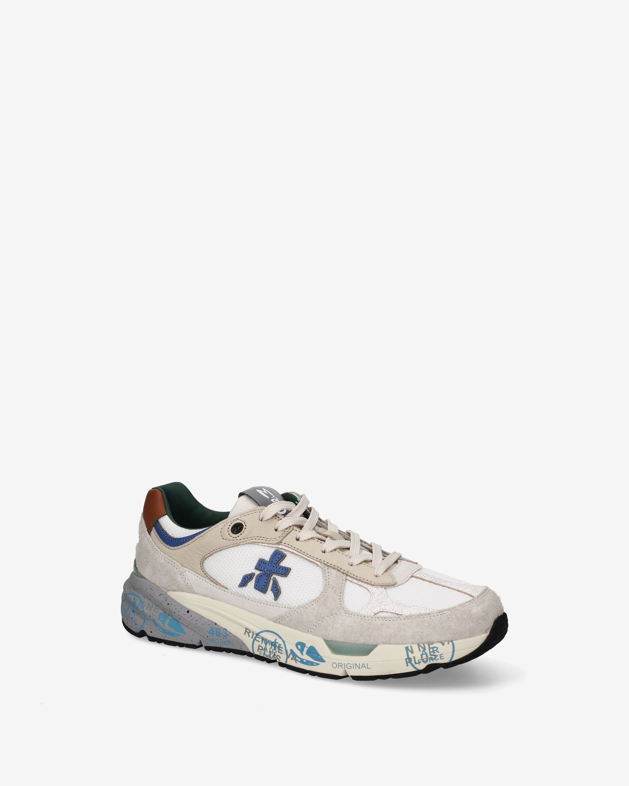 Risentono del mood nineties, combinano una silhouette moderna con materiali pregiati e dettagli vivaci. Fedeli al design Premiata, ne conservano tutti gli elementi chiave: il logo che decora i laterali, la scritta MASE che si evince sull’etichetta, trattamenti e dettagli a contrasto che ne risaltano la visibilità.