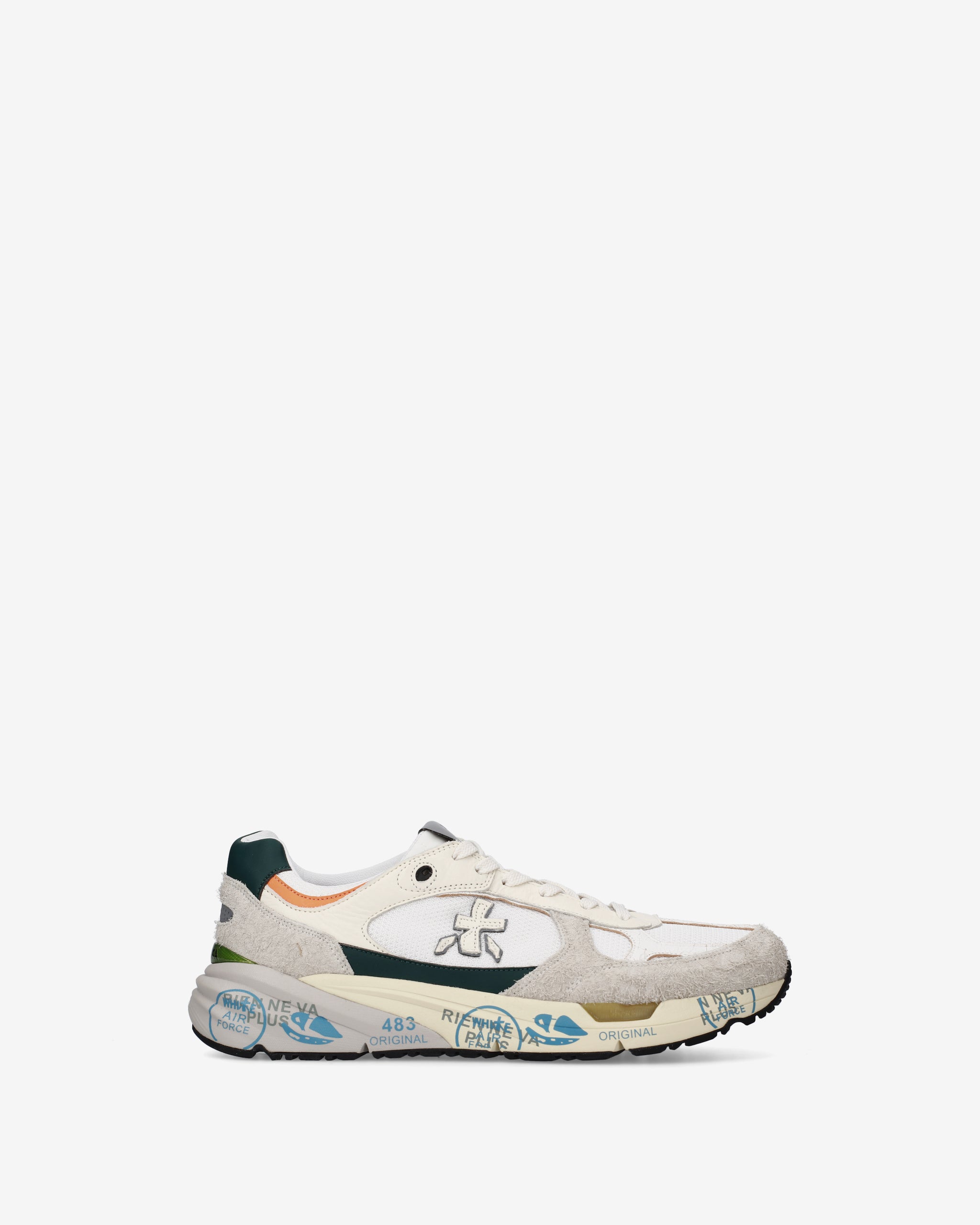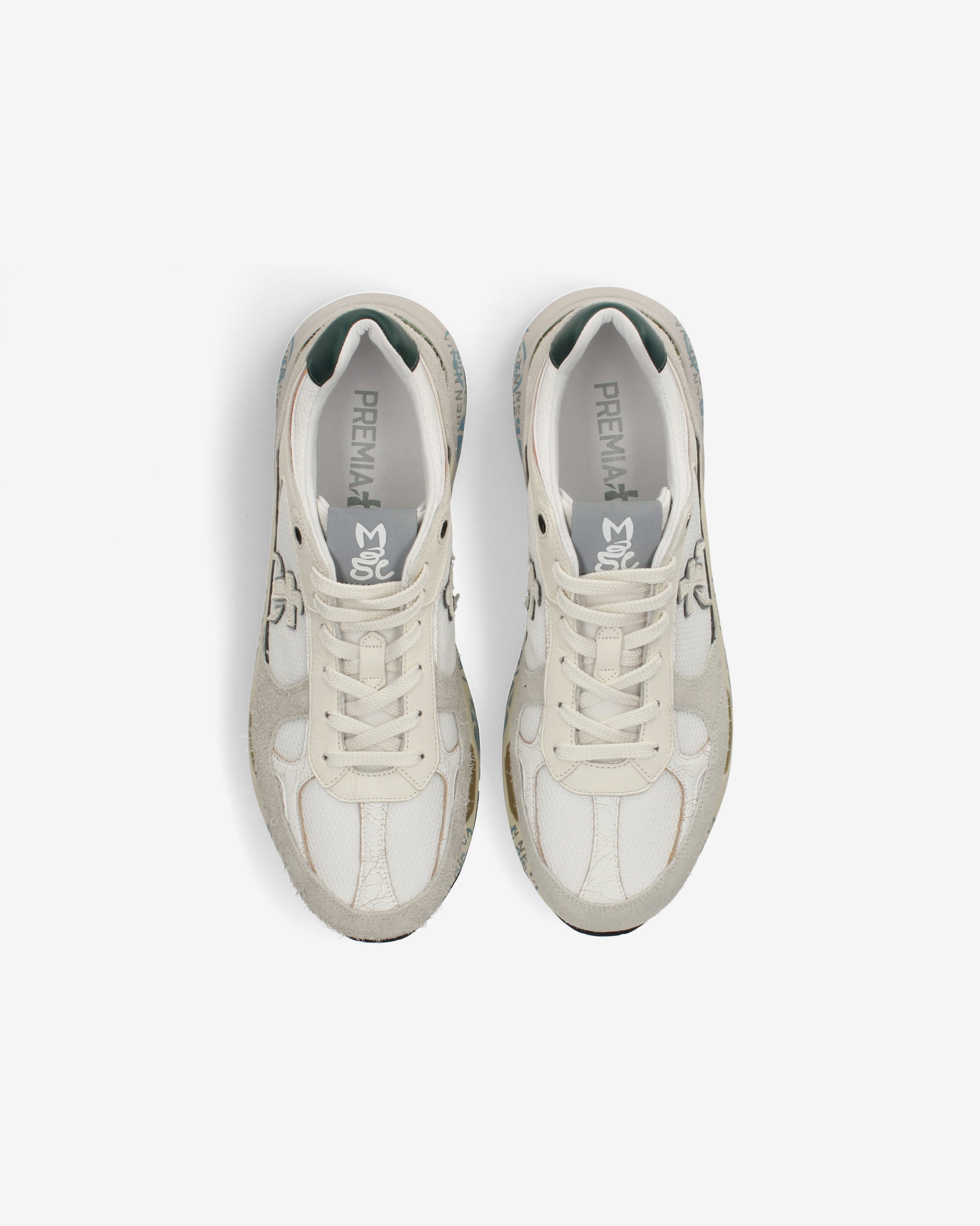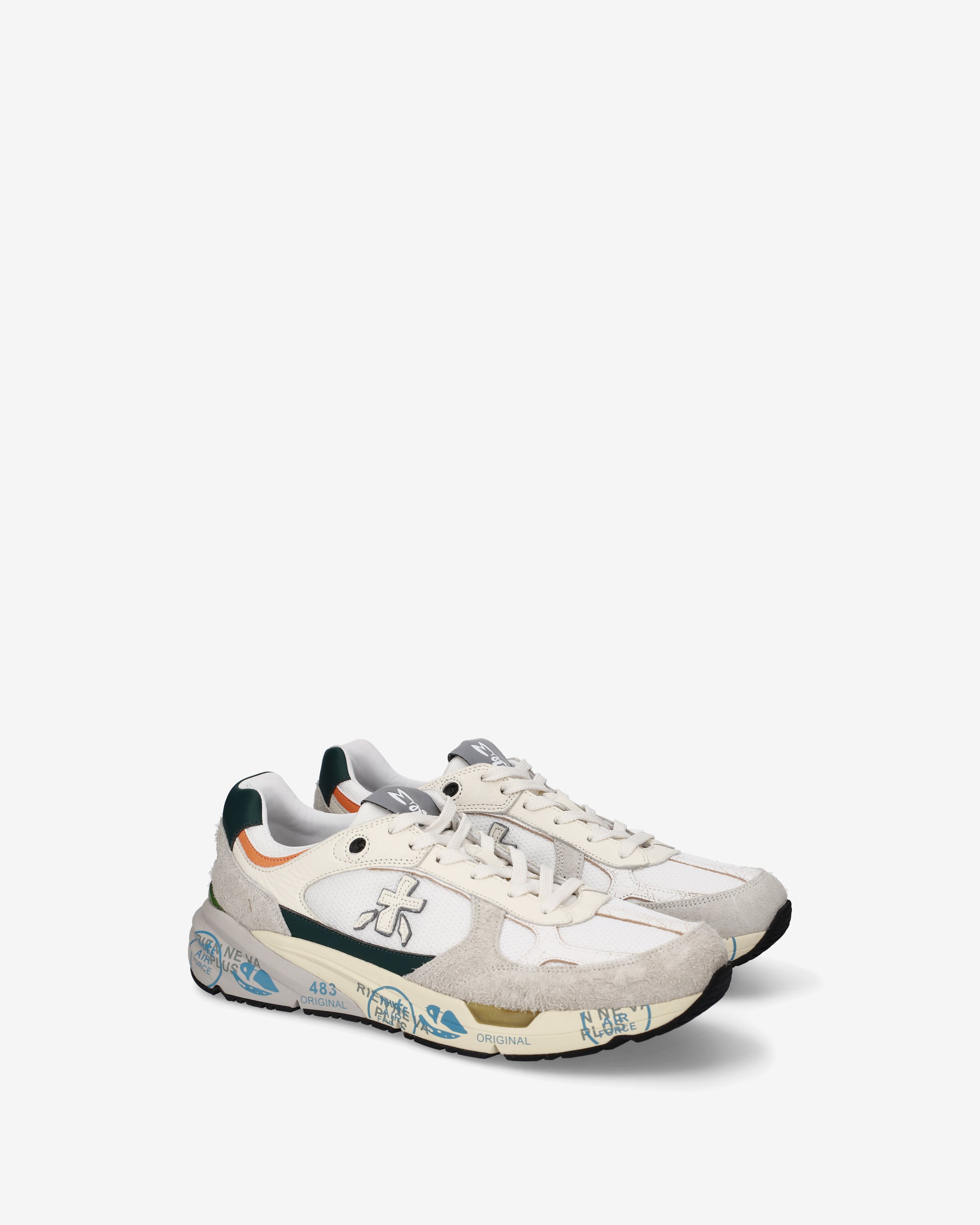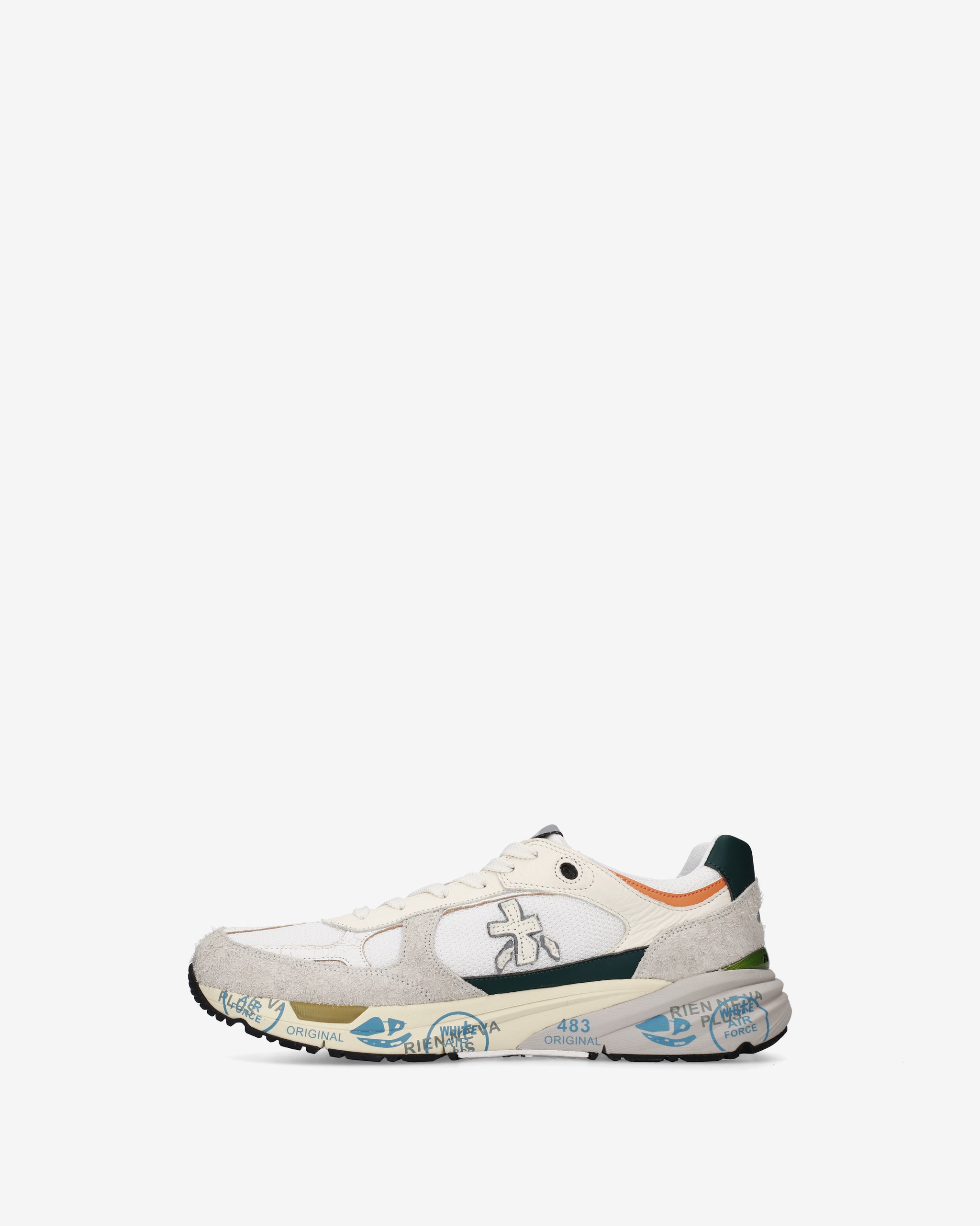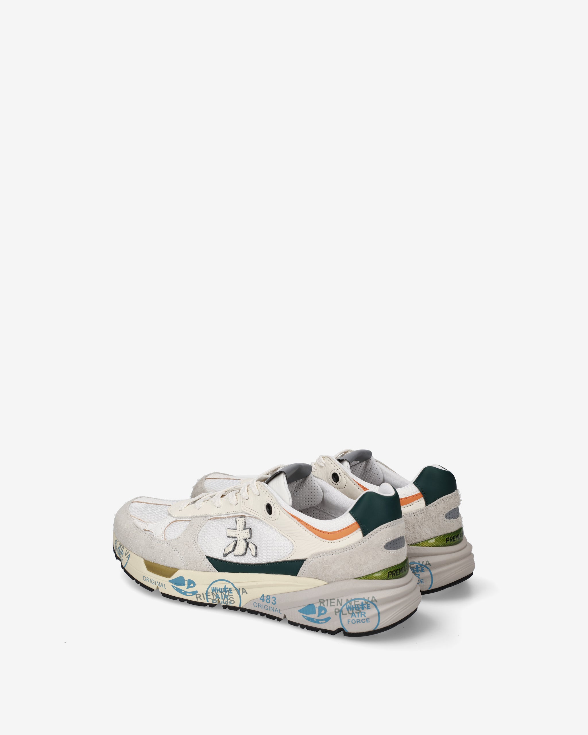 Risentono del mood nineties, combinano una silhouette moderna con materiali pregiati e dettagli vivaci. Fedeli al design Premiata, ne conservano tutti gli elementi chiave: il logo che decora i laterali, la scritta MASE che si evince sull’etichetta, trattamenti e dettagli a contrasto che ne risaltano la visibilità.