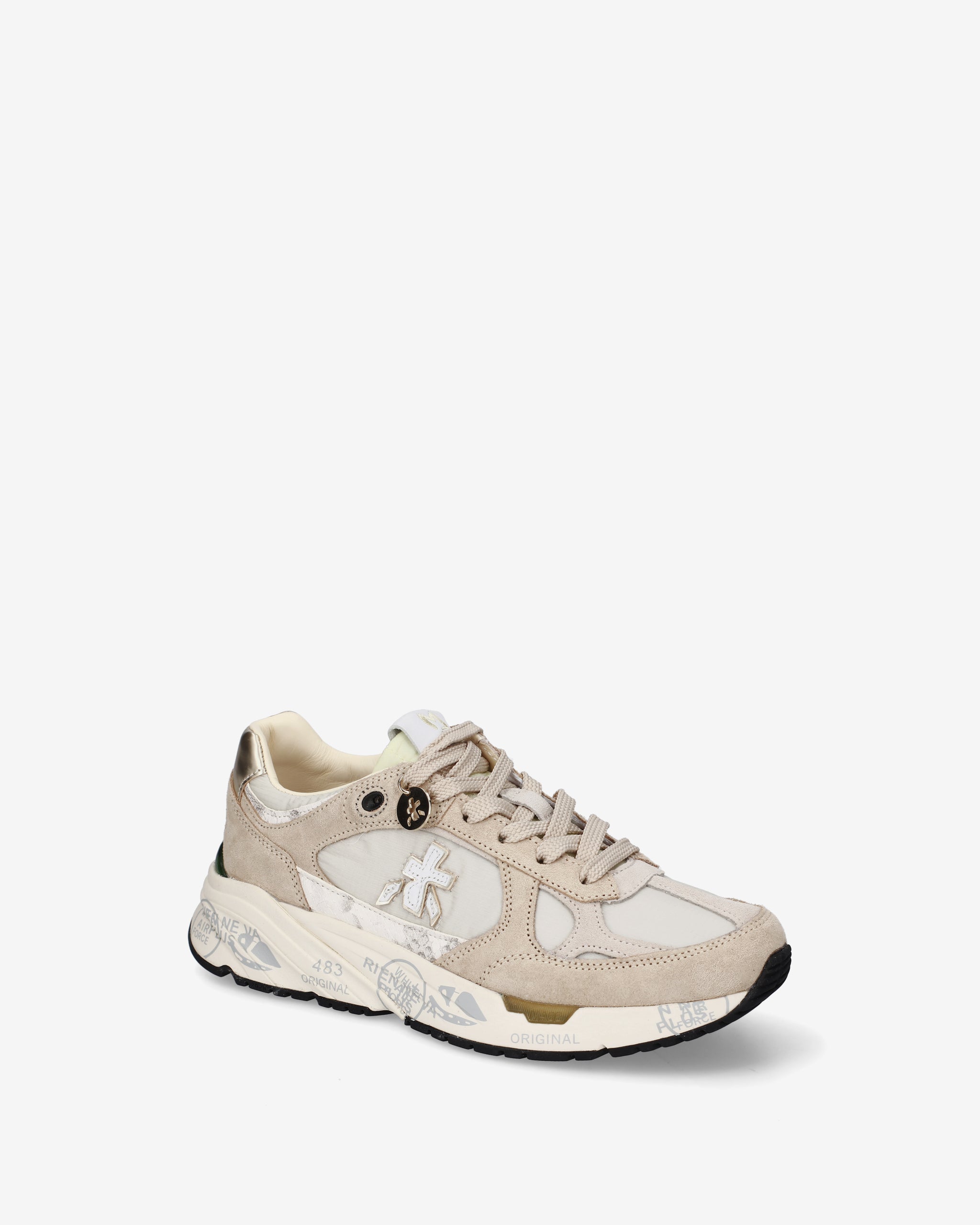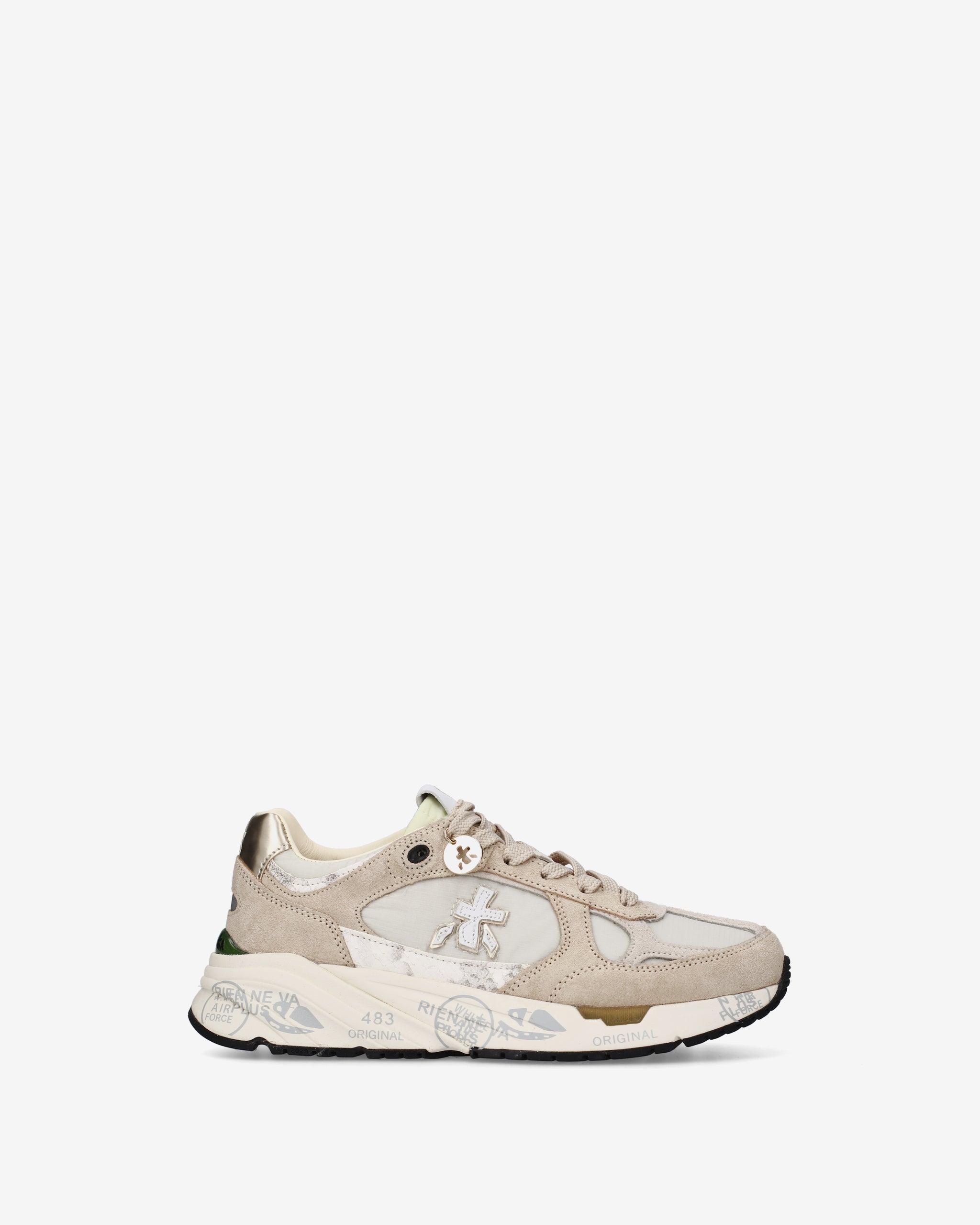Risentono del mood nineties, combinano una silhouette moderna con materiali pregiati e dettagli vivaci. Fedeli al design Premiata, ne conservano tutti gli elementi chiave: il logo che decora i laterali, la scritta MASE che si evince sull’etichetta, trattamenti e dettagli a contrasto che ne risaltano la visibilità.