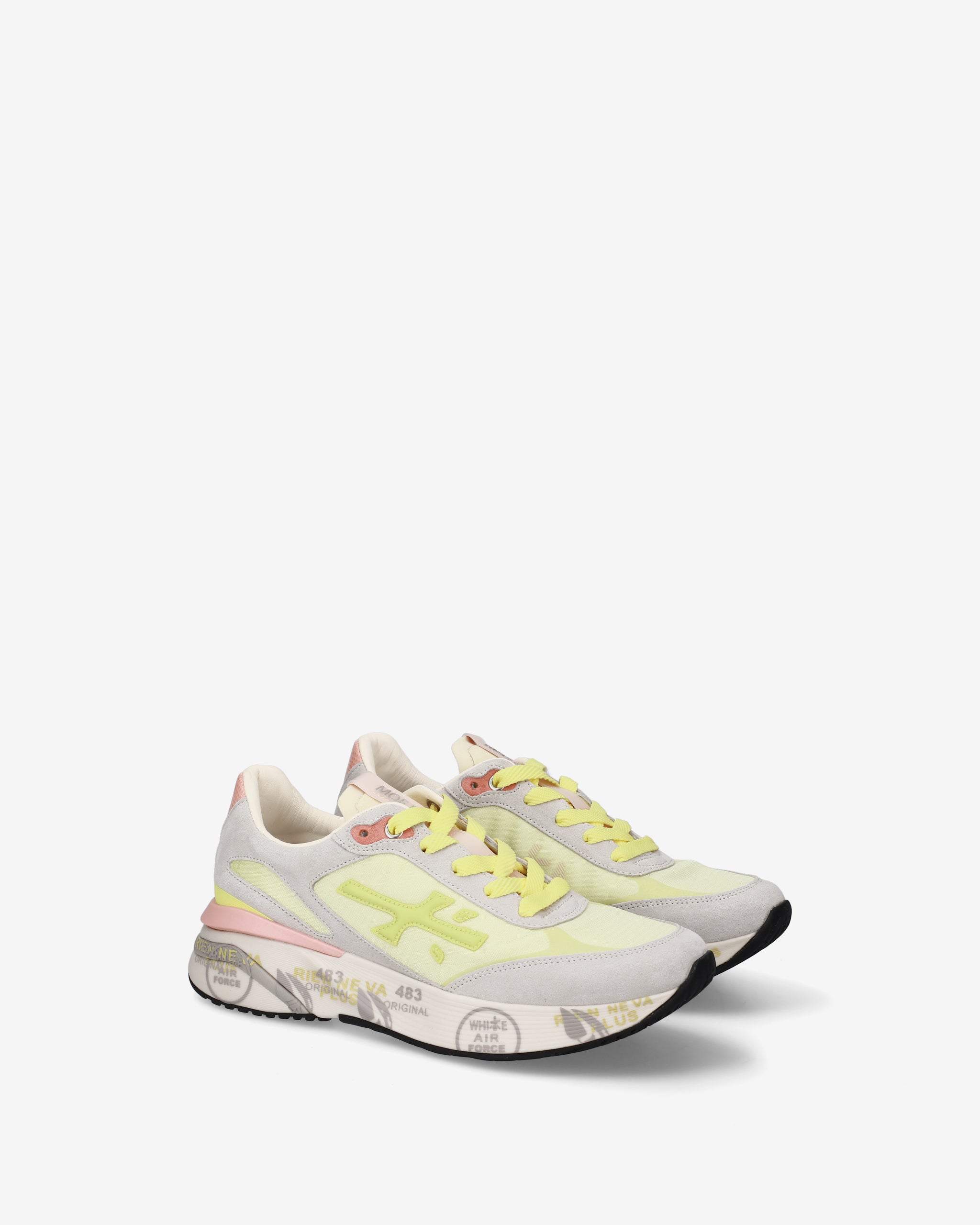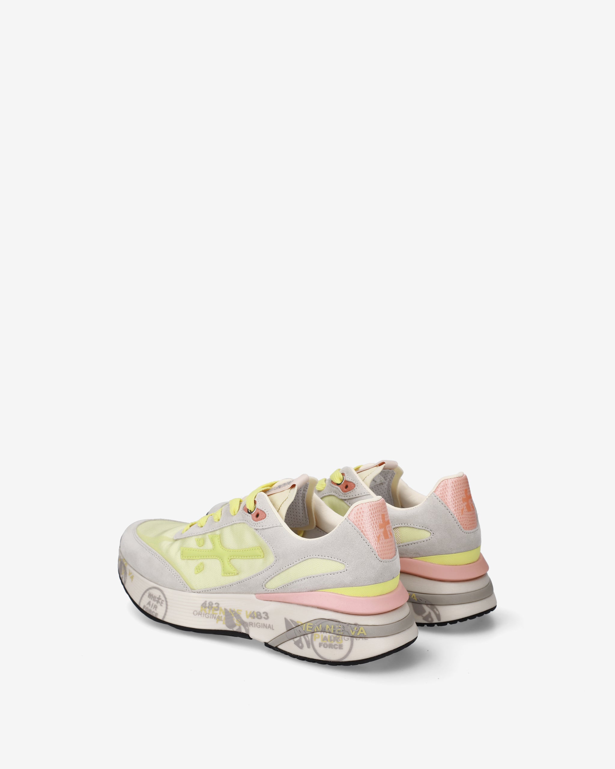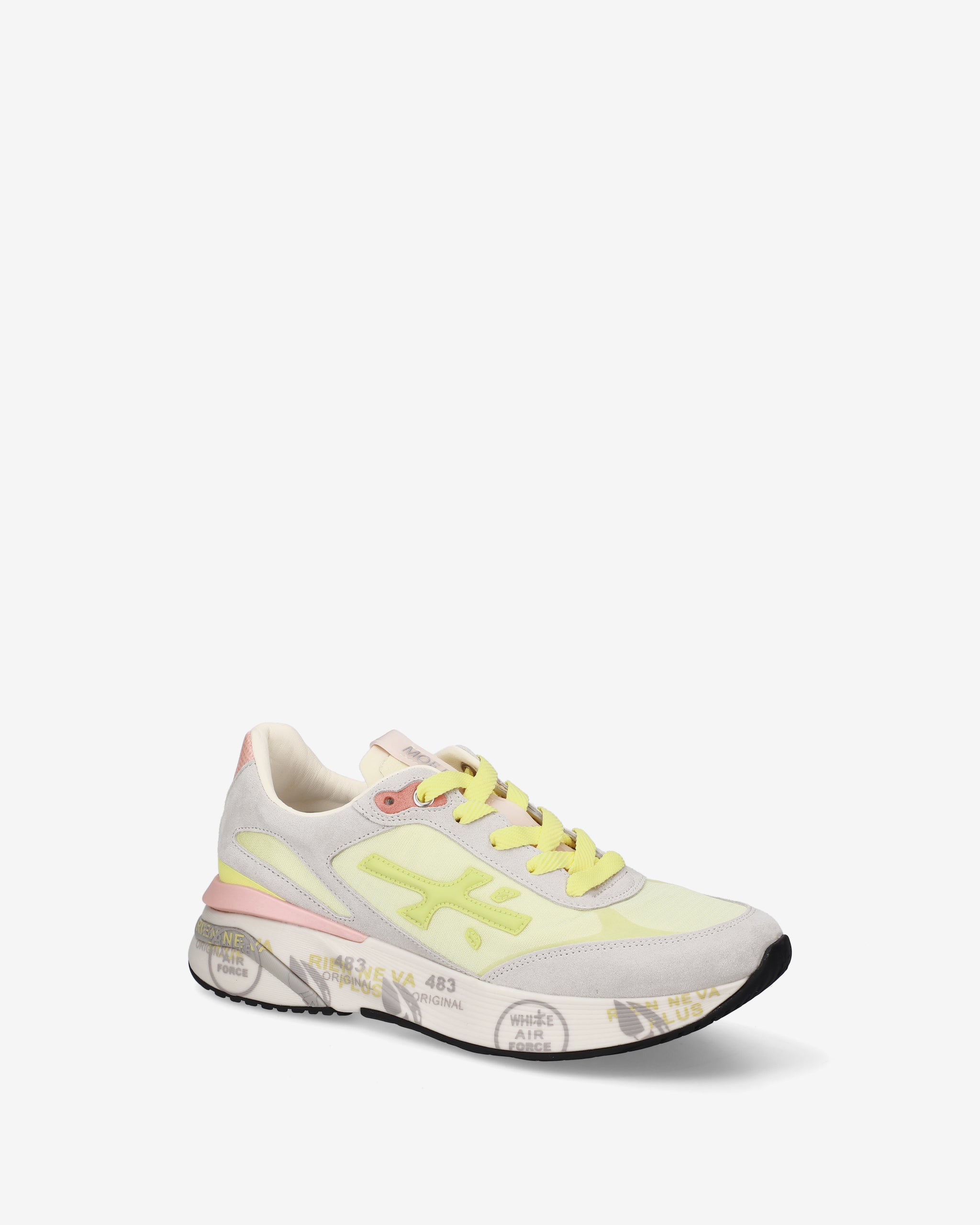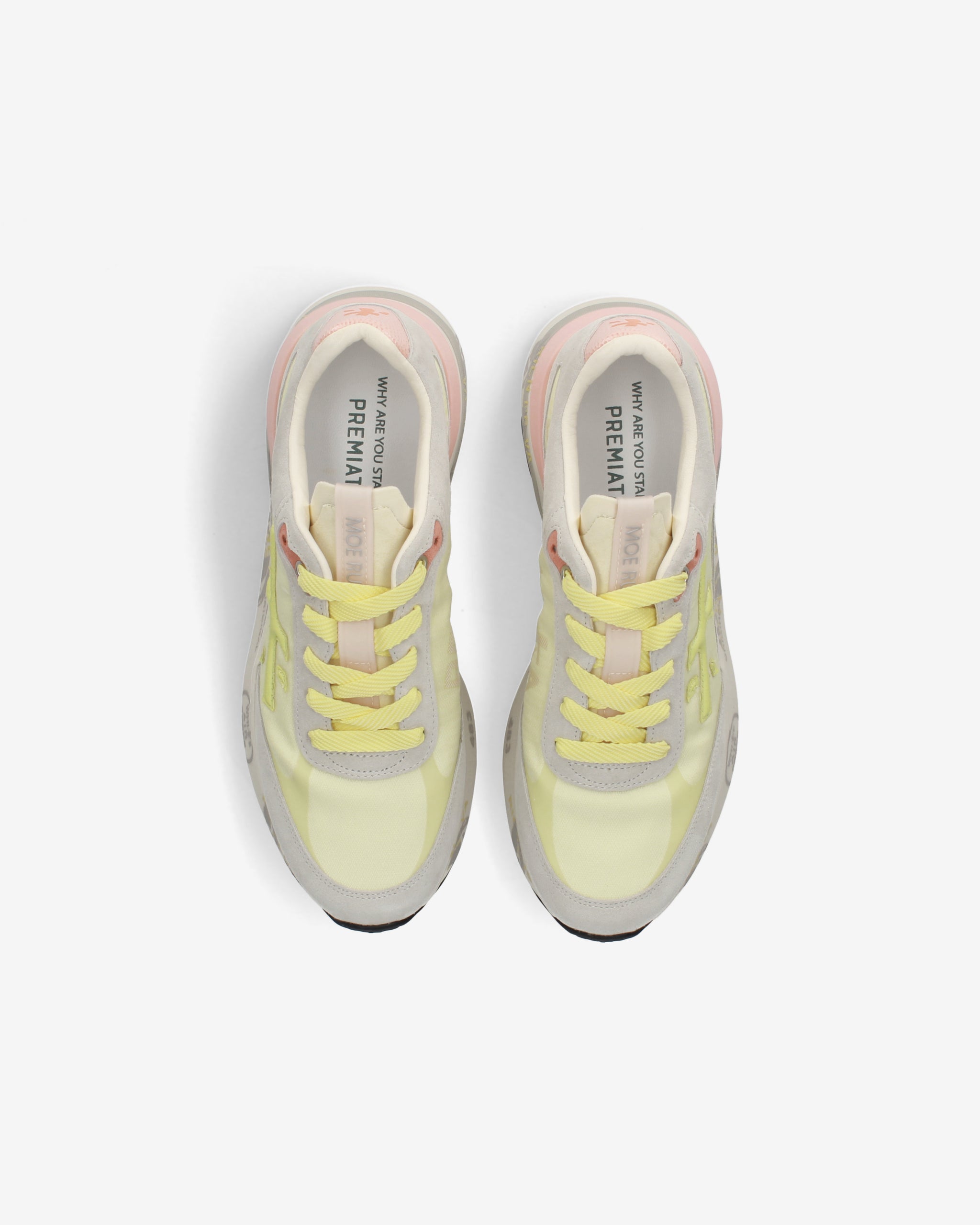 Ideate per stupire. La Moerun si basa sulla leggerezza del movimento, la stabilità e la sensazione ammortizzante data dall'innovazione del fondo. La nuova silhouette è ricca di dettagli: logo sul laterale esterno, scritta PREMIATA sul laterale interno e nome del modello sull'etichetta.