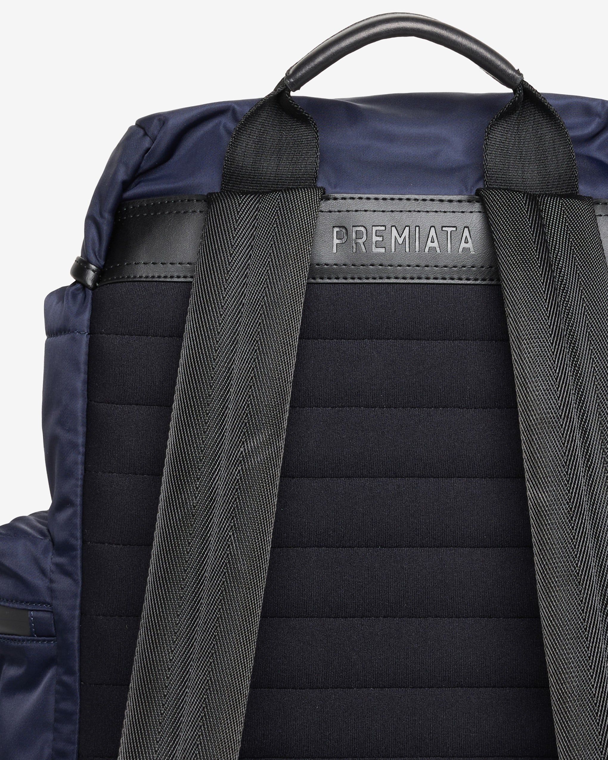 Un modello capiente e versatile in gabardine di nylon di prima qualità con trattamento antisfilacciamento e idrorepellente. Schienale e spallacci imbottiti in EVA per un maggiore comfort. Tasche laterali impermeabili con finiture in pelle di vitello e chiusure in metallo opaco.