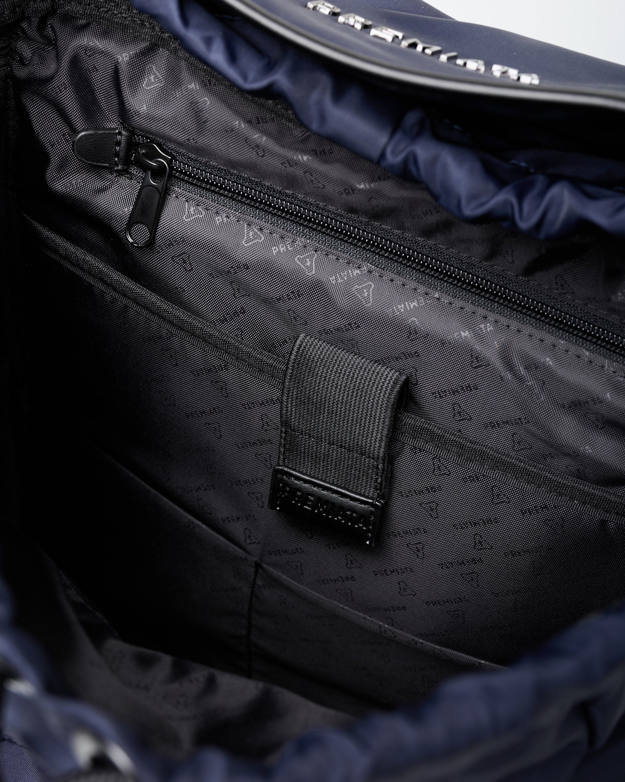 • Tasca invisibile con zip impermeabile e tiretto in gomma con logo