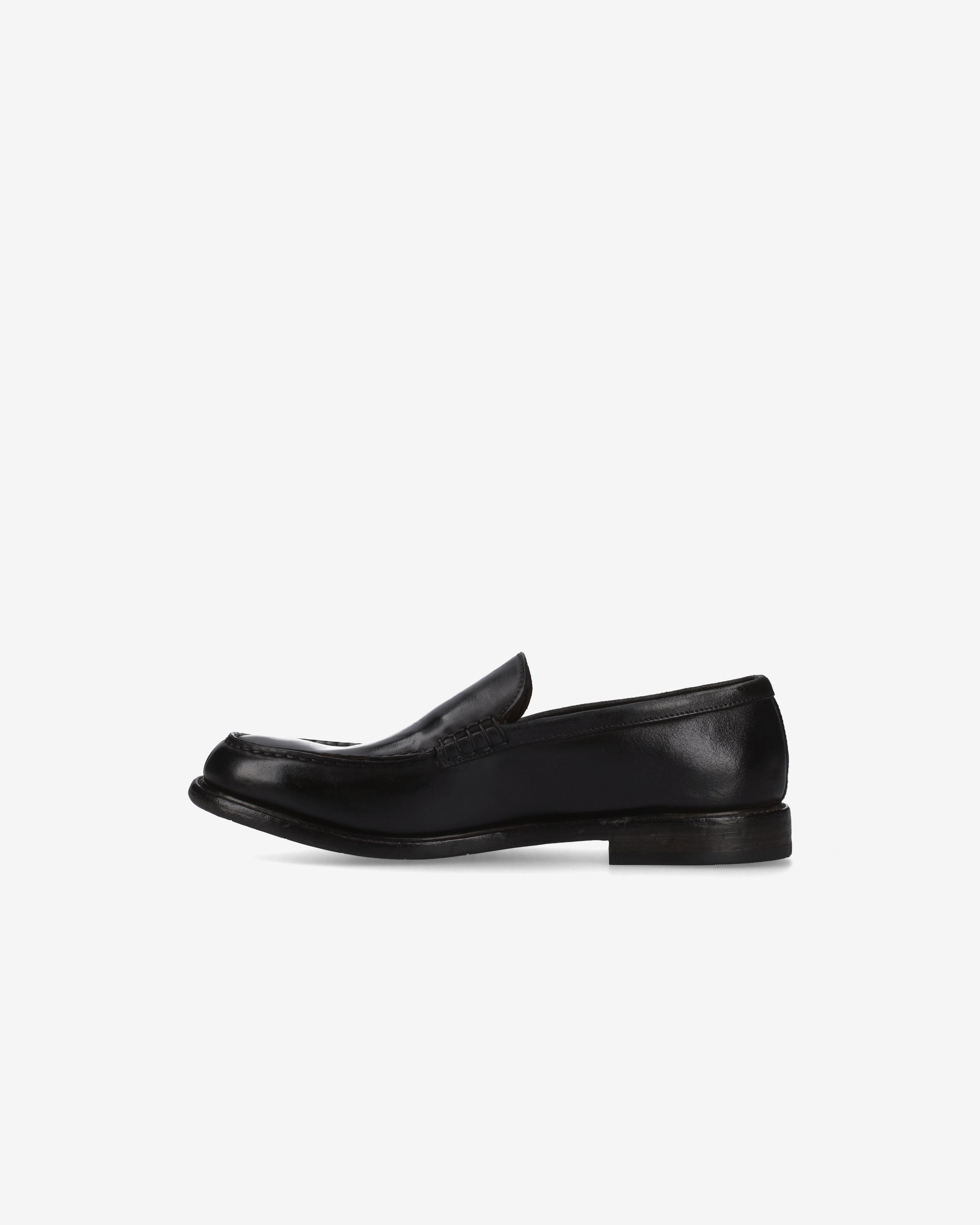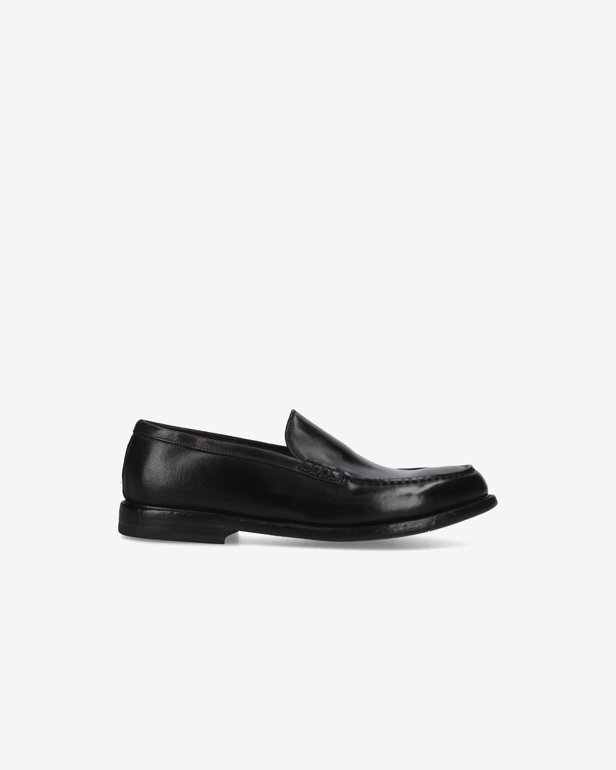 Mocassino in Pelle di Cavallo Nera con Suola in Cuoio